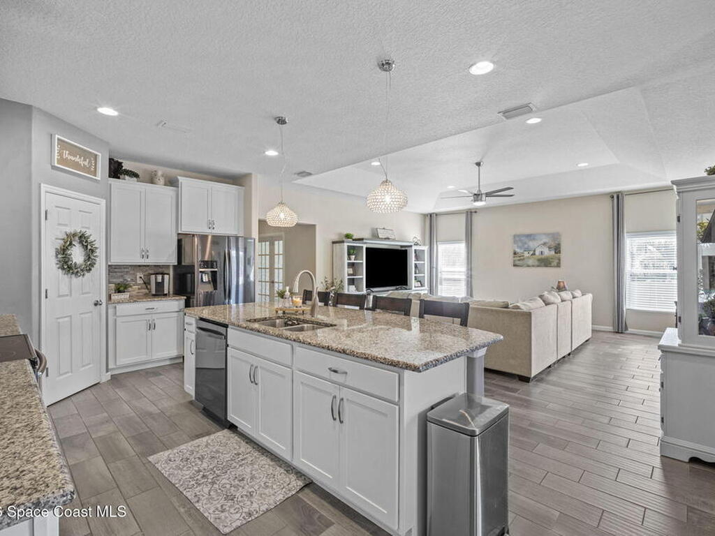 Do not miss this opportunity!! This highly sought after Vilano floor plan has a full mother-in-law suite with kitchenette. It has 4 bedrooms, a BONUS/OFFICE room, AND an additional living room!! This specific home has multiple upgrades including: irrigation (front and back), gutters, pavered driveway, plank tile flooring, cabinets and granite counters, and lighting finishes. It sits on an oversized CORNER lot with a vinyl fence. To top it off, the home has a HEATED electric POOL. Need storage? There is a 3-CAR GARAGE. The neighborhood itself is just minutes from all major shopping and the freeway. Sawgrass Lakes gated community features: pool, giant slide and water play area with lifeguard on duty, fitness center, clubhouse, tennis and pickleball courts!