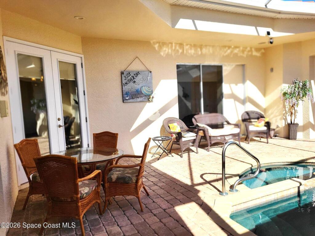 Coming Soon - Available to Show on 1/8/26 - Open Houses 1/10 & 1/11 Paradise can be yours with this lovely corner unit townhouse! It has had very low use over the years as a second home. The original owner has impeccably maintained it since buying this builder's model home. As you enter the screened courtyard you are greeted by a private pool with glass tile accents and a newer heater. The kitchen features updated stainless appliances including a gas range. The attached 2 car garage and ample guest parking make this a perfect place for entertaining and gatherings. Bayport has a large community pool, too. The building exteriors were just repainted in December 2025. Manatee Park is just steps away on the Banana River and offers amazing sunsets and 10 acres to explore.