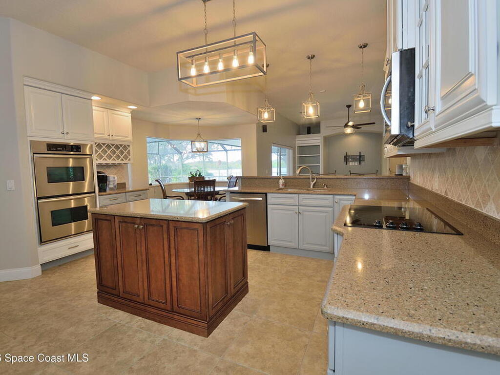 Set on a peaceful lake and positioned on a spacious half-acre lot, this 5-bedroom, 3-bath pool home with a 3-car garage offers privacy, flexibility, and room to breathe, all with no HOA.Inside, the home delivers a well-designed split floor plan with high ceilings and multiple living areas that work equally well for everyday living and entertaining. Formal living and dining rooms anchor the front of the home, while the main living spaces open toward the pool and water beyond, creating a seamless indoor-outdoor flow.The kitchen is thoughtfully laid out with quartz countertops, stainless steel appliances, convection double ovens, center island, breakfast bar, and a breakfast nook framed by windows overlooking the pool. Sliding glass doors from the family room, living room, and primary suite lead directly to the screened pool and spa, making the backyard feel like a true extension of the home. The primary suite is a private retreat with tranquil lake views, dual walk-in closets, and a