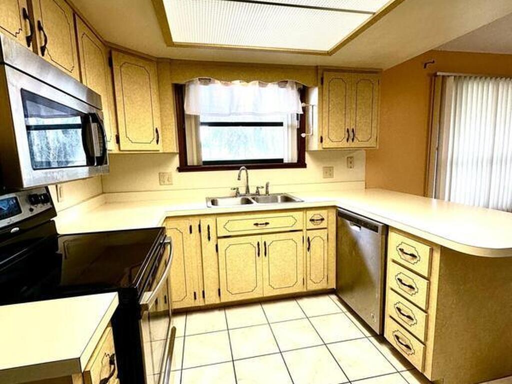 Welcome home to this inviting 3-bedroom, 2-bath residence perfectly situated on a spacious corner lot. Offering 0.35 acres with mature landscaping, oak trees, and wooded views, this property blends privacy, space, and everyday convenience.Major updates include a new roof (2022), A/C system (2021), and a newly replaced drain field (2024), offering peace of mind and added value for years to come.Inside, the split bedroom floor plan provides functionality and comfort, enhanced by vaulted ceilings, ceiling fans, and natural light. The living area features a wood-burning fireplace, creating a warm and welcoming focal point for relaxing evenings. Flooring includes a combination of tile Carpet and Luxury Vinyl wood flooring, while window blinds and treatments add a finished touch throughout.The kitchen comes equipped with Stainless Steel appliances including a Range, DIsh Washer, Refrigerator with ice maker & microwave. The washer and dryer are also included making this home move-in