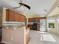 Nestled in the desirable NW Palm Bay community on a fully fenced corner lot, this charming split floor plan, 3-bedroom, 2-bath offers the perfect blend of comfort and Florida lifestyle living. This laid-out living space, the inviting open floor plan is filled with natural light and features laminate flooring in the main living areas and tile in the wet zones, creating a warm and welcoming atmosphere. The eat-in kitchen with a breakfast bar flows seamlessly into the living area, ideal for everyday living and entertaining. Step outside to your private screened-in pool and expansive tiled porch -- an entertainer's dream and a serene spot to relax year-round. Practical upgrades such as a newer roof and hurricane shutters on all windows provide peace of mind, while the 2-car attached garage and ample driveway offer plenty of parking. Don't miss the opportunity to own this beautifully maintained pool home in a sought-after neighborhood.