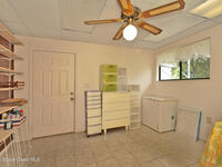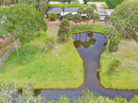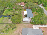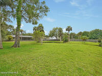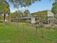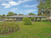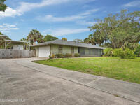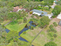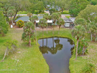 What an opportunity to reside in a treasure of a home on an acre in North Merritt Island on a pond. Enter through the large screen enclosed front porch to 3 bedrooms, 2 1/2 bathrooms, a bright living room with fireplace, a large dining area with view to the screened back porch and extra large yard. There's a separate laundry room with a sink and more storage cabinets and a utility room next to that. Additionally there is a spacious 2 car garage with plenty of room on the drive way as well as an RV/boat pole barn and an additional carport for trailer or vehicle storage. The large back yard is surrounded by wood and chain-link fences and there is a pond and stream. New roof in 2023 and brand new Generac 26Kw propane standby generator. This friendly cull-du-sac neighborhood is very close to shopping, churches, schools and restaurants, and conveniently located just 14 minutes to Cape Canaveral and the beaches and 40 minutes to Orlando.