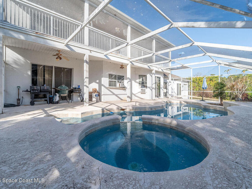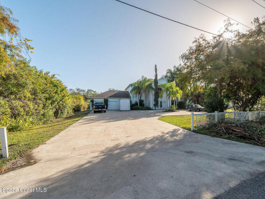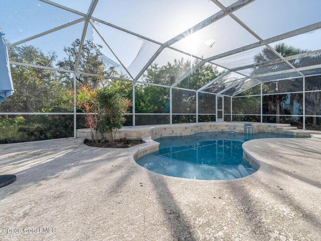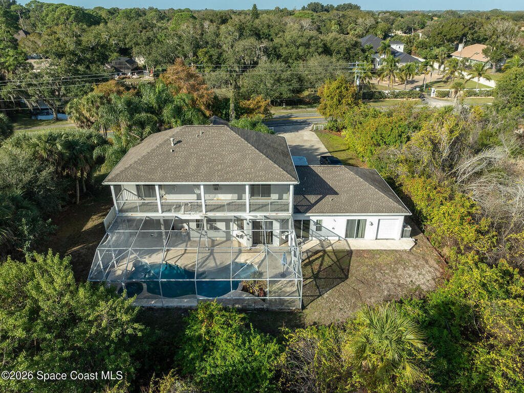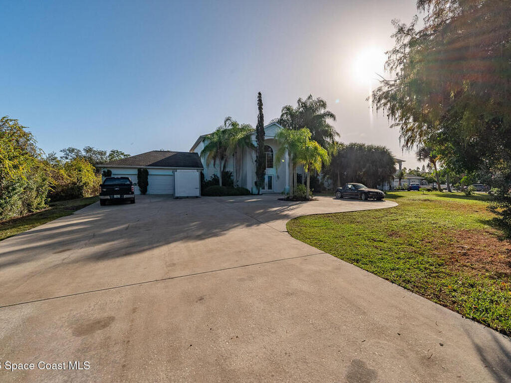 Riverfront opportunity in desirable South Merritt Island! This 4 bed, 3.5-bath home offers incredible potential and is priced below recent appraisal value to allow for updates and customization. A flex room provides the option for an additional bedroom or ideal home office. The oversized garage offers space for multiple vehicles, storage, or a workshop.The backyard features a beautiful pool and an extended dock, perfect for boating, fishing, or enjoying peaceful sunrises. While the property is riverfront, current water views are limited due to overgrowth, presenting a great opportunity to enhance the landscape and maximize the setting. A deck runs along the rear of the home, accessible from the primary suite and an additional bedroom, creating wonderful outdoor living potential. Both the primary bedroom and formal living area offer beautiful fireplaces, perfect for a cozy, peaceful atmosphere. This home is full of character and waiting for the right owner to transform it!