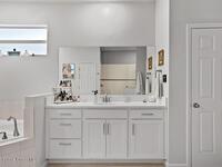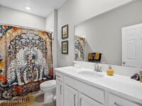 Better than new! Built in 2023 with $30, 000+ in upgrades, this 3BR/3BA home with a 3-car garage features impact windows and doors throughout. Enjoy a screened epoxy patio overlooking a fenced yard with lake and fountain views (plenty of room for a pool). The kitchen offers double islands, quartz countertops, stainless steel appliances, pantry, and breakfast nook. The primary suite stuns with a tray ceiling and two custom walk-in closets. Additional upgrades include epoxy garage floor, gutters, screened front porch, and quartz bath vanities. Gated community, low HOA, central location--don't miss it!