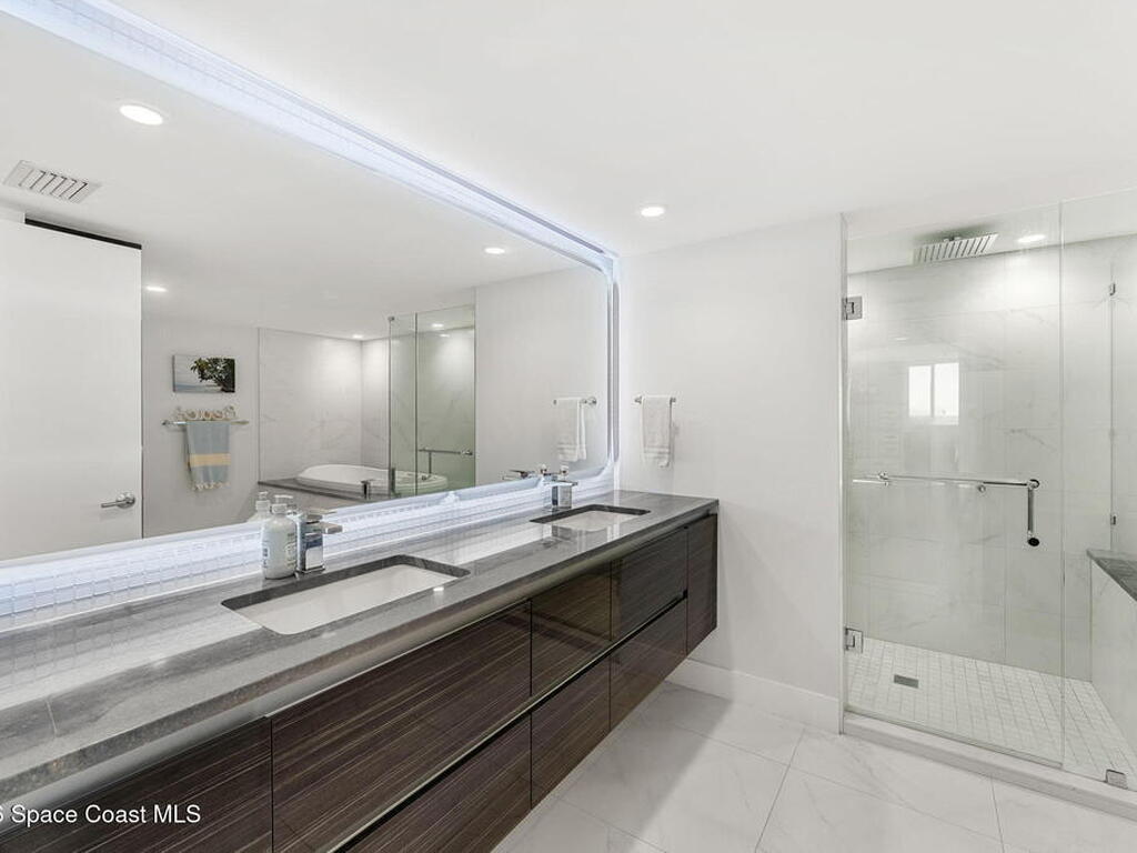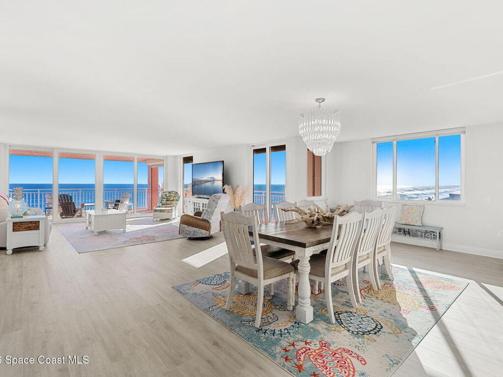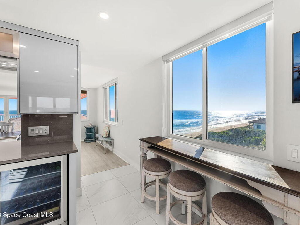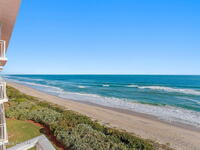Wake up to endless blue horizons in this meticulously maintained 7th-floor oceanfront condo, where breathtaking ocean-to-river views set the stage for everyday coastal living. Perched high above the shoreline, this residence offers sweeping panoramas of the Atlantic on one side and tranquil river vistas on the other--delivering stunning sunrises and sunsets from the comfort of your home. No expense spared in the remodel from smooth ceilings to electrical replacement. For the most discerning buyer, the finest quality materials, induction cooktop, GE monogram appliances, quartzite counters, backlit glass bar, exquisite master bath spa with rain shower and jacuzzi tub. Impact windows as well as hurricane shutters. Condo features one of the largest oceanfront heated pools & hot tub, secure lobby, two elevators and workout room. Living in the Archie Carr National Wildlife refuge, watching sea turtles nest and lay eggs will absolutely take your breath away.
