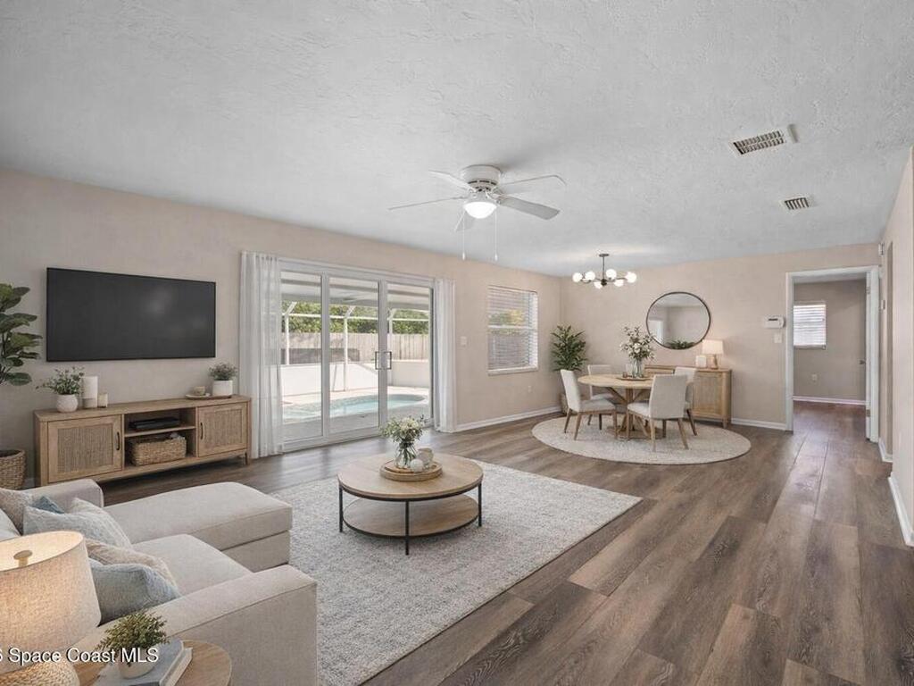 Welcome to 1795 Sandbar Dr. -- a fully remodeled concrete block 4-bedroom, 2-bath pool home in the heart of Merritt Island! This move-in ready property features a brand-new roof (2025), 2019 HVAC, updated plumbing and electrical, and gas hookups for cooking or future outdoor upgrades.Inside, enjoy a bright, open layout with luxury vinyl plank flooring, and a modern kitchen with quartz countertops and stainless steel appliances. The split floor plan offers a private primary suite with walk-in closet and spa-style ensuite bath, plus three additional bedrooms and a fully renovated guest bathroom.The home includes a 2-car garage, and the washer & dryer are included. Step outside to your screened-in pool, covered patio, and a fully privacy-fenced backyard -- perfect for entertaining or relaxing.Located in Waterway Manor, just minutes from beaches, shopping, and top-rated schools.