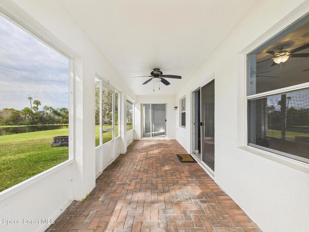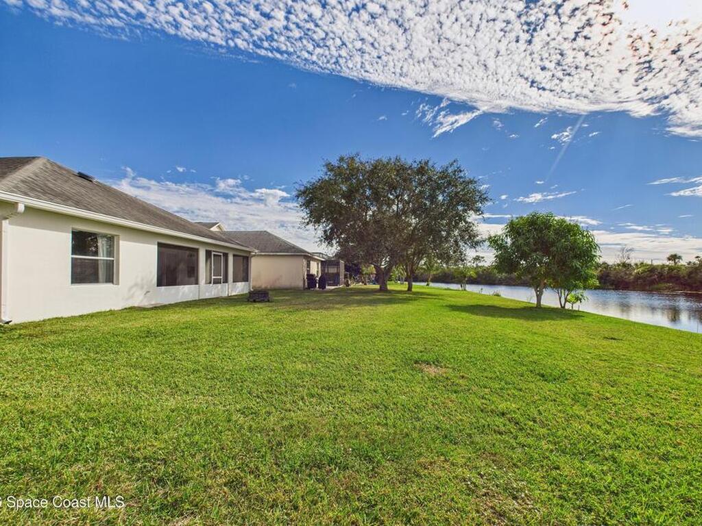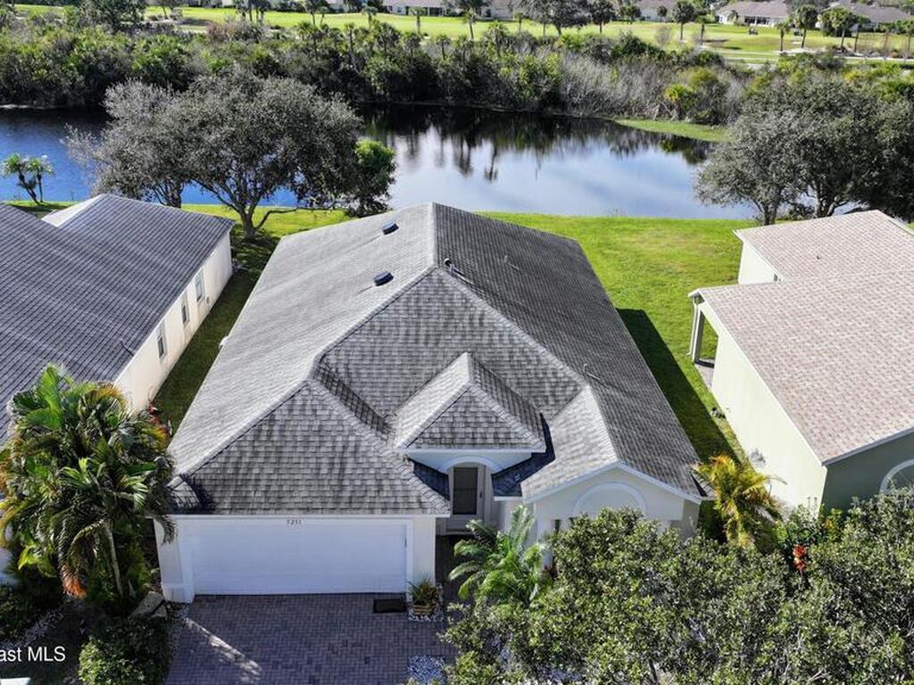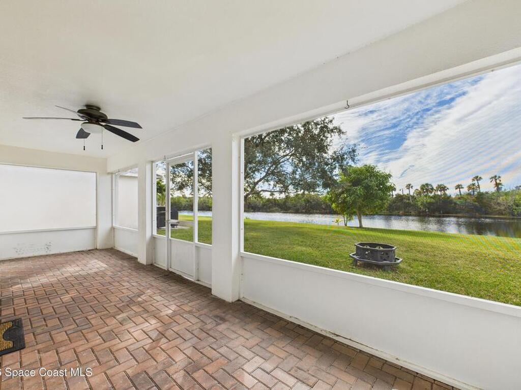 Welcome to this beautifully located 3-bedroom, 2-bath lakefront home in highly sought-after Viera East! Designed with an open-concept layout, this home is perfect for both everyday living and entertaining. The spacious living area flows seamlessly into the kitchen and dining spaces, offering stunning lake views and abundant natural light. Sliding glass doors from the living room and primary bedroom lead to a large, screen-enclosed paver patio, perfect for unwinding or hosting guests while enjoying peaceful water views. The split floor plan provides privacy for the primary suite, with large Jack and Jill walk-in closets. This home is situated in one of Viera's most desirable locations... just down the street from local restaurants, shopping, and the new Whole Foods Market. Enjoy top-rated schools, private playground, private tennis, basketball, pickleball, and volleyball courts...convenient access to all that Viera offers... at a GREAT PRICE! Location, lifestyle, and lakefront living!