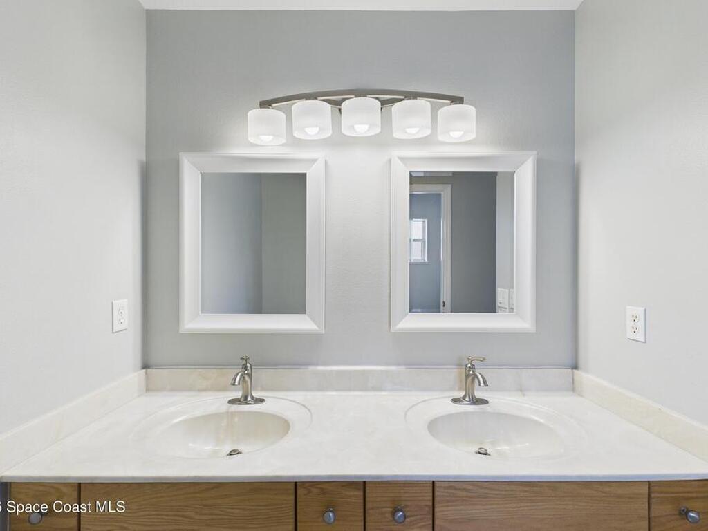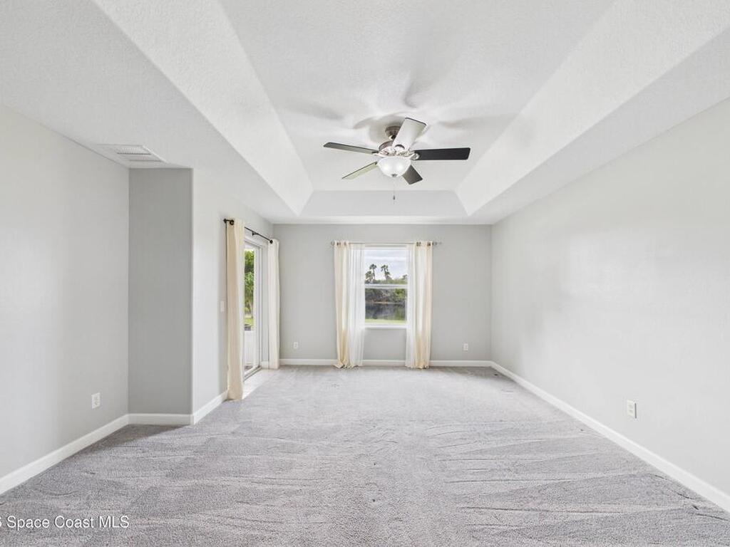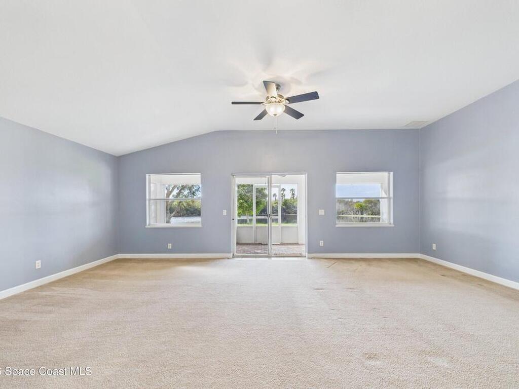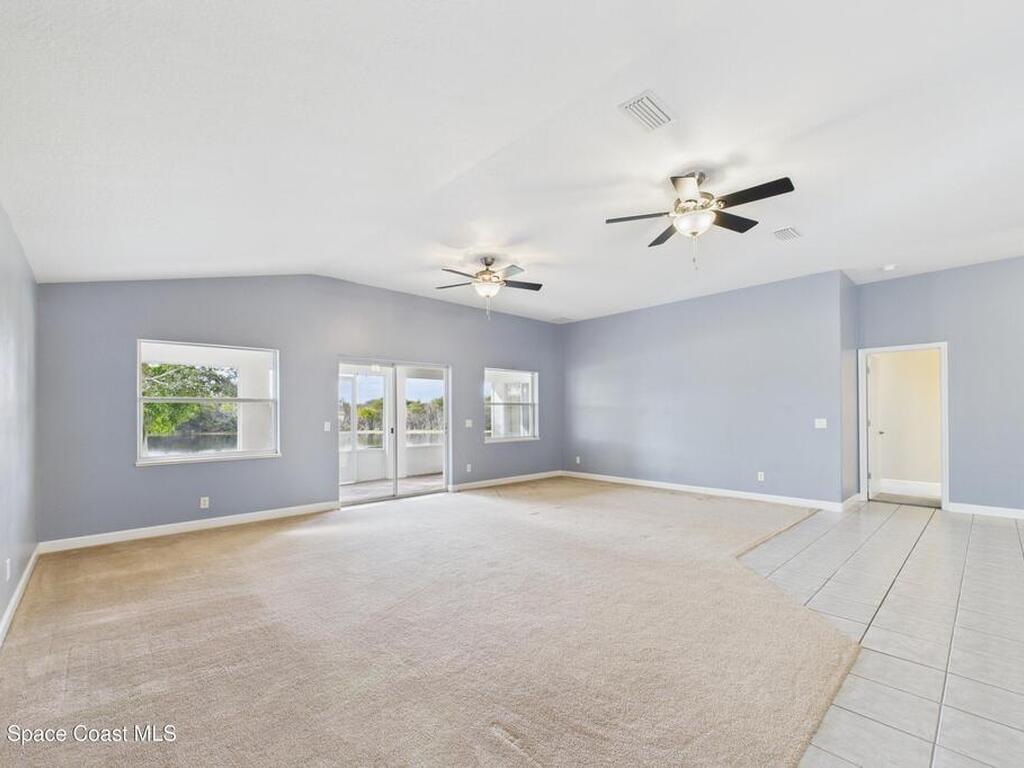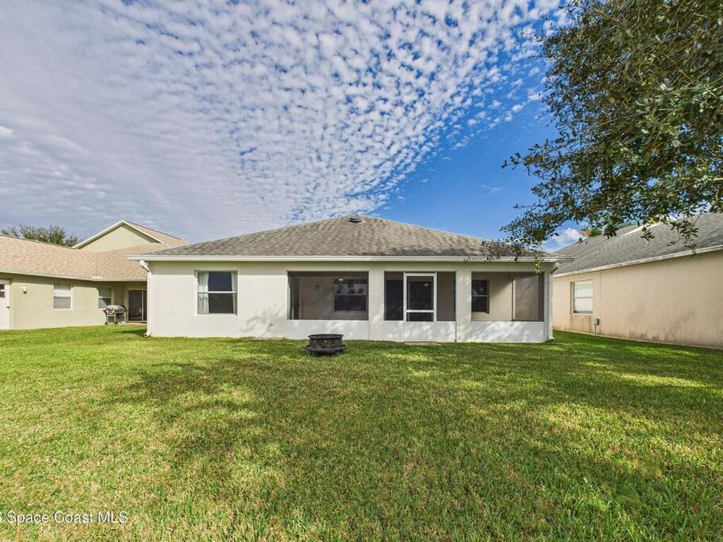 Welcome to this beautifully located 3-bedroom, 2-bath lakefront home in highly sought-after Viera East! Designed with an open-concept layout, this home is perfect for both everyday living and entertaining. The spacious living area flows seamlessly into the kitchen and dining spaces, offering stunning lake views and abundant natural light. Sliding glass doors from the living room and primary bedroom lead to a large, screen-enclosed paver patio, perfect for unwinding or hosting guests while enjoying peaceful water views. The split floor plan provides privacy for the primary suite, with large Jack and Jill walk-in closets. This home is situated in one of Viera's most desirable locations... just down the street from local restaurants, shopping, and the new Whole Foods Market. Enjoy top-rated schools, private playground, private tennis, basketball, pickleball, and volleyball courts...convenient access to all that Viera offers... at a GREAT PRICE! Location, lifestyle, and lakefront living!