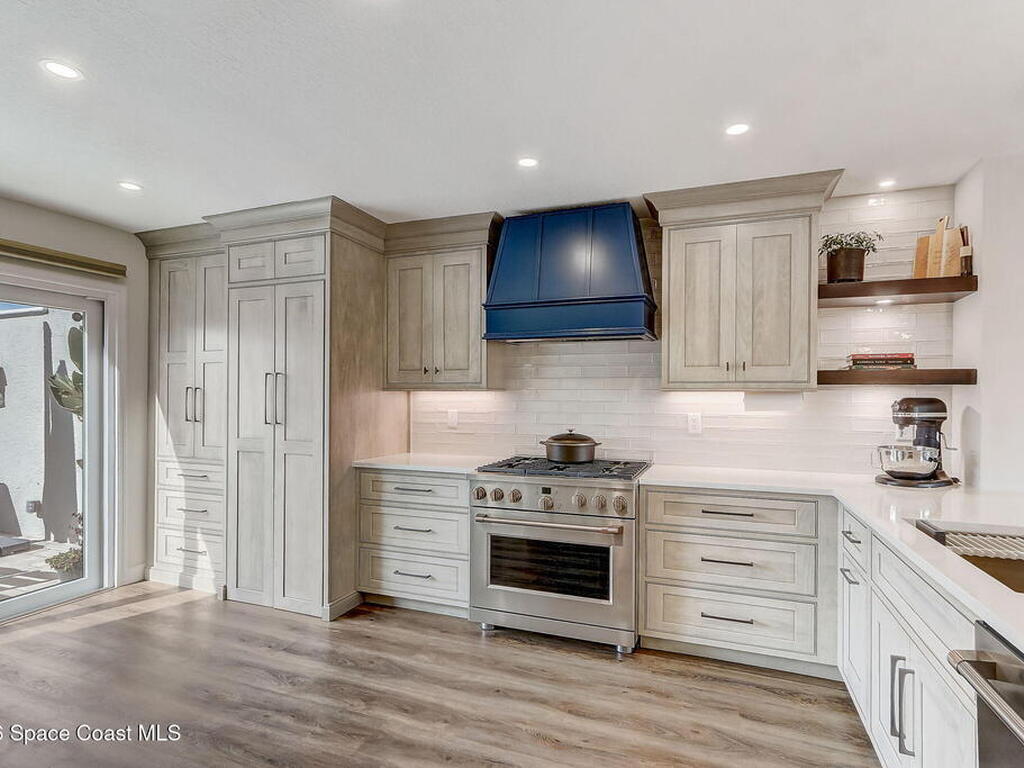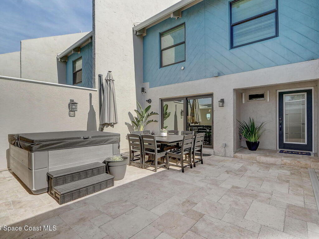 Luxury end-unit living just steps from the beach, this exceptional three-story residence delivers the coastal lifestyle you've been waiting for with high-end finishes, open spaces, and panoramic ocean views. The main living area is located on the first level and features a gourmet custom kitchen with quartz countertops, extended premium cabinetry, a wine cooler, luxury vinyl plank flooring, and one of only two units in the community offering natural gas for cooking and an instant water heater. The living space opens to a large rear patio overlooking the ocean, perfect for indoor-outdoor living and entertaining. The second level hosts the primary suite with a private oceanside balcony, along with two well-appointed guest bedrooms, while the third level offers a versatile fourth bedroom ideal for a home office, guest suite, or flex space. As a desirable end unit, the home welcomes you through a private courtyard entrance where you'll find a heated spa and patio area,