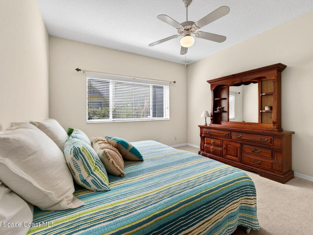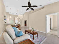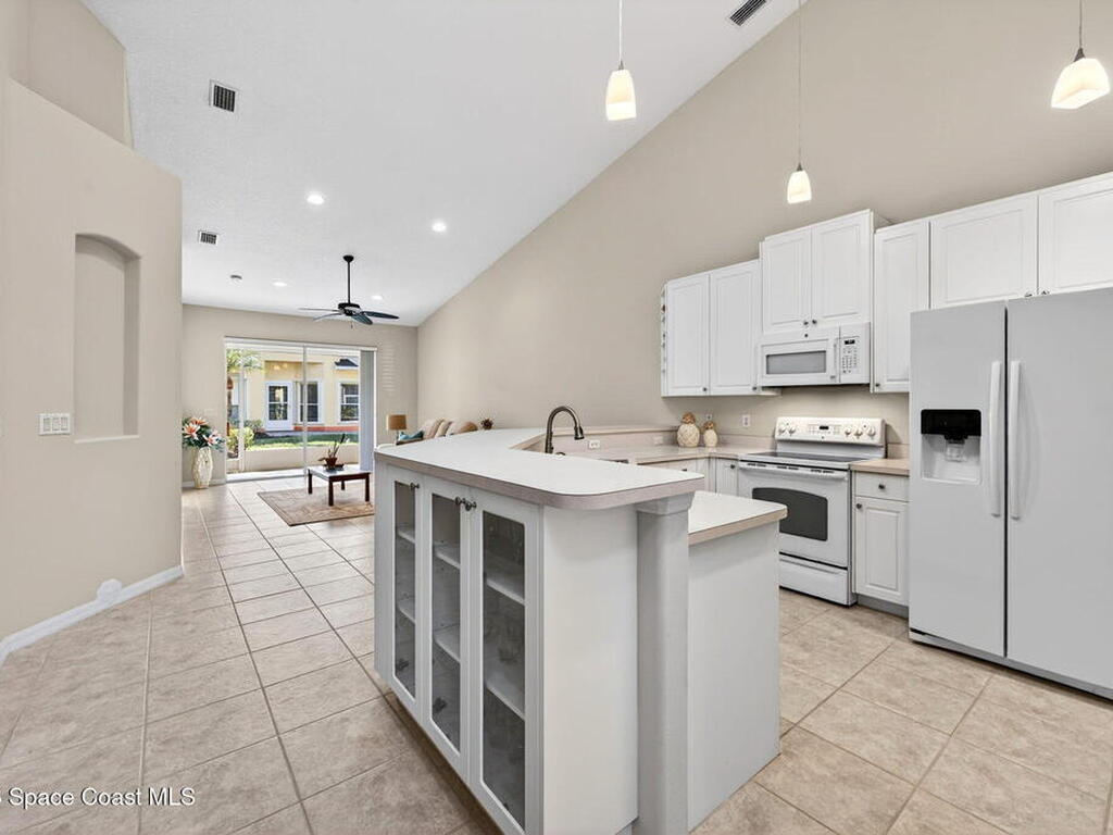 Clean, crisp, and impeccably maintained -- this better-than-new villa is a true standout in Heritage Isle! This one-story home offers 2 bedrooms, 2 bathrooms, a 1-car garage, and a versatile flex space that can easily serve as a third bedroom, home office, hobby room, or formal dining area. Inside, you'll love the brand-new carpet in the bedrooms, tile flooring throughout the main living areas, and an open-concept kitchen with a convenient adjacent laundry room. The home is filled with thoughtful upgrades including accordion storm shutters and a beautiful walk-in shower in the primary suite, along with double vanities and a spacious walk-in closet. Step outside to your screened lanai, the perfect spot to enjoy your morning coffee or unwind in the evening. Located just one block from the 21, 000-sq-ft resort-style clubhouse, this home is nestled in Viera's premier gated 55+ community of Heritage Isle, where exterior maintenance is included so you can fully embrace a carefree lifestyle.