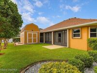 🚣 CONVENIENT & COMFORTABLE LAKEFRONT LIVING! 2023 Whole House Solar ($40/month electric bills)! Impeccably maintained CONCRETE BLOCK 4 BR, 2 BA. 📍Located in a sidewalk-safe, GATED COMMUNITY with playground, basketball courts and top-rated schools, this one-story West Melbourne home offers 2, 489 SFL with soaring ceilings and spacious split bedroom floorplan. Flexible Florida Room can be cooled, heated, or opened as a screened lanai--perfect for entertaining or relaxing by the stocked lake with bass and tilapia. 🏡 Expansive primary bedroom features peaceful lake views and invigorating ensuite bath with walk-in closets, corner tub and separate shower. Whole House Generator hookup & Accordion Storm Shutters. ✅ ~*NEW AC. 2023 ROOF, Gutters/Downspouts, Hurricane-Rated Tuff Shed & Exterior Paint. Newer HWH & Whirlpool SS Appliances.*~ Energy-efficient & MOVE-IN READY --your LAKEFRONT DREAM HOME awaits! Seller will consider removing shed, if Buyer wishes.