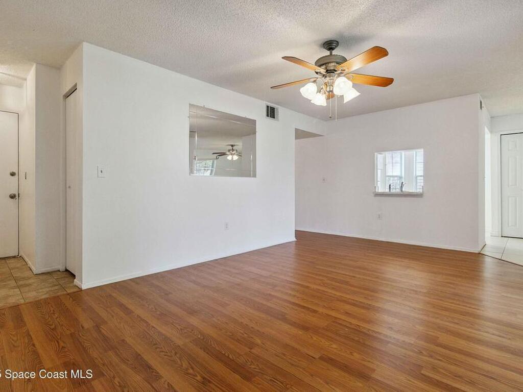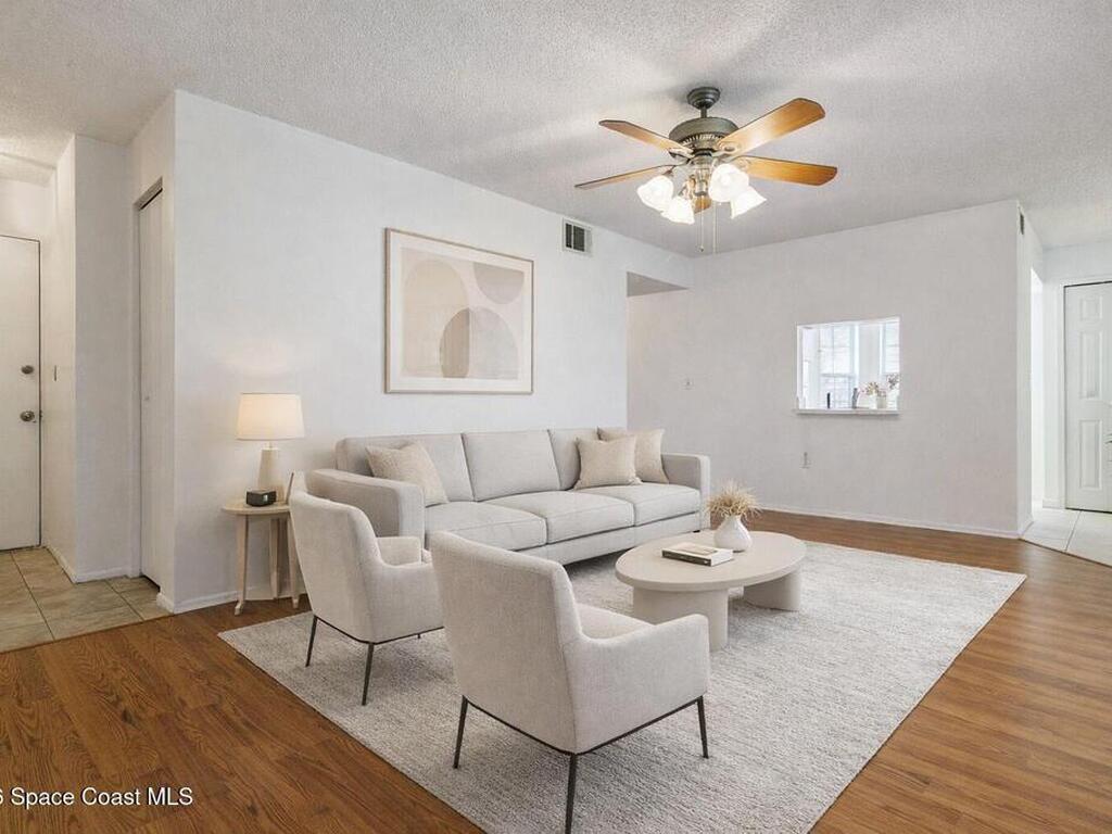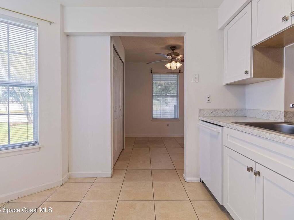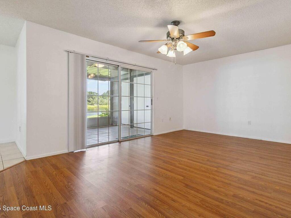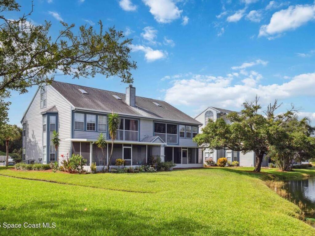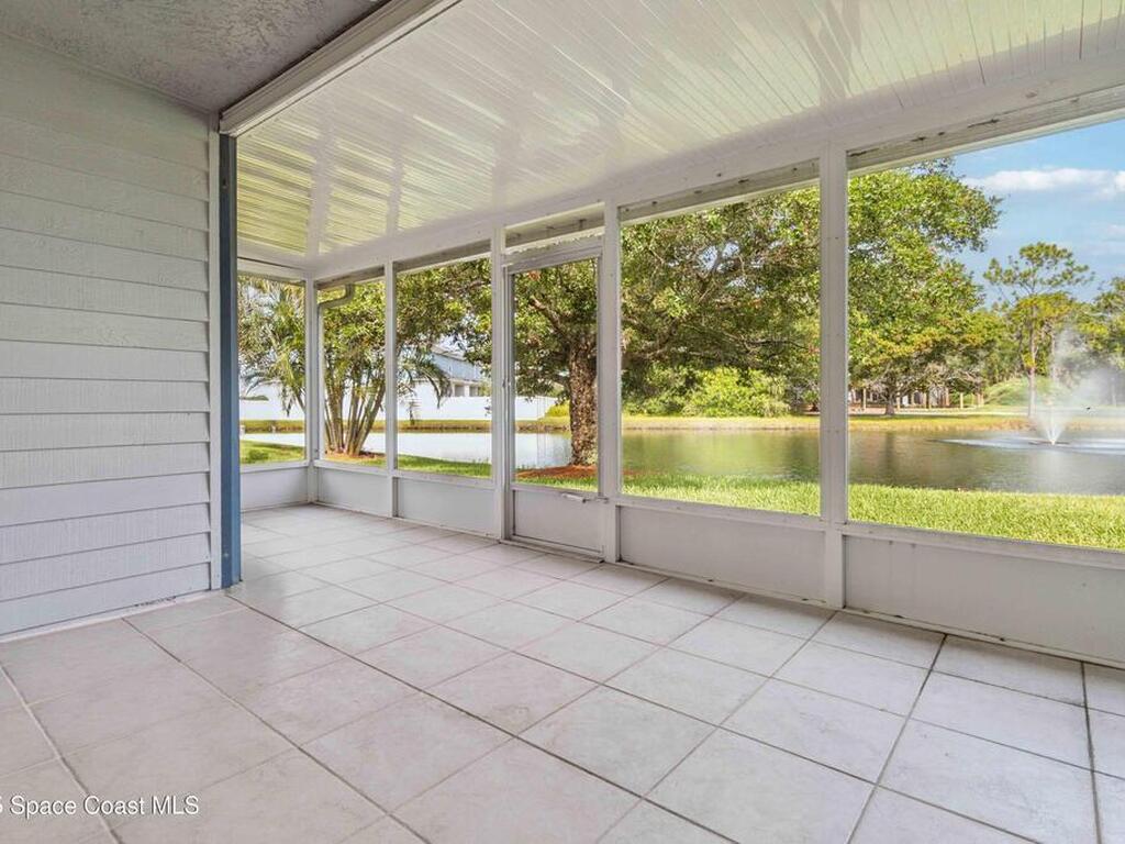 Welcome to Lake in the Woods, a peaceful pond-front community offering comfort and convenience. This spacious ground-floor 2-bedroom, 2-bath condo features serene water views from the screened rear patio or living room perfect for relaxing at the end of the day. Inside, you'll find a bright, open layout with an updated kitchen, cozy breakfast nook, and all appliances included. Wood-look laminate flooring runs through the living area and hallway, while tile in the kitchen, dining area, and patio allows for easy maintenance. Both bedrooms offer walk-in closets, and the bathrooms are equipped with ADA grab bars for added accessibility. Conveniently located near shopping, dining, and major roadways, the property is just 7 minutes from L3Harris and 15 minutes from the beach. An optional recreational membership is available, offering access to a clubhouse, swimming pool, tennis courts, racquetball, and a full fitness center for an additional fee. Schedule your private showing today.