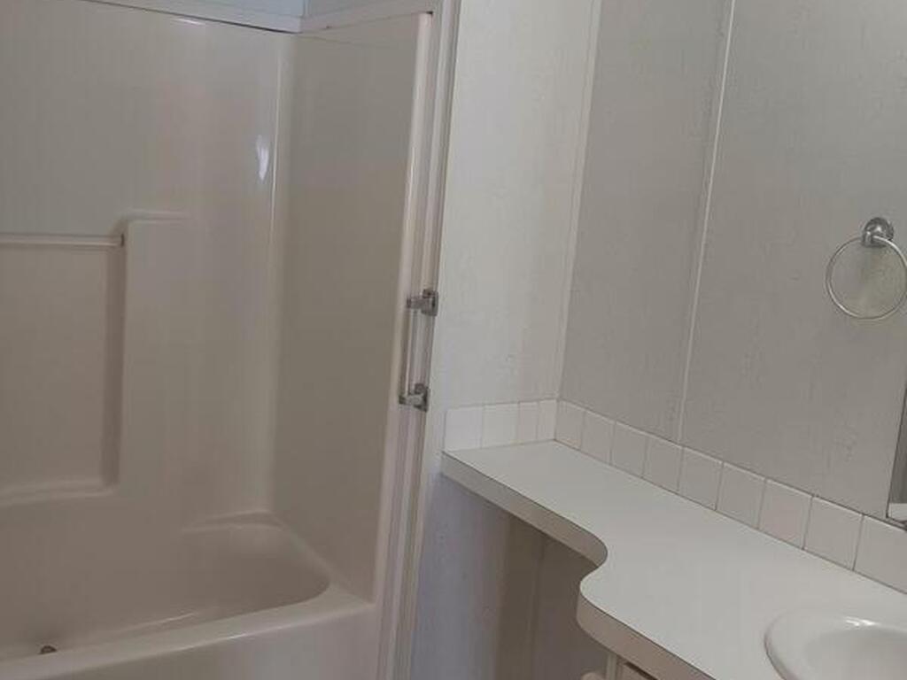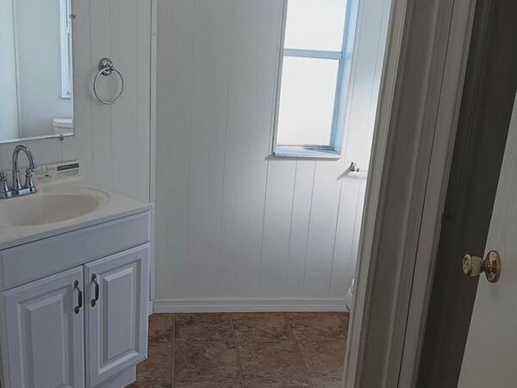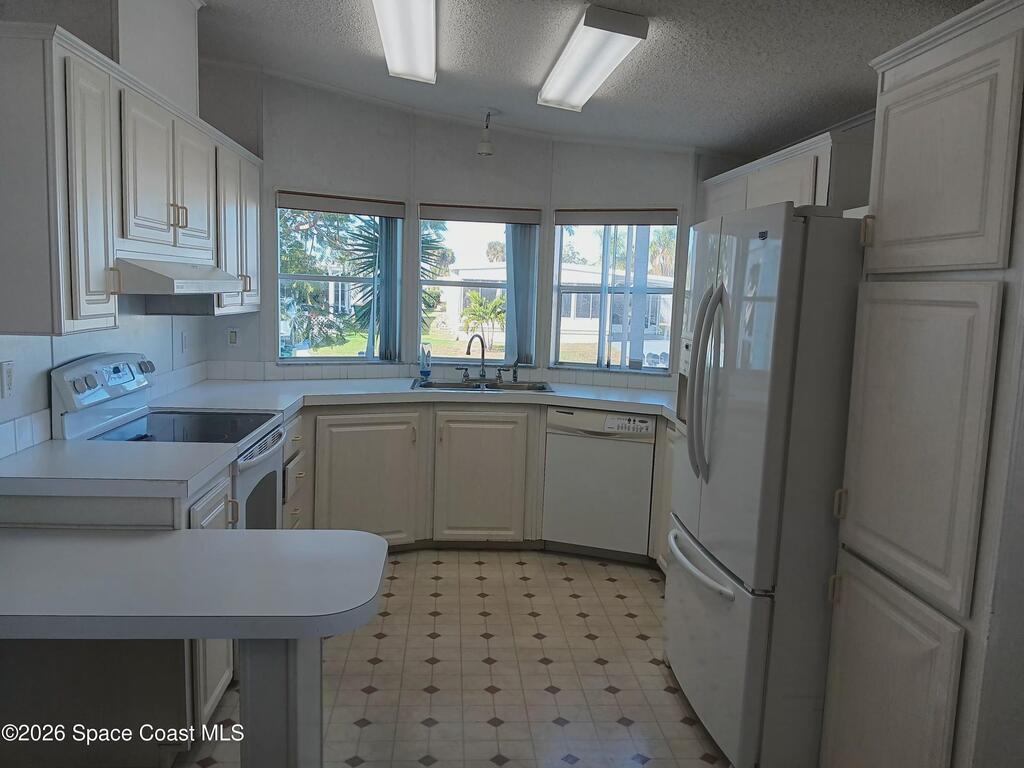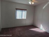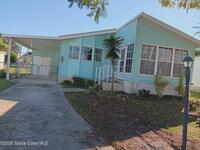 This home features an enclosed front porch for relaxing and entertaining friends and family. Fenced back yard with patio and mature tree with plenty of shade. The kitchen has newer appliances and breakfast bar and opens to dining area. Large living room opens to enclosed porch. Good size master bedroom with bathroom and shower.Newer AC and water softener treatment 2025. Roof is 2019. Large Shed with plenty of storage. Barefoot Bay has 3 pools, a community area and golf course, restaurants, tennis and pickle ball courts, walking trails, something for all ages! Come enjoy and you own the land.