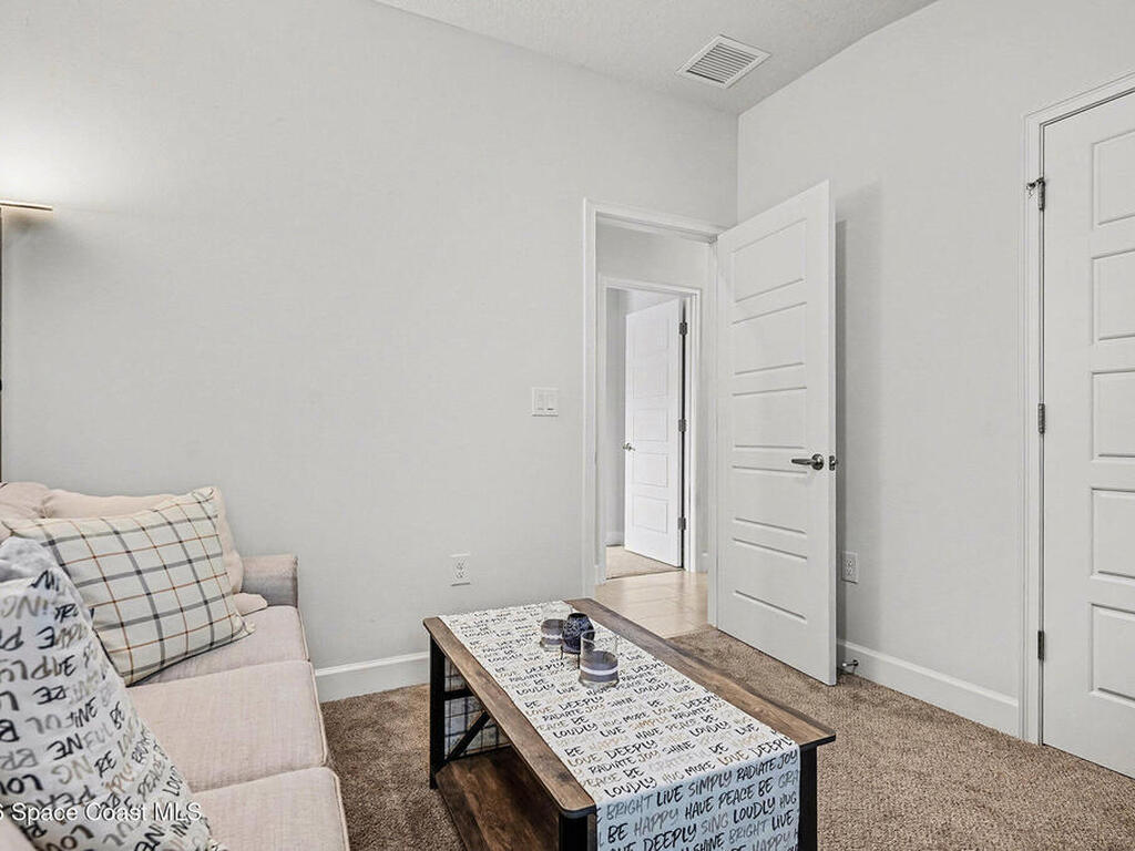 MOTIVATED SELLER!! Charming 3 bed 2 bath home in the beautiful Gardens of Waterstone gated community. Home is less than 2 years old. Fenced back yard. Full window treatments/blinds throughout. All appliances included, and washer/dryer. With a split floor plan and the convenience of an interior laundry room. Porcelain tile, carpet in the bedrooms. Ceiling fans. Great neighborhood amenities with low HOA. Close to Highway and shopping. Major growth coming in this area of Palm Bay. Great home for investors, snowbirds or families alike. Schedule showings through Showing Time