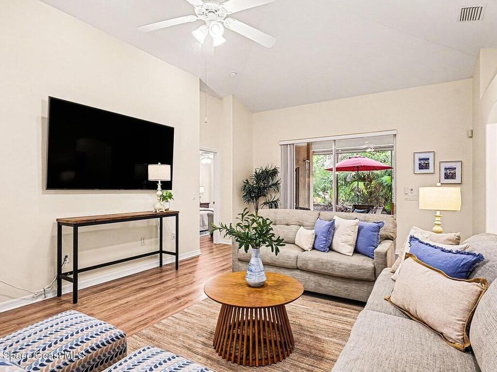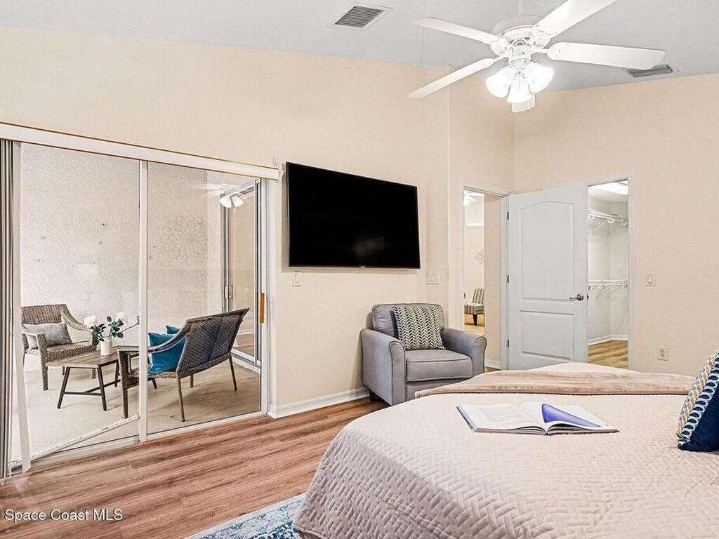 Simplify your life and reduce your energy bills!! Enjoy your own private tropical paradise in the most prestigious, sought after 55+ resort style, maintenance free community nestled in the heart of Viera! This one of a kind solar temperature controlled home and lifestyle can be yours. Granite countertops, water treatment system, solar panels, screened entry way, accordion storm shutters and extended screened lanai overlooking a tropical oasis are just the beginning. You will love the split floor plan! 4beds, 3 baths vaulted ceilings and spacious eat-in kitchen, breakfast bar, family room, master bedroom suite, walk-in closet and large master bath with zero threshold shower entry. Enough room for everyone and everything. Home backs up to mature landscaping for a very private space. HOA includes Lawn Maintenance, exterior paint of house scheduled this year, 22, 000 sq.ft.Clubhouse with gym, Resort Heated Pool/Spa, Tennis, Shuffleboard, Basketball, Bocci, Billiards, Island Grill + much more.