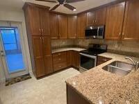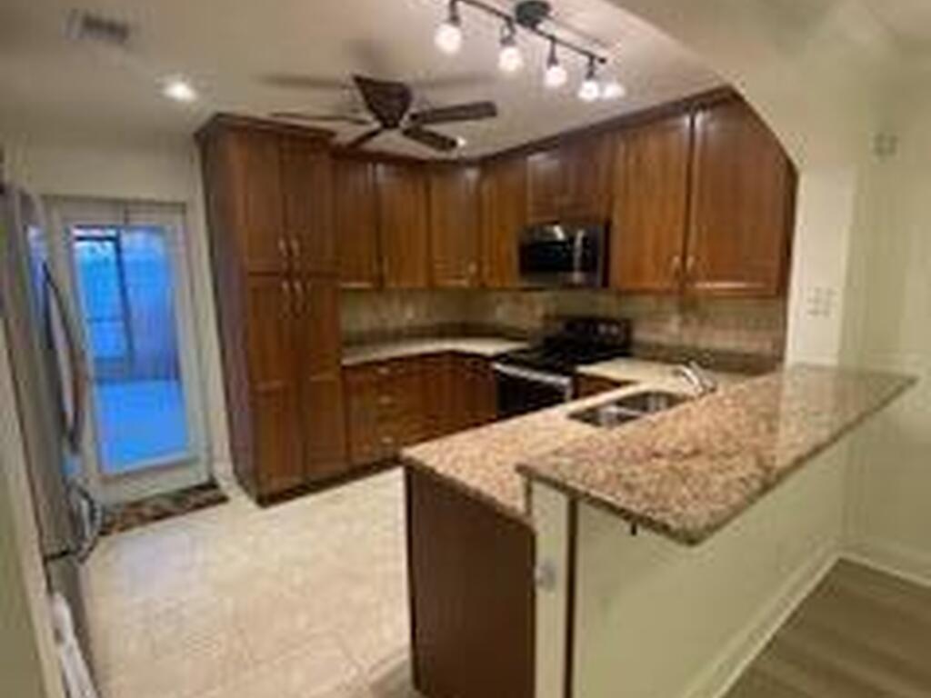 Welcome home to this well maintained completely updated move-in ready 3 bedroom 2 bath townhouse in desirable resort-style community, featuring granite countertops, 42'' maple cabinets, stainless steel appliances, tile backsplash, and crown molding. Easy low maintenance vinyl flooring on 1st floor. Oak stair treads, spacious 2nd floor primary bedroom with bamboo flooring, tray ceiling, his/her double racked closets and updated master bath with walk in shower. Convenient 1st floor Jack-and-Jill bathroom with walk in shower. The fenced back yard is complete with 15x15 screen room with elite panel roof for strength and sound cancelling. The screened front entry provides a pleasant area for relaxing. New roof March 2025. Exterior painted 2024. Amenities include heated pool, cabana and grill area, hot tub, tennis & basketball courts, playground, Located just 15 minutes to the beach! There is nothing to do here but live the Florida lifestyle.