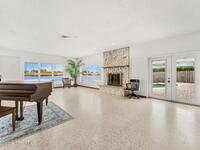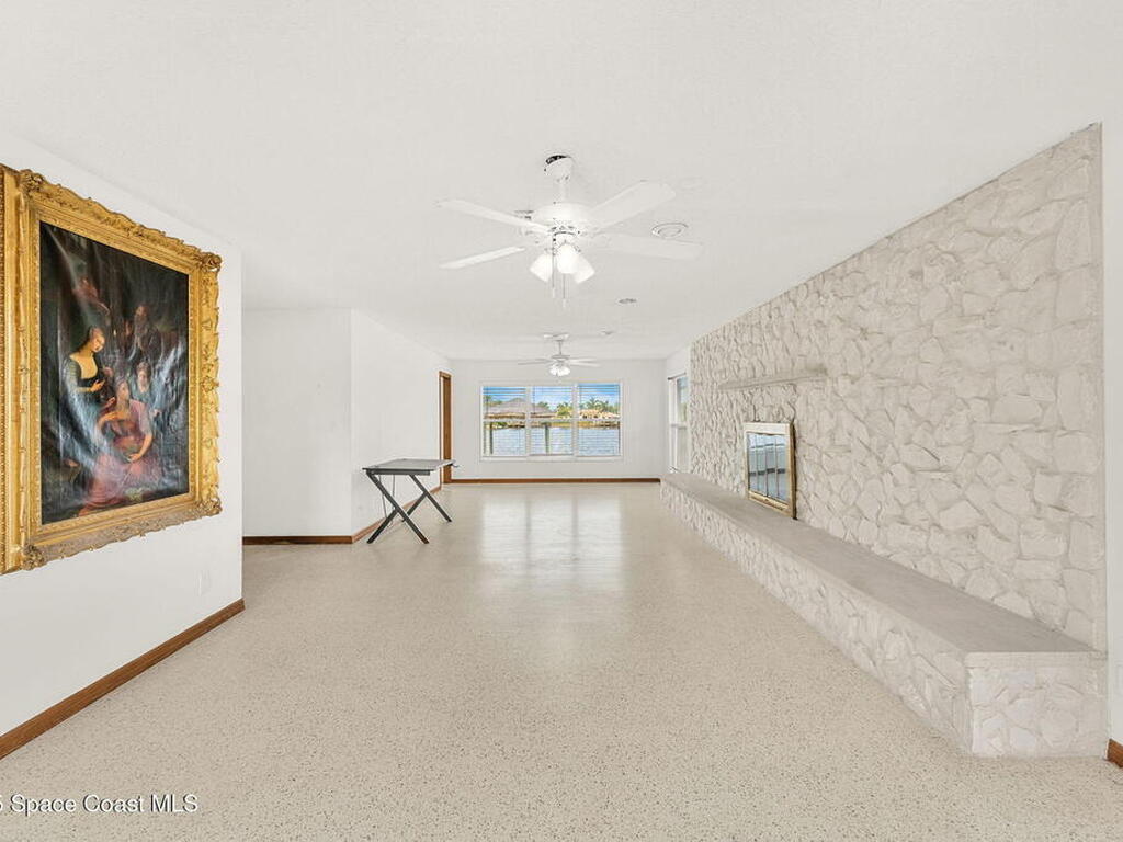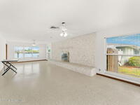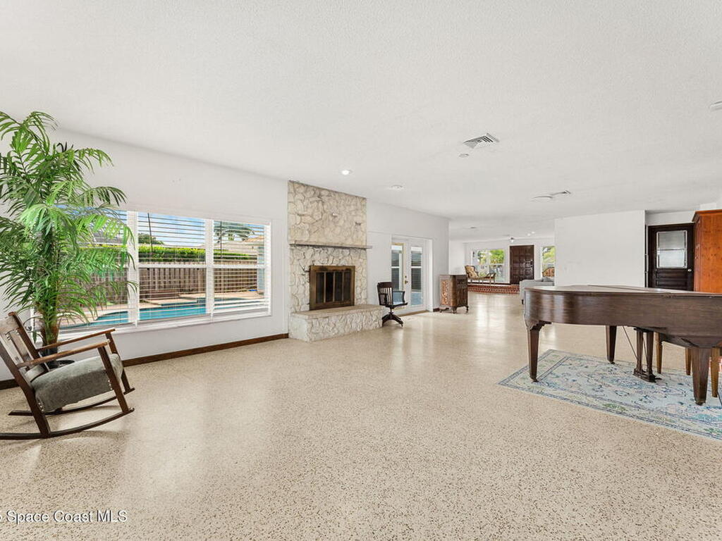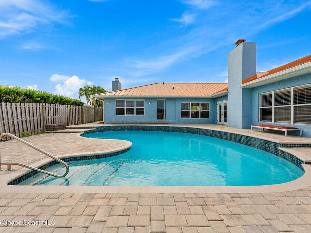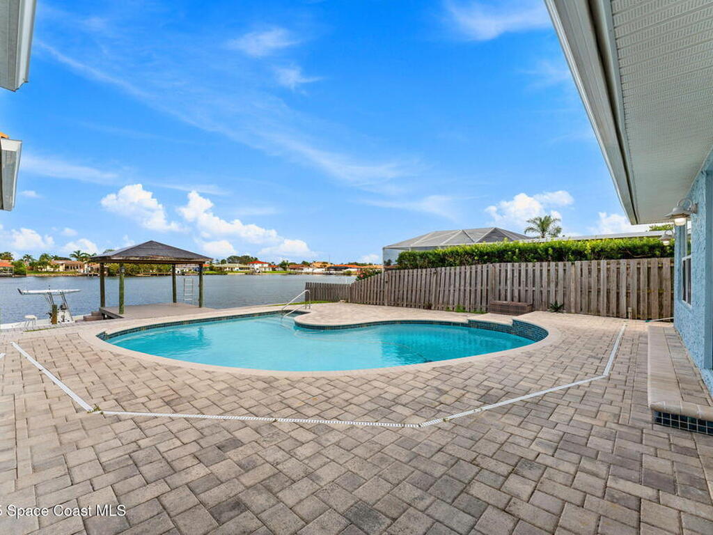 Waterfront on Sleepy Lagoon, a locals-only pocket of Satellite Beach where wildlife drifts by on the way to the Grand Canal! This 1-owner home delivers the rare part: all the big-dollar upgrades, leaving the interior ready for your creative vision & modern touch. The 2018 elevated vinyl seawall anchors the shoreline, while a 2018 2-tier covered dock w/ TRAX composite decking & an easy kayak push-off makes lagoon life effortless. Resurfaced in 2018, the oversized, heated saltwater pool is a sparkling outdoor oasis. The home's 2017 standing seam Galvalume metal roof tops off spray-foam insulation, a 2024 5-ton smart A/C, a newer water heater & PVC sewer lines. Sunny spaces accent wide-open living areas, walls of windows & truly epic water views. Original terrazzo floors underscore 2 giant stone wood-burning fireplaces, one of them gracing the generous owner's suite. The 2 additional bedrooms are joined by a Jack & Jill bath. Oversized garage for extra storage or a golf cart!