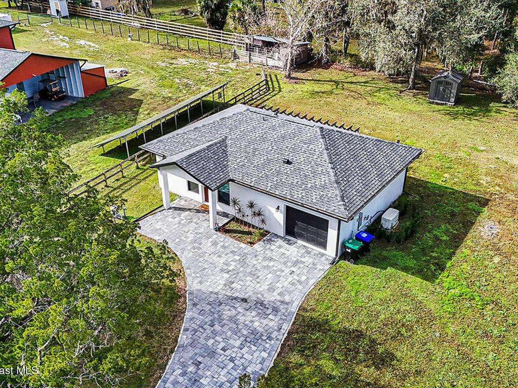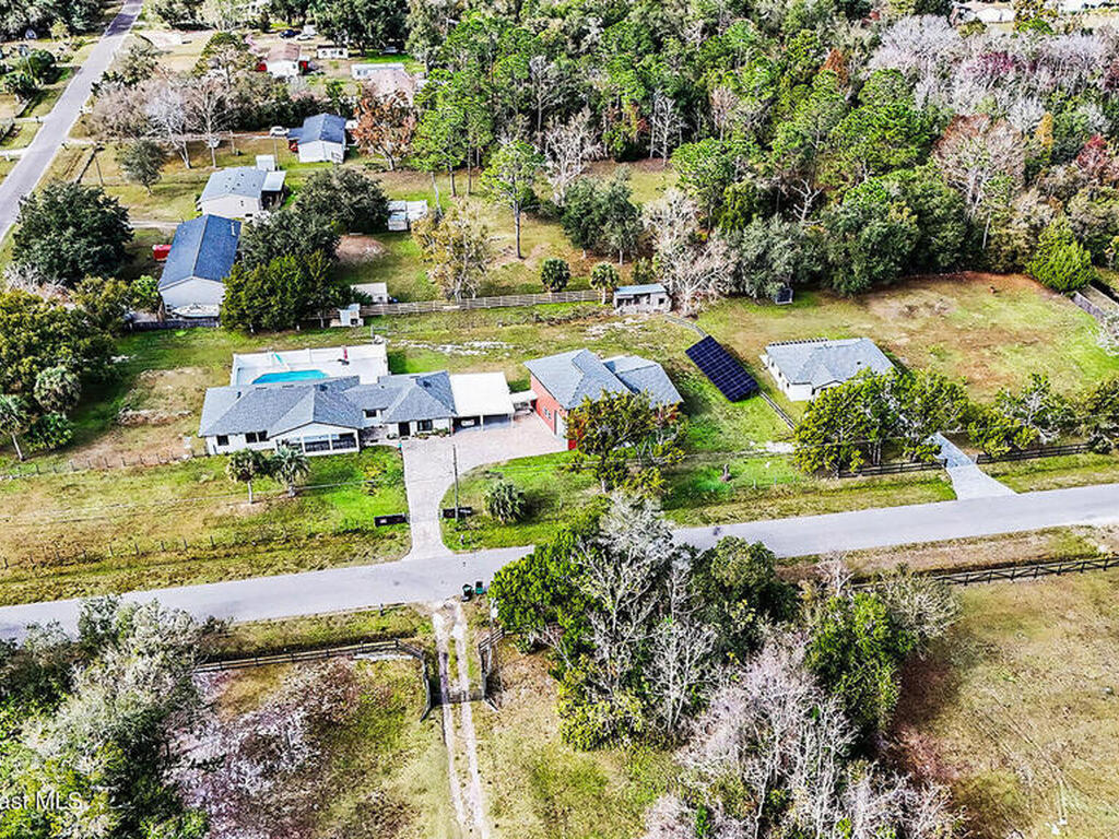Welcome to this exceptional 1972 estate, meticulously renovated in 2023 and transformed into a modern oasis on nearly 2 acres of serene, private land. Spanning 3, 589 sq ft, the main residence boasts a brand-new roof, luxurious new flooring throughout, a fully renovated gourmet kitchen with stainless steel appliances, and countless additional upgrades that blend timeless charm with contemporary elegance. Step outside to your own backyard paradise featuring a sparkling in-ground swimming pool, expansive paver driveway, and convenient carport--perfect for relaxing or entertaining under the sun. This rare property offers incredible versatility with four separate living areas, ideal for multi-generational living, rental income, or guest accommodations: Attached studio suite connected to the main home--perfect for short-term rentals or private family space.