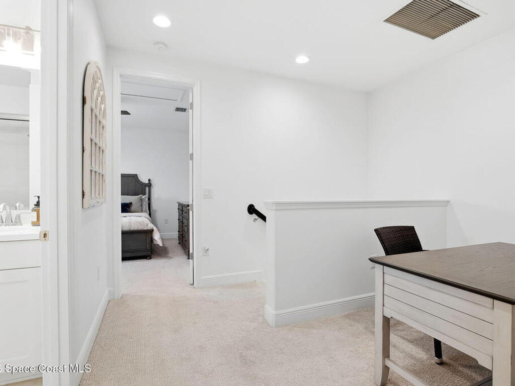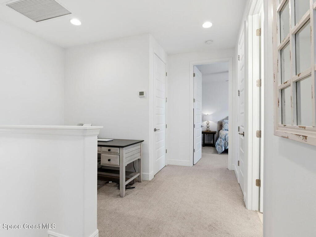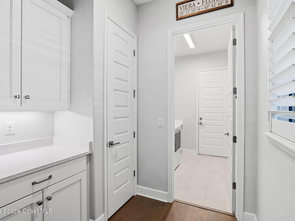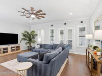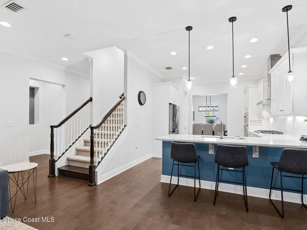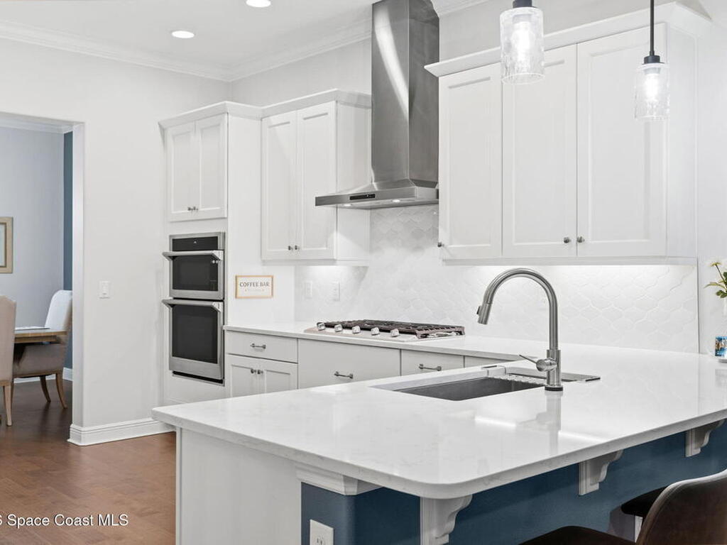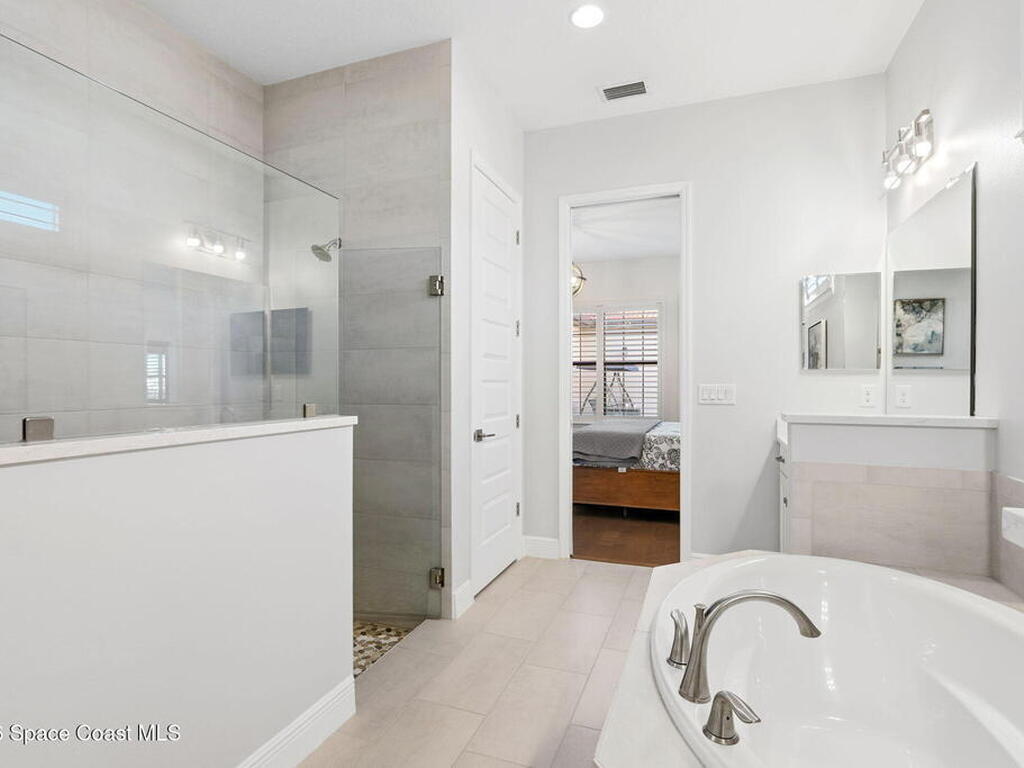 Welcome to maintenance free living in Viera. Impeccably maintained and thoughtfully upgraded, this stunning Almeria model offers 4 bedrooms, 3 full bathrooms, and approximately 2, 601 square feet of well-designed living space on a premium corner lot. One of the home's most distinctive features is its private, fenced courtyard, complete with puppy picket fencing, mature clusia privacy hedges, and a generous dog run, creating an ideal setting for pet lovers while providing exceptional privacy for relaxing or entertaining. nside, pride of ownership is immediately evident. The entire first floor showcases upgraded engineered hardwood flooring, enhanced by 8-foot doors, 10-foot ceilings, crown molding, plantation shutters, recessed lighting, and quality ceiling fans throughout. The spacious family room flows seamlessly to the screened lanai, which is already equipped with a natural gas hookup for a future summer kitchen or grill, plus plumbing in place for a sink, making outdoor