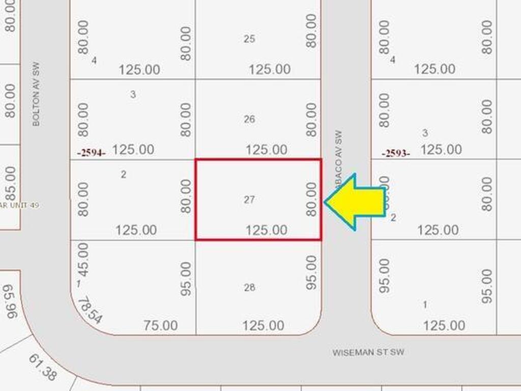 The 0.23 acre buildable residential lot is available in Port Malabar Unit 49 of Palm Bay. Located in the southwest section, this lot is just 1.9 miles - 5 minutes to Westside Elementary School, 3.7 miles - 9 minutes to the Publix Supermarket, 15 miles - 31 minutes to Melbourne Airport, and 18 miles - 39 minutes to the beaches of Indialantic. From exit #176 of I-95 go west on Palm Bay Road for .7 miles, left on Minton Road for 3.4 miles, right on Jupiter Boulevard then quick left on DeGroodt Road for 3.3 miles, right on Osmosis Drive for 1.0 mile, right on Wiseman Street for .1 mile, and right on Abaco Avenue. The lot will be on your left.
