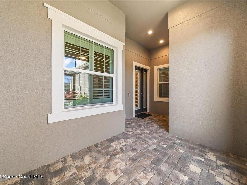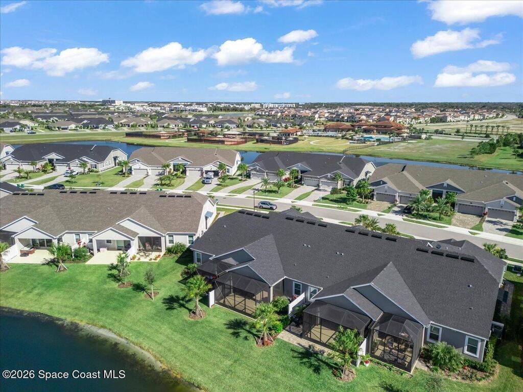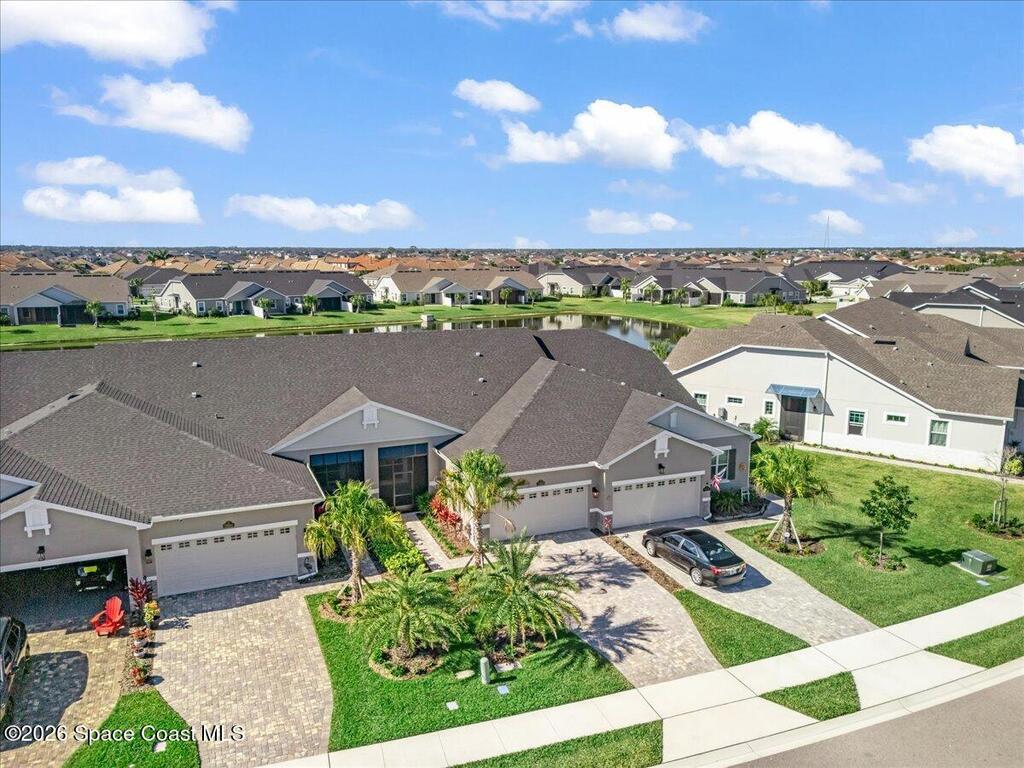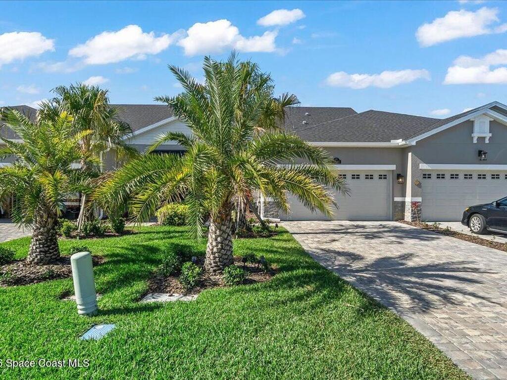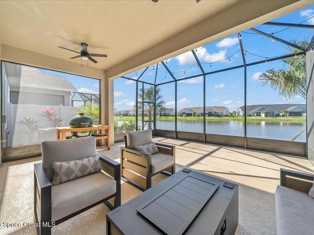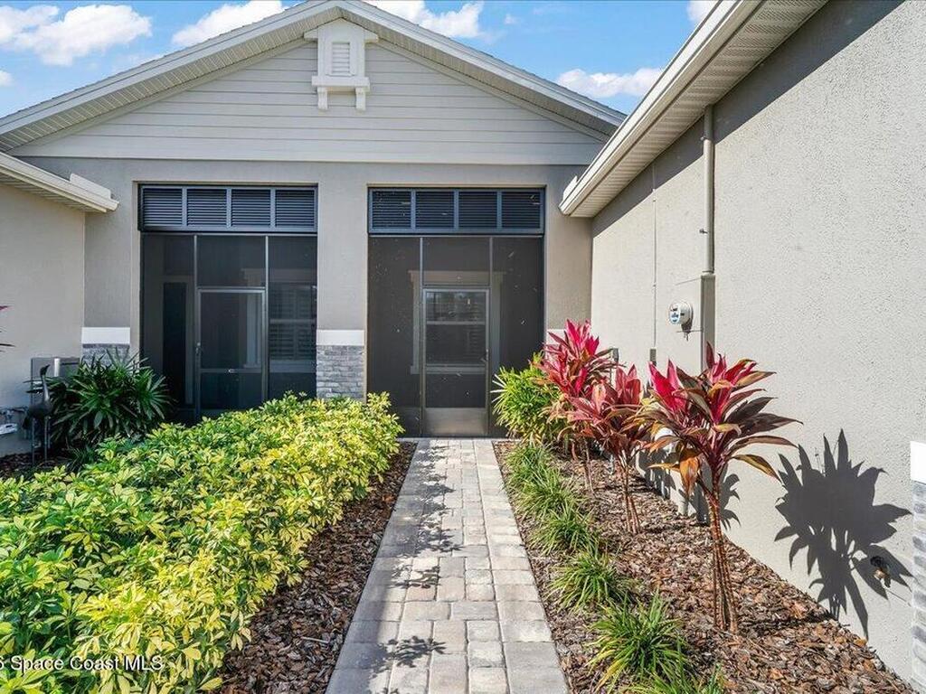 This Viera Home will make your 2026 even Happier! Welcome to Avalonia in Viera West, where this fully upgraded, waterfront Lindsey II villa, built in late 2024, delivers maintenance-free luxury living at its finest.Arrive to a modern coastal vibe, paver driveway, epoxy finished 2 car garage, screened front covered porch and a spacious open floor-plan that showcases, gorgeous neutral toned wood flooring throughout entire home, stunning gourmet kitchen with a gas range, quartz counters in kitchen & baths, large primary bedroom & upgraded bath w/frameless shower, impact-rated windows and doors, plantation shutters, stylish tall doors and baseboards help bring everything together. Efficient and convenient tankless natural gas water heater, and an in-wall pest control system for true peace of mind. Enjoy breathtaking lakefront sunsets from your fully screened, extended patio--the perfect place to unwind.