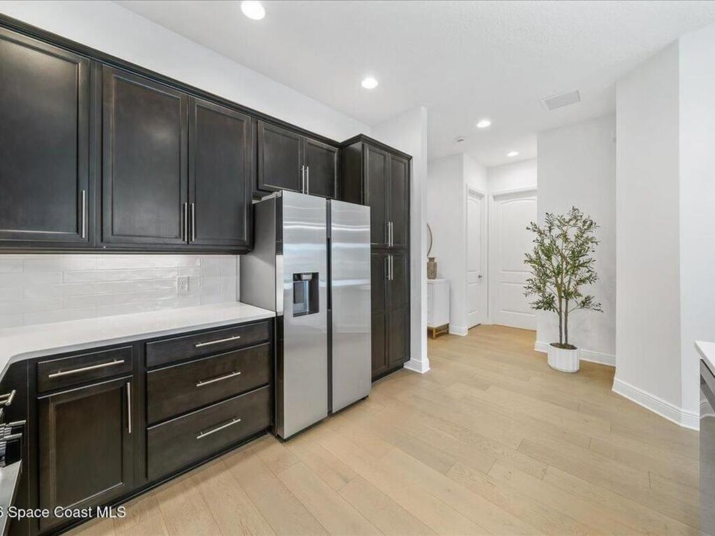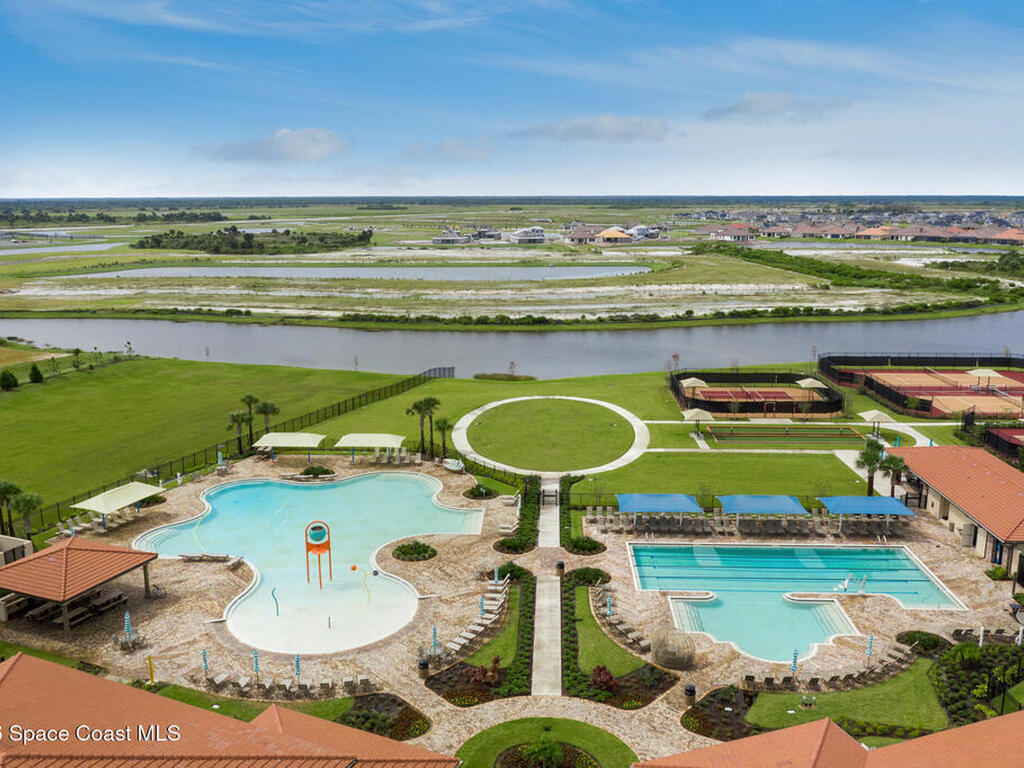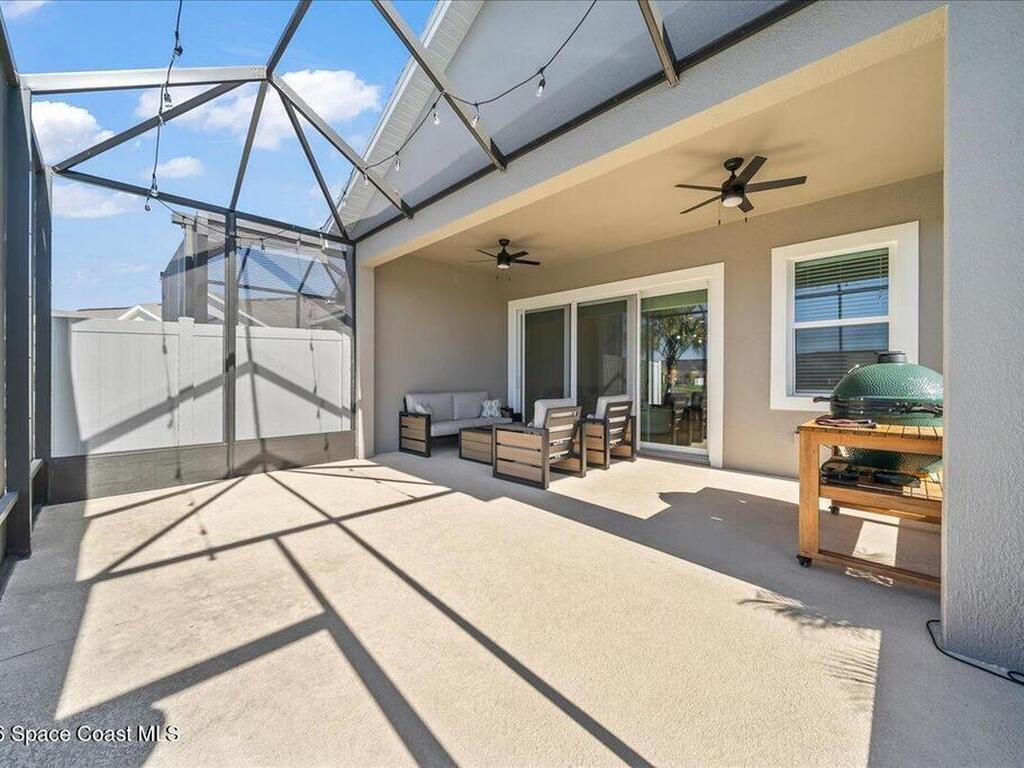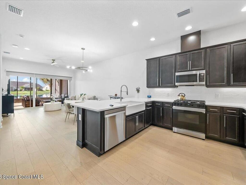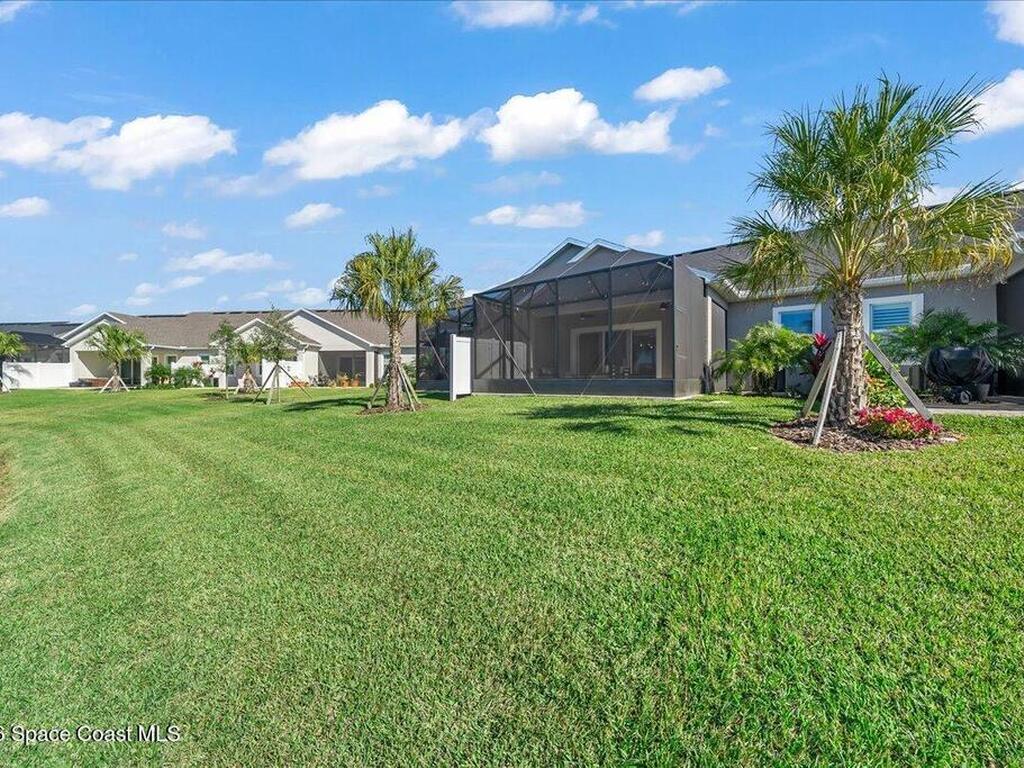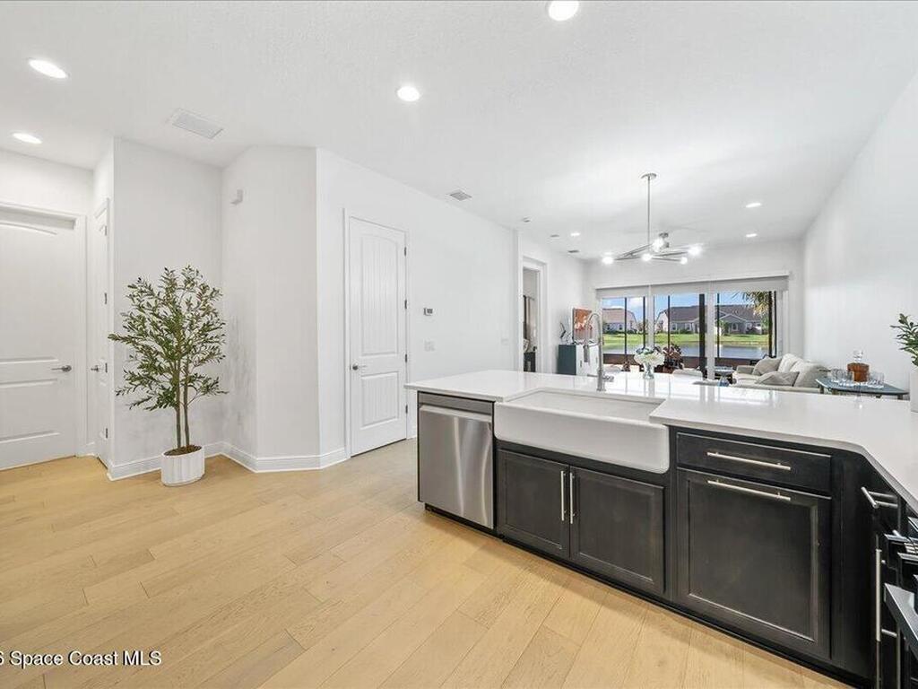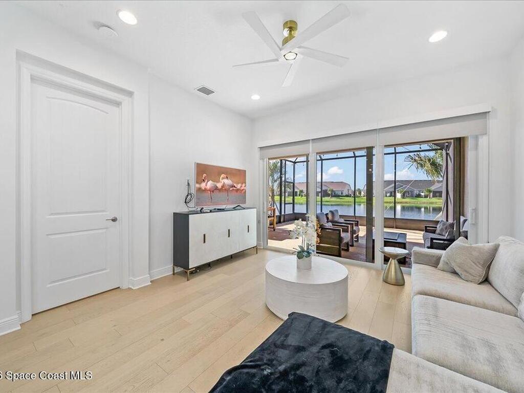This Viera Home will make your 2026 even Happier! Welcome to Avalonia in Viera West, where this fully upgraded, waterfront Lindsey II villa, built in late 2024, delivers maintenance-free luxury living at its finest.Arrive to a modern coastal vibe, paver driveway, epoxy finished 2 car garage, screened front covered porch and a spacious open floor-plan that showcases, gorgeous neutral toned wood flooring throughout entire home, stunning gourmet kitchen with a gas range, quartz counters in kitchen & baths, large primary bedroom & upgraded bath w/frameless shower, impact-rated windows and doors, plantation shutters, stylish tall doors and baseboards help bring everything together. Efficient and convenient tankless natural gas water heater, and an in-wall pest control system for true peace of mind. Enjoy breathtaking lakefront sunsets from your fully screened, extended patio--the perfect place to unwind.