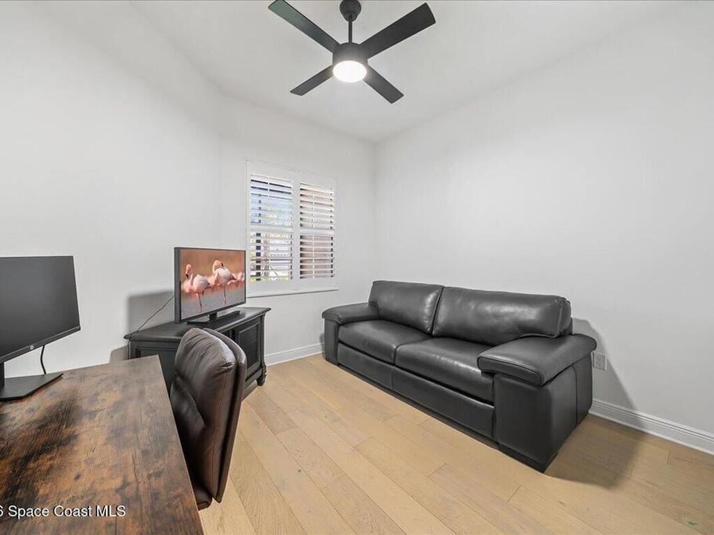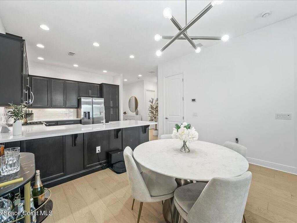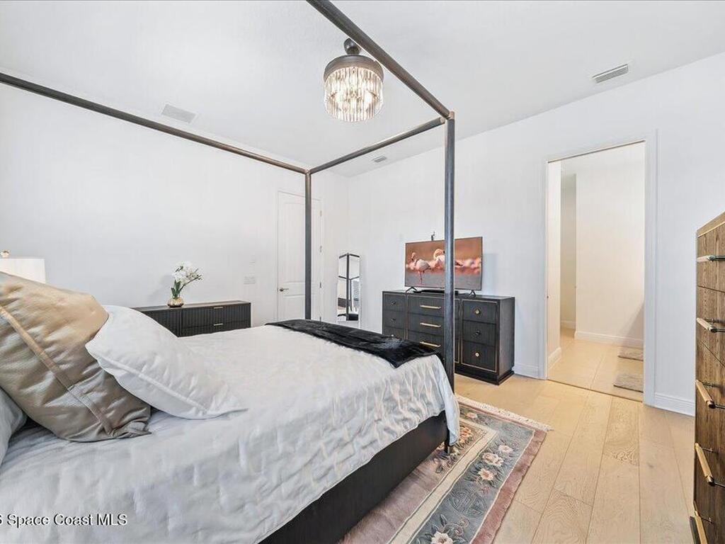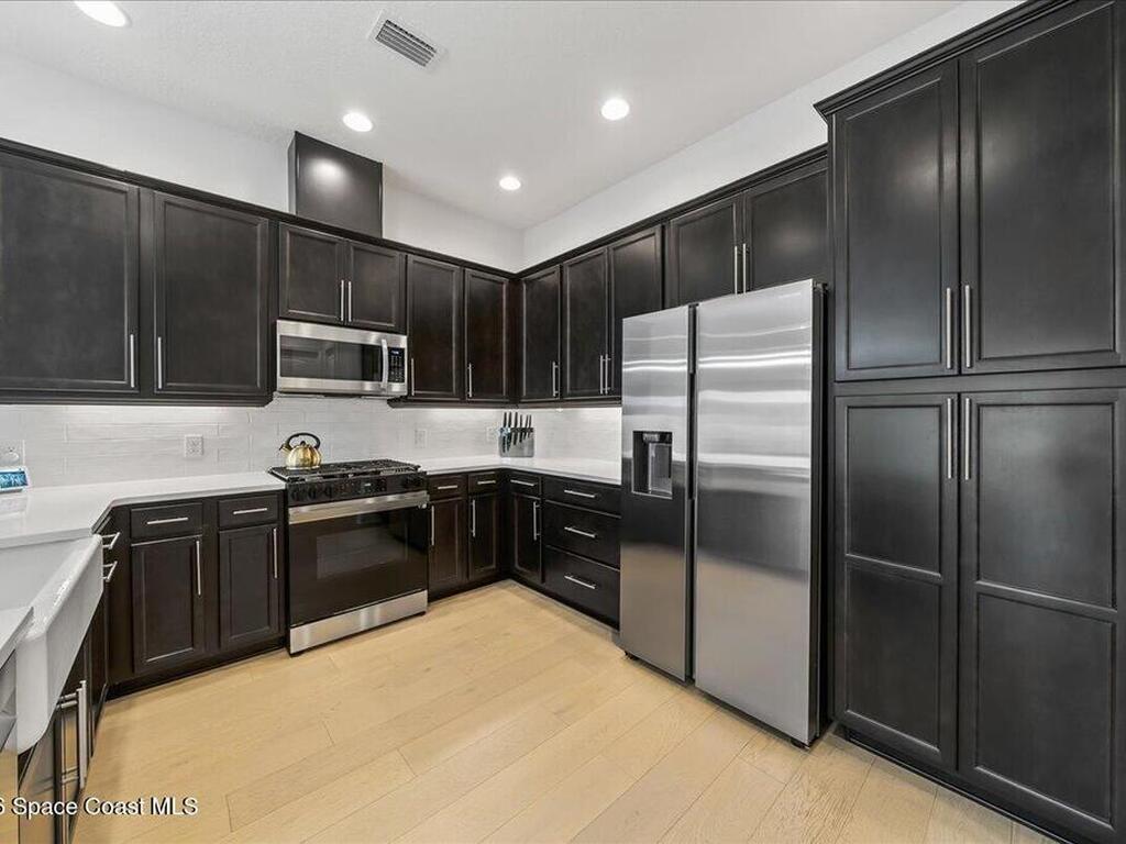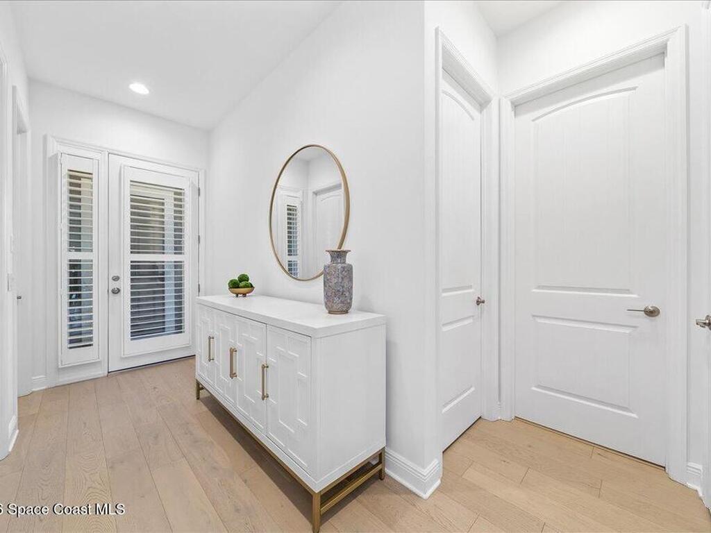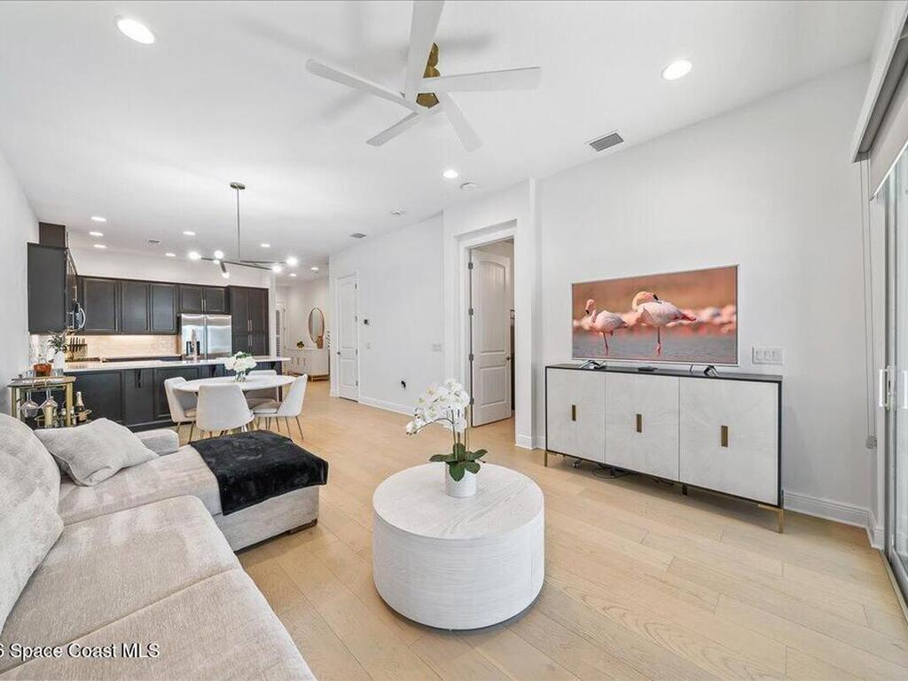 This Viera Home will make your 2026 even Happier! Welcome to Avalonia in Viera West, where this fully upgraded, waterfront Lindsey II villa, built in late 2024, delivers maintenance-free luxury living at its finest.Arrive to a modern coastal vibe, paver driveway, epoxy finished 2 car garage, screened front covered porch and a spacious open floor-plan that showcases, gorgeous neutral toned wood flooring throughout entire home, stunning gourmet kitchen with a gas range, quartz counters in kitchen & baths, large primary bedroom & upgraded bath w/frameless shower, impact-rated windows and doors, plantation shutters, stylish tall doors and baseboards help bring everything together. Efficient and convenient tankless natural gas water heater, and an in-wall pest control system for true peace of mind. Enjoy breathtaking lakefront sunsets from your fully screened, extended patio--the perfect place to unwind.