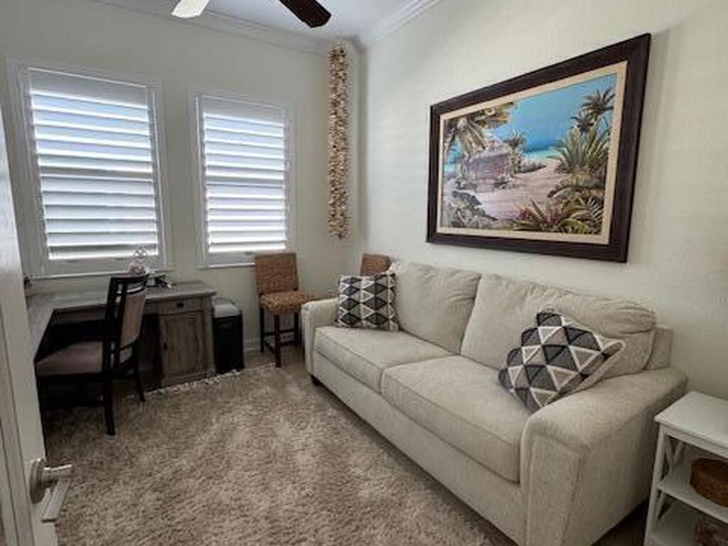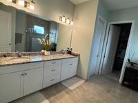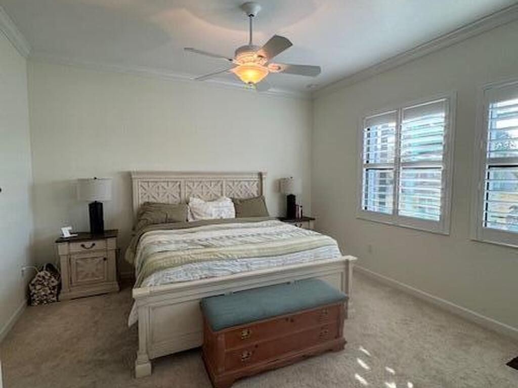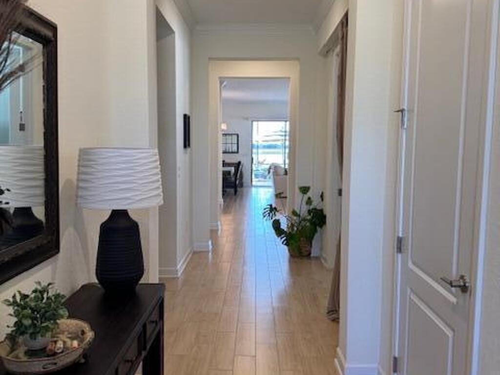 Enjoy resort style living in this 55+ adult community at Bridgewater of Viera. This 4-bedroom 3.5 half bath (3 ensuite bedroom baths) home features tile in main living areas and carpet in the bedrooms. Large kitchen with walk in pantry overlooks living/dining room. Master suite has walk in closet, double vanity and walk in shower. Triple sliders open up to huge, screened lanai overlooking the lake. Perfect for entertaining or just enjoying the peaceful sunsets. Whether you enjoy relaxation or an active lifestyle this community will check all the boxes. From the private clubhouse w/ pool, spa, fitness center, movie theater, tennis, pickle ball, bocce ball and more! Conveniently located near I-95, shopping centers, and a variety of restaurants