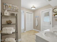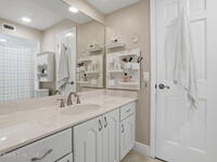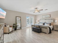 Wake up to the rhythm of the ocean in this beautifully maintained 4BR/3BA home in the guarded, gated Sanctuary community just a short walk to the beach. Thoughtfully designed for coastal living, enjoy your own saltwater screened-in pool oasis with new pavers, upgraded landscaping and a cozy firepit perfect for s'mores and sunset memories. The split floor plan offers flexibility for family and guests with a private in-law/guest suite, while each generously sized bedroom easily accommodates a king-size bed, providing comfort and space for all. The upstairs owner's suite features a private balcony to sip morning coffee and listen to the surf. Gather in open living spaces, relax by the pool or enjoy community amenities including clubhouse, courts and scenic paths. Oversized garage fits a golf cart and includes a 220vault outlet for EV charging. A home where beachside memories are made, and every day feels like a vacation.Seller is a licensed FL Realtor.