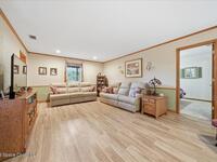Serene, private 2 story brick (NC Farmhouse style) home with wrap around front porch situated on 1 acre lot. This pool home features 4 bedrooms (3 up, 1 down), 3.5 baths and a 575 sqft bonus room with office. On the main floor is a bedroom and bath, dedicated dining room, kitchen, and half bath along with a living room with fireplace, interior utility/laundry room with adjoining large walk-in pantry. Kitchen has 42'' cabinets with quartz counter top with eat in dining area with built in bench. Upstairs you'll find the primary suite & 2 additional bedrooms as well as a full bathroom. The large primary suite features dual walk in closets and private bathroom. Enjoy your morning coffee listening to the birds on the front porch or out back in your private oasis with a screened in 12X30 pool with lanai that runs the whole width of the home. The fully fenced private yard has a flagstone patio with fire pit, irrigation system with well water, and 2 sheds for additional storage.