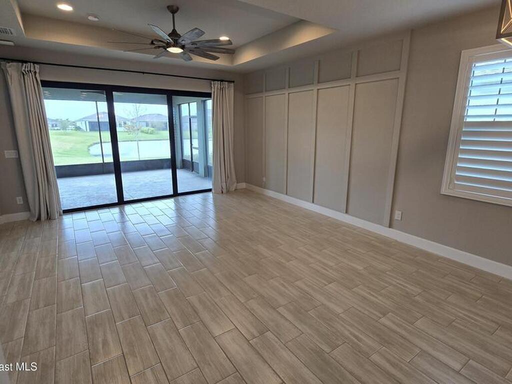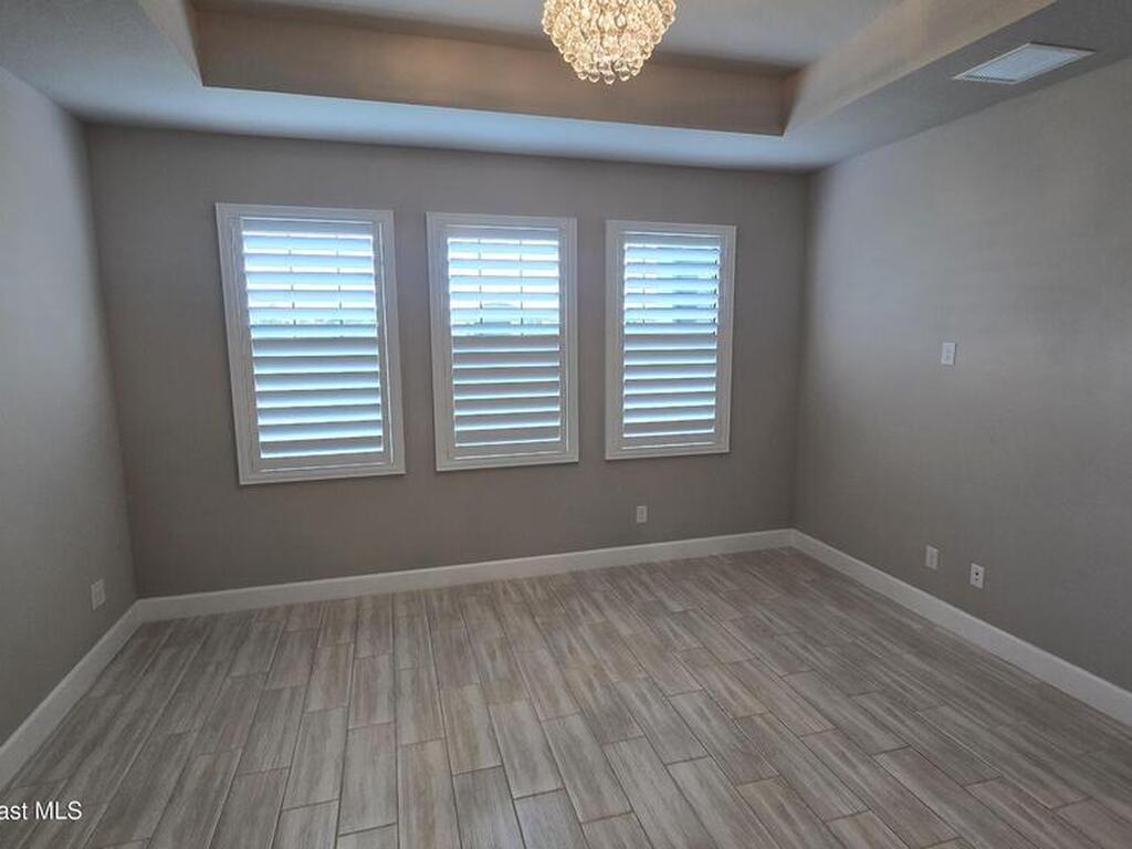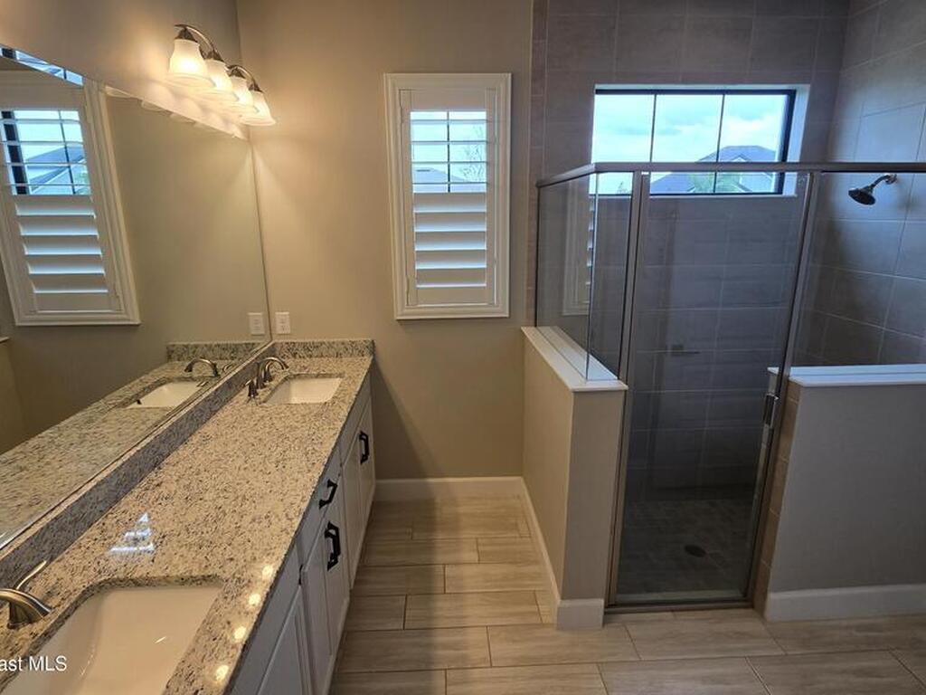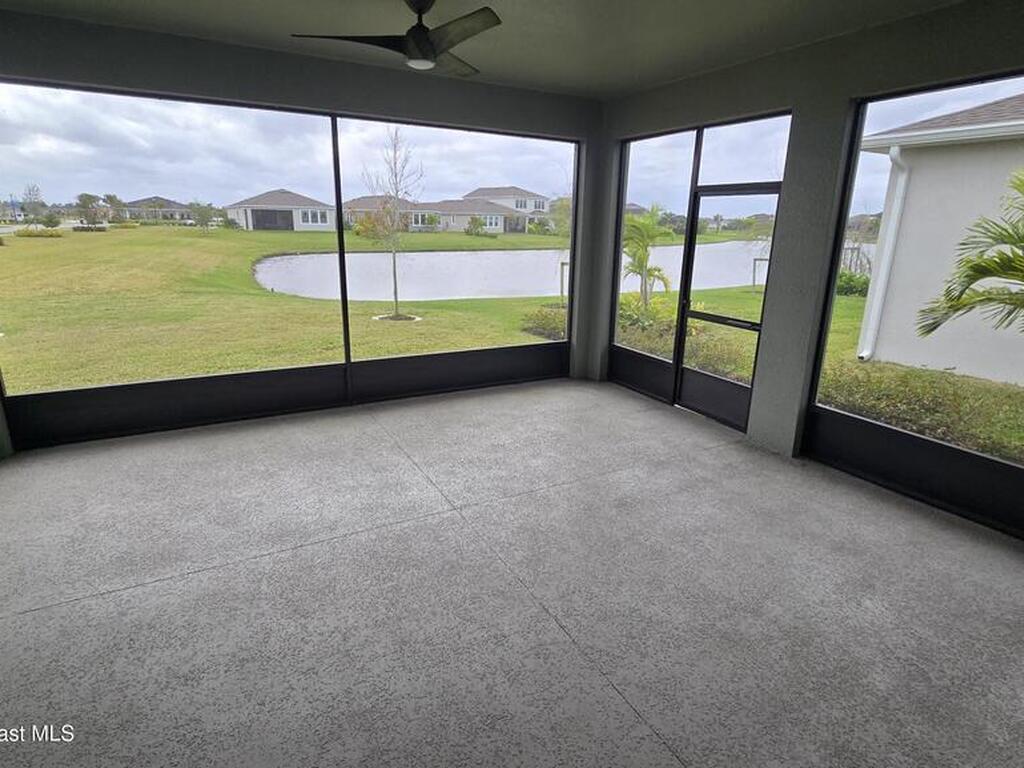 LAWN CARE INCLUDED! This like-new home sits on a premium corner lot, with peaceful lake views. This home offers a rare opportunity to rent a barely lived-in, like-new home packed with high-end finishes. Enjoy a bright, open layout with neutral tones, upgraded tile flooring, and plantation shutters throughout. The kitchen features a kitchen island with beautiful quartz countertops and plenty of soft-close cabinets. Take in serene lake views from the spacious backyard and huge screened porch. Location is everything! Situated in a golf cart-friendly community, this home is perfectly located near walking and biking trails, the Brevard Zoo, Duran Golf Club, and Costco. With endless shopping and dining options and quick access to I-95, it offers the perfect blend of style, convenience, and community living! Community Pool, playground, pickleball/tennis, clubhouse and park!