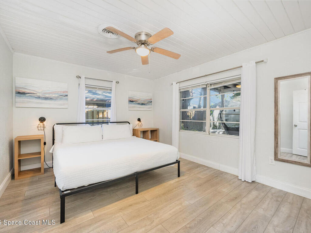 Live in one unit and rent the other to offset living costs. Turnkey, fully furnished Airbnb-ready duplex in Downtown Cocoa Beach! Each 2BD/1BA unit features large bedrooms, private laundry, and screened back porches. High-demand amenities that boost rates and guest satisfaction. Walkable to the beach, dining, shops, and entertainment with strong year-round tourism. Current annual income of $96, 360 provides excellent cash flow. Rare coastal investment with proven rental appeal and appreciation. Recent updates: flooring, interior/exterior paint, kitchen and bath remodels (2021), new HVAC and ducts (2021), and new roof (2023).Fully furnished with 2 king beds, 2 queen beds, 2 pullout couches, dishwasher, stove/oven, refrigerator in each unit. 2 wall mounted TV's, all extra linens. Washing machines and dryers in each unit.