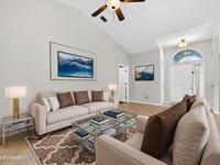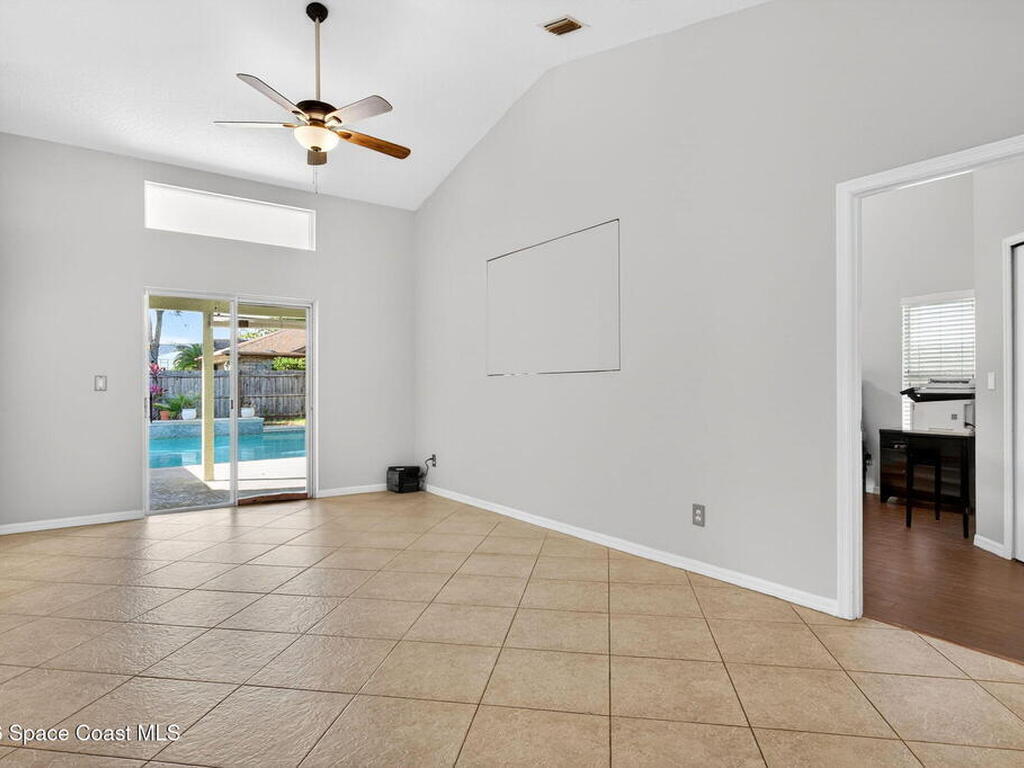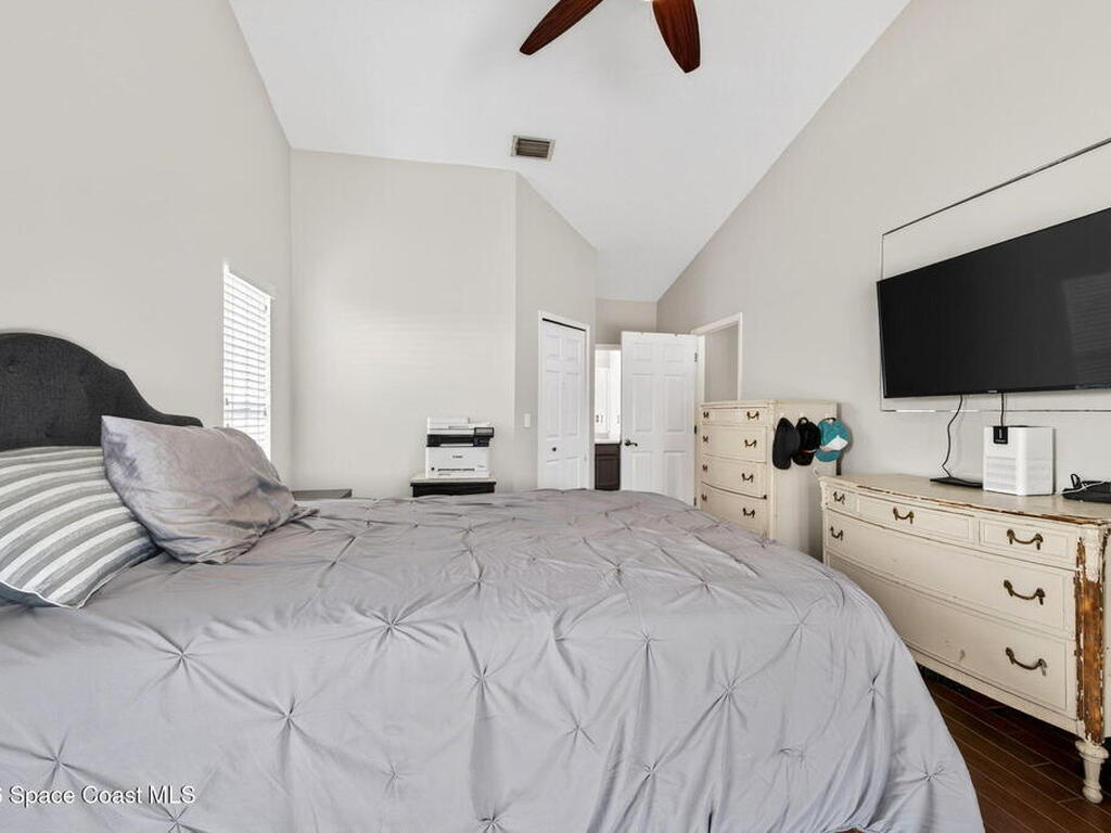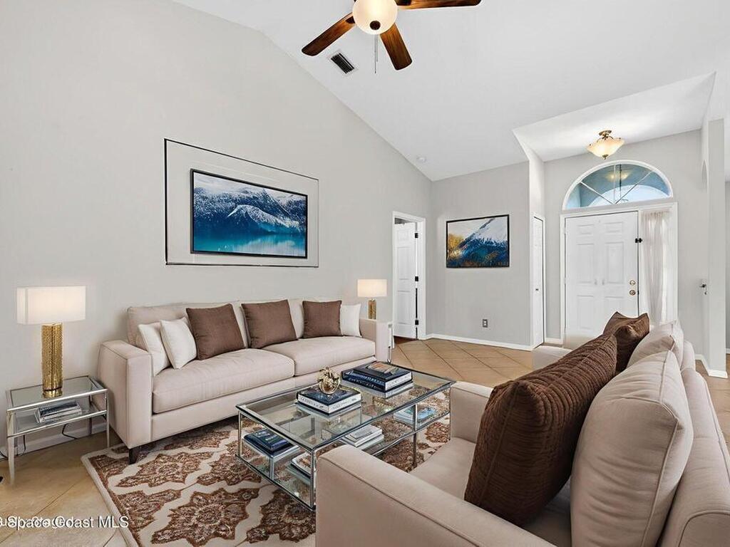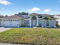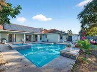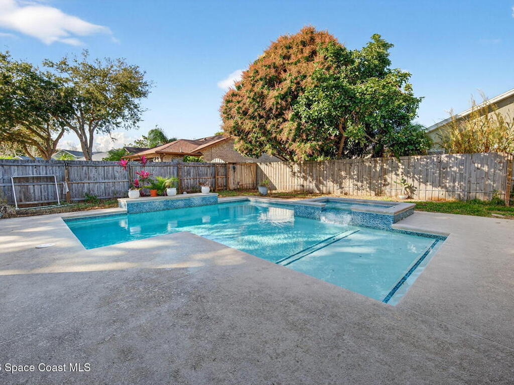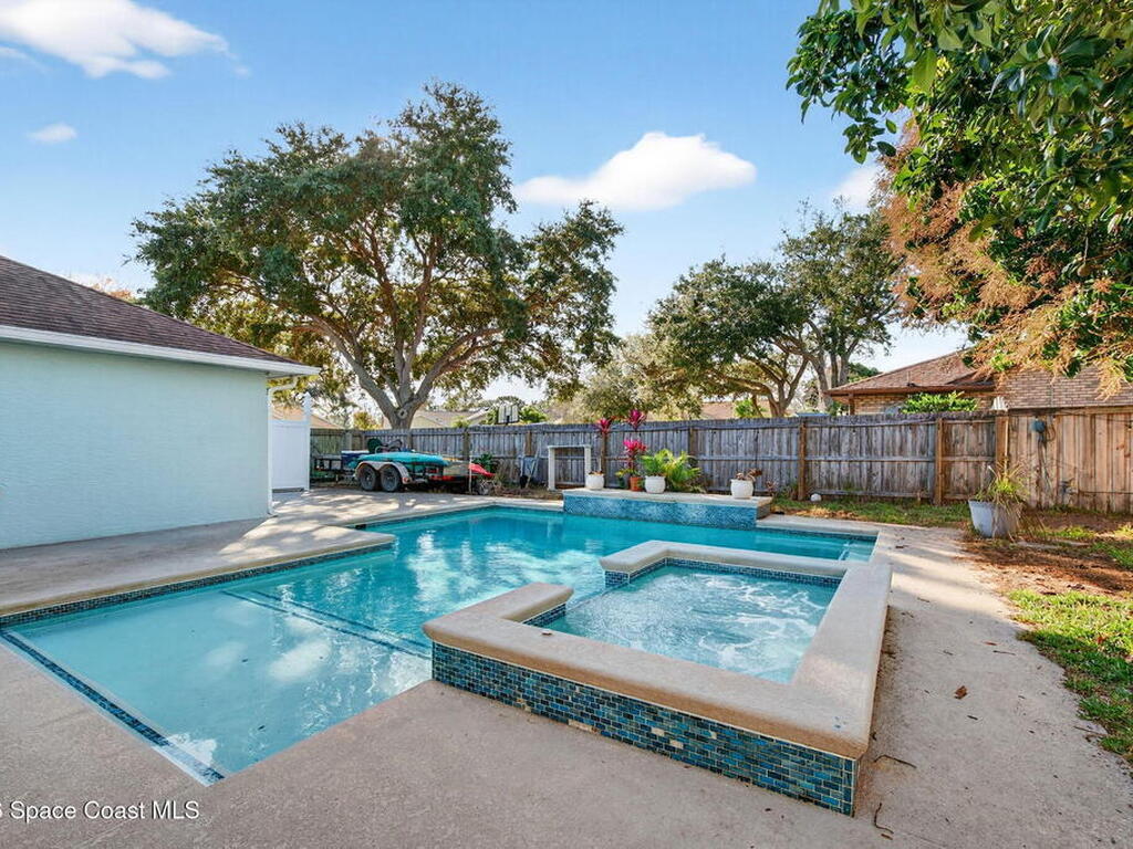 Come see this 4 bedroom home in the desirable Pineda Crossing neighborhood. This home offers a functional layout and desirable upgrades. Enjoy a saltwater pool with a waterfall, LED lighting, and in-ground hot tub (2019), a large fully trussed porch with three sliding glass doors, and a fenced backyard (2019).The primary suite features a garden tub, separate shower, dual sinks, private water closet, and direct access to the porch and pool.Additional highlights include solar panels, EV charging capability in the garage, tankless water heater, irrigation system, newer paint, and newer A/C. Conveniently located just 15 minutes from the beach, with easy access to shopping and dining.