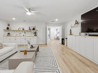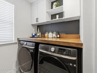 Beautifully upgraded and move-in ready, this four-bedroom, 3.5-bath home offers a highly desirable double primary suite layout with one primary bedroom downstairs and another upstairs. No carpet throughout, with vinyl flooring installed on the entire second level and staircase for a clean, modern feel.The home features a flexible living space with custom built-in cabinetry and a dry bar, perfect for entertaining or a home office. The downstairs living room includes a mantle with electric fireplace, creating a warm, inviting atmosphere. Additional upgrades include a water softener system, built-in security cameras, and a Smart Home system with app-controlled front door and garage access.The fully customized laundry room offers cabinetry, shelving, built-in drying racks, and a clothing sorting system, while the garage includes a permanent storage solution. The yard is fully fenced with vinyl fencing and rear metal picket fencing per HOA.