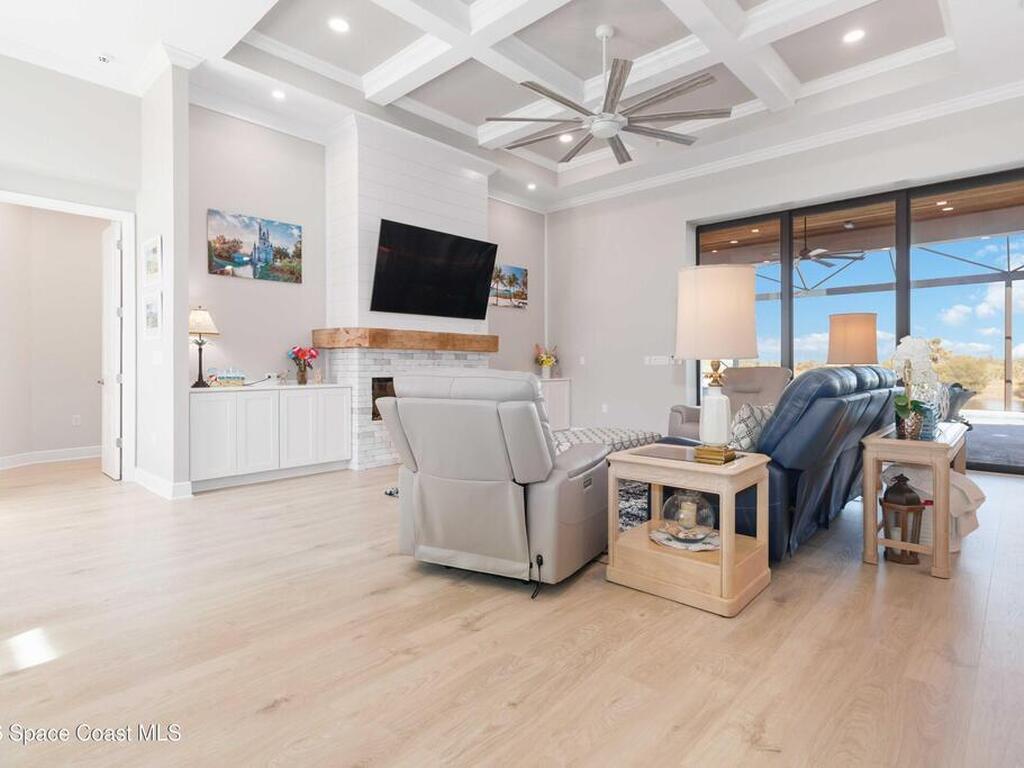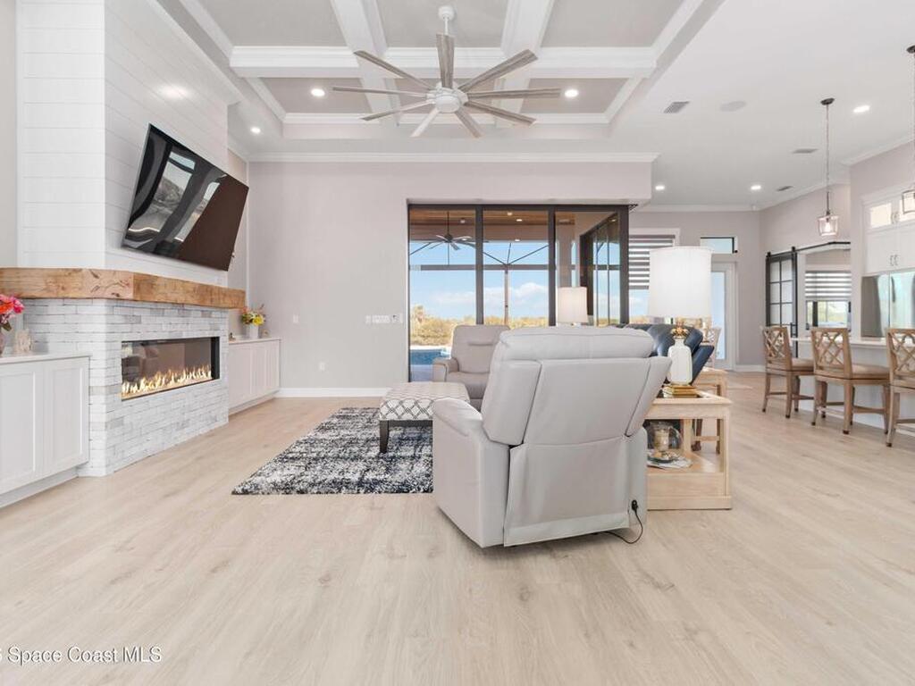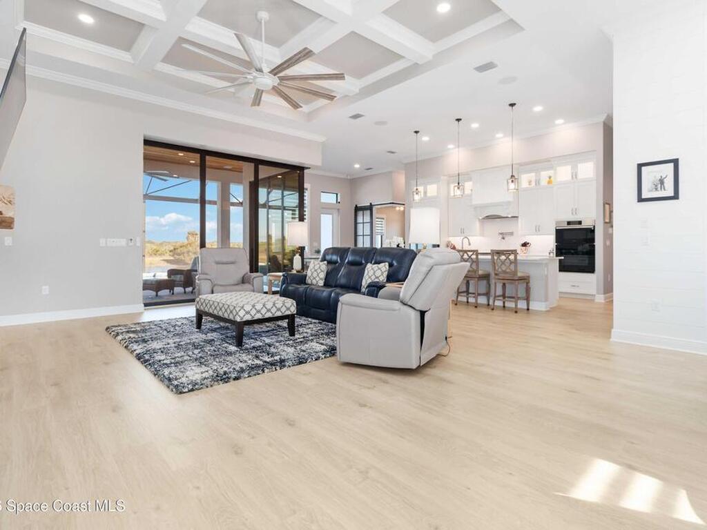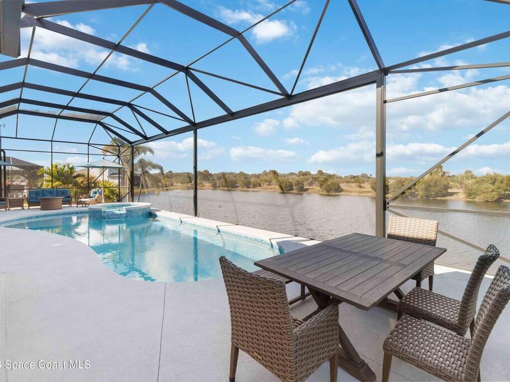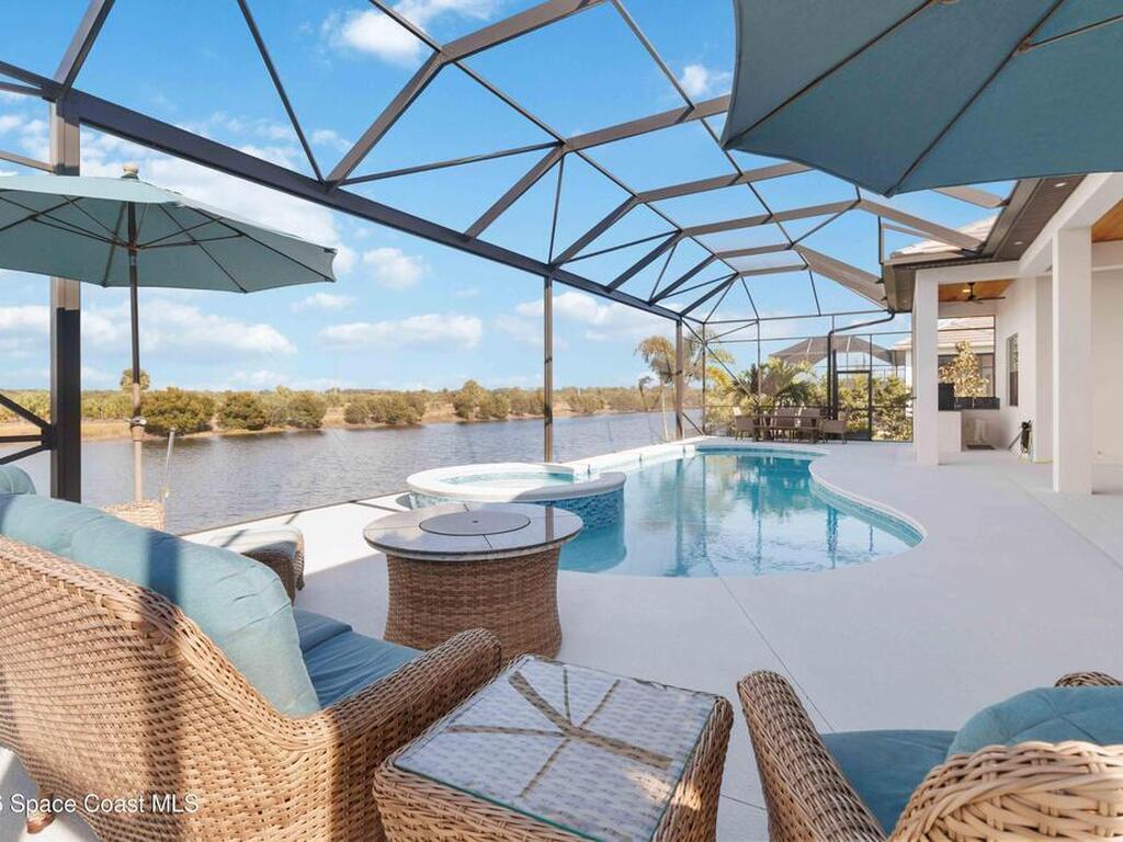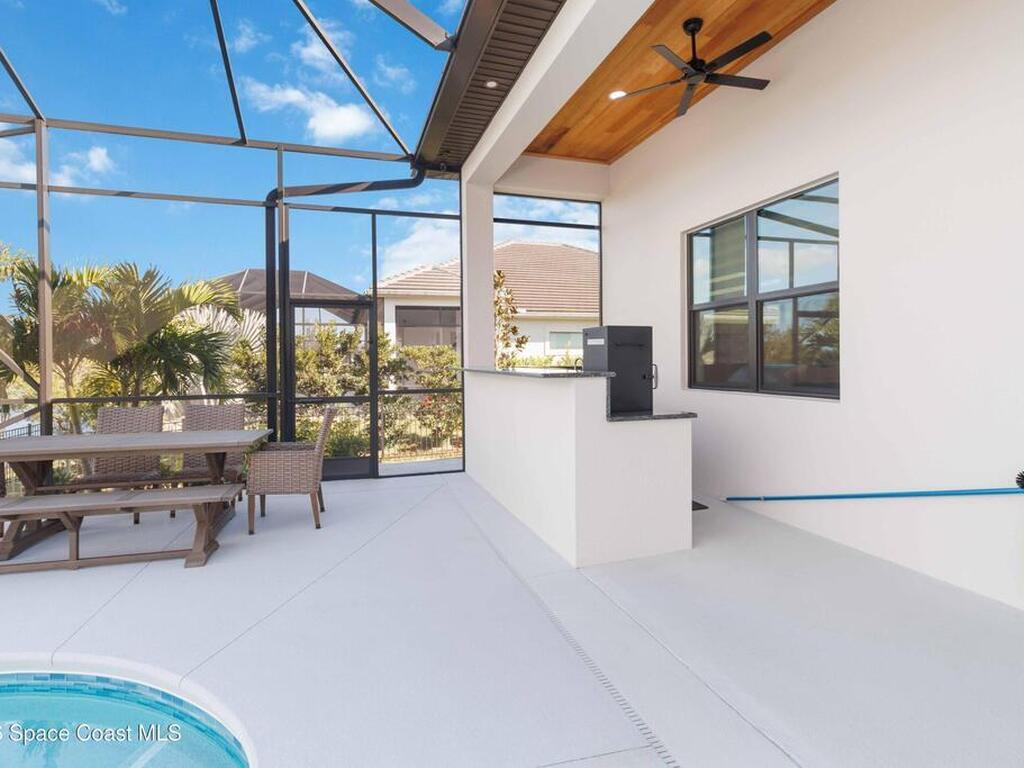 No expense was spared in this custom 2024 Lifestyle Home, with over $350, 000 in upgrades. Designed with Coastal elegance, high-end features, and long-term efficiency. This gem offers upgrades throughout. With panoramic lake views, rocket launches, a huge heated pool & spa, and outdoor kitchen you will enjoy real Florida living. Included are solar panels, whole house Generac generator supported by a 1000-gallon propane tank. Impact windows. Dual A/Cs, Rainbird irrigation, surround sound, and so much more. The luxury main bath with huge shower is wheelchair accessible and offers his/her custom closets. The Chef's Kitchen features a gas range, cabinet pull-outs, pantry with built in shelving, and overlooks the light and bright living/dining area. The fireplace shows off a recycled bar beam mantle, The laundry rm, separate mudroom leads off of the pristine oversized 3 car gagrage with built in storage and work bench. perfect for the car collector! Skip the time and expense of building!