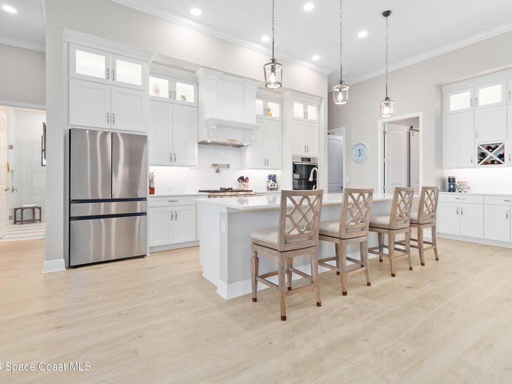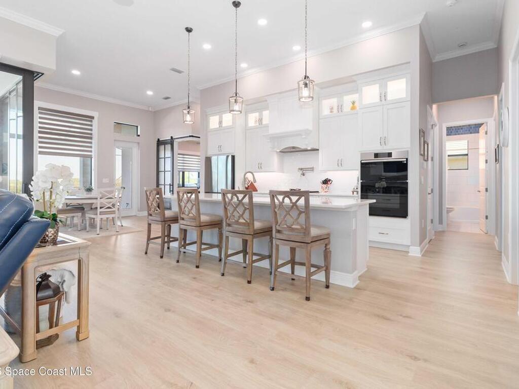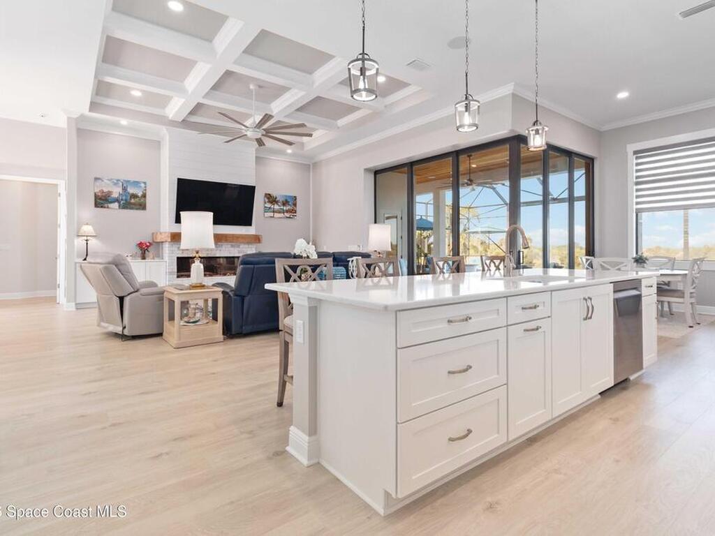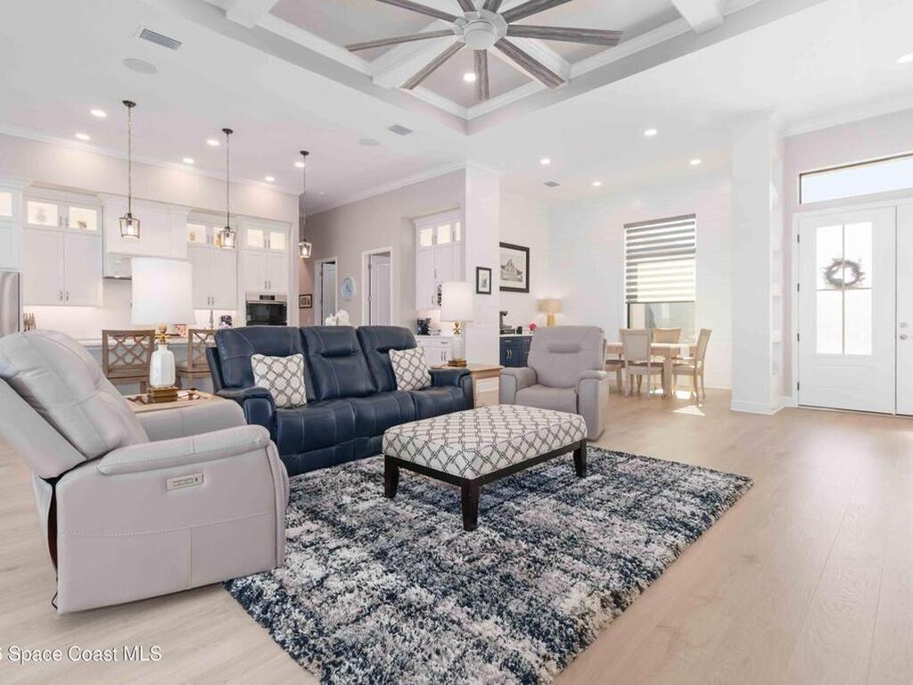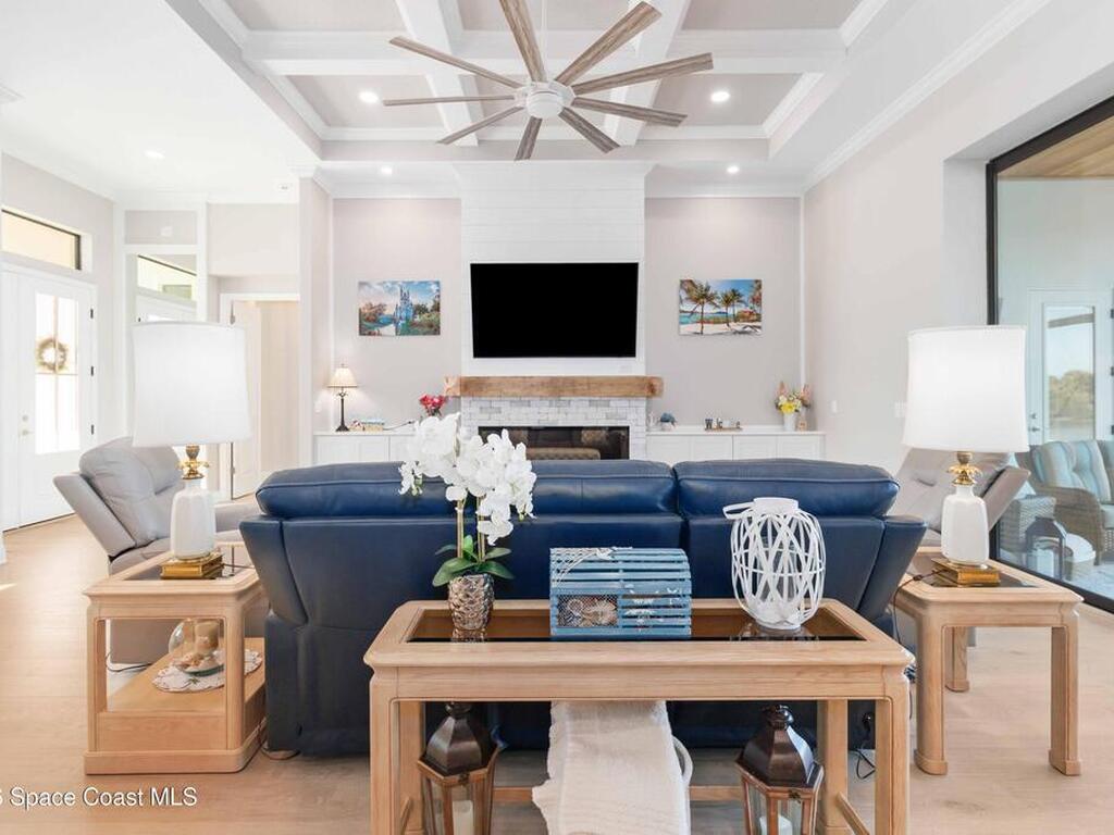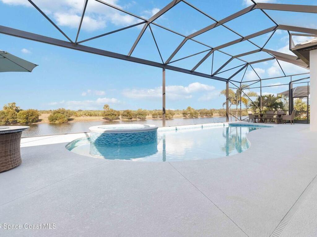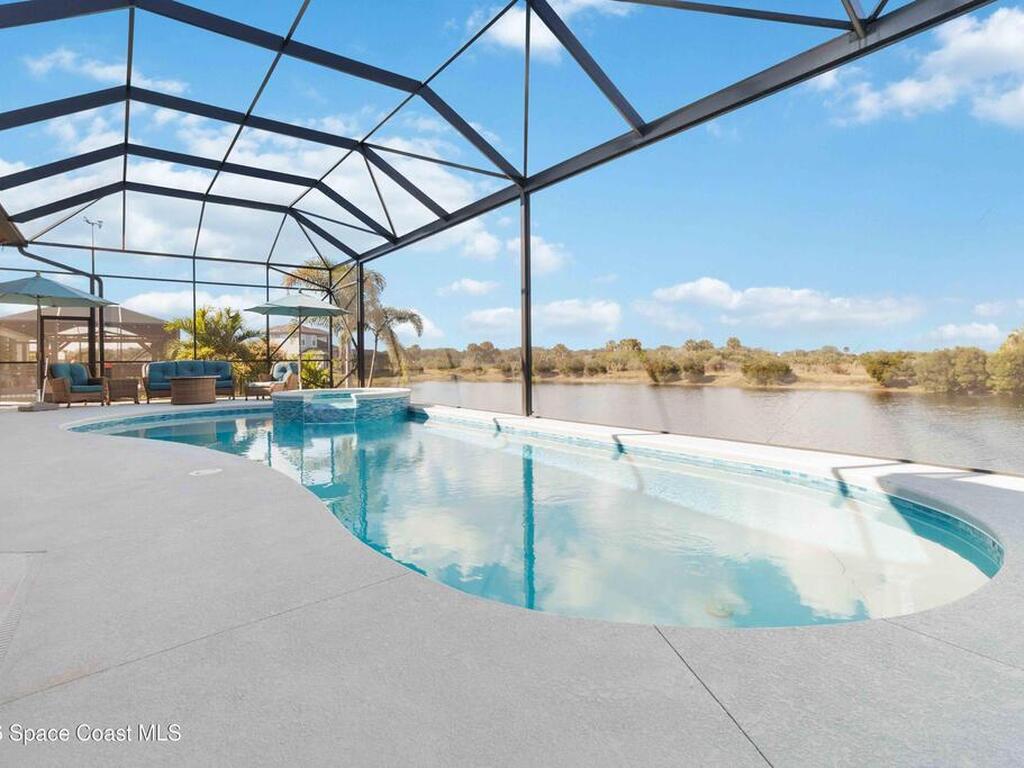 No expense was spared in this custom 2024 Lifestyle Home, with over $350, 000 in upgrades. Designed with Coastal elegance, high-end features, and long-term efficiency. This gem offers upgrades throughout. With panoramic lake views, rocket launches, a huge heated pool & spa, and outdoor kitchen you will enjoy real Florida living. Included are solar panels, whole house Generac generator supported by a 1000-gallon propane tank. Impact windows. Dual A/Cs, Rainbird irrigation, surround sound, and so much more. The luxury main bath with huge shower is wheelchair accessible and offers his/her custom closets. The Chef's Kitchen features a gas range, cabinet pull-outs, pantry with built in shelving, and overlooks the light and bright living/dining area. The fireplace shows off a recycled bar beam mantle, The laundry rm, separate mudroom leads off of the pristine oversized 3 car gagrage with built in storage and work bench. perfect for the car collector! Skip the time and expense of building!