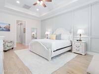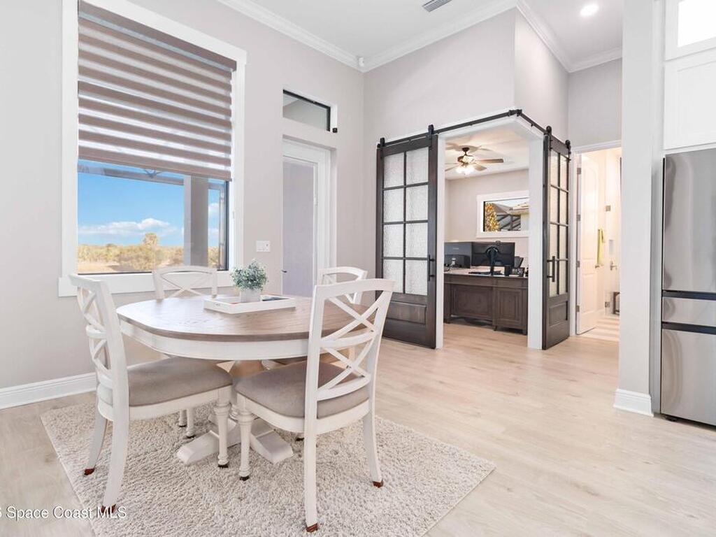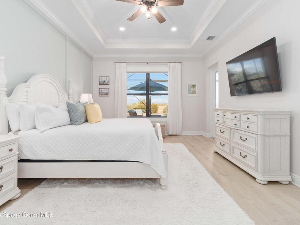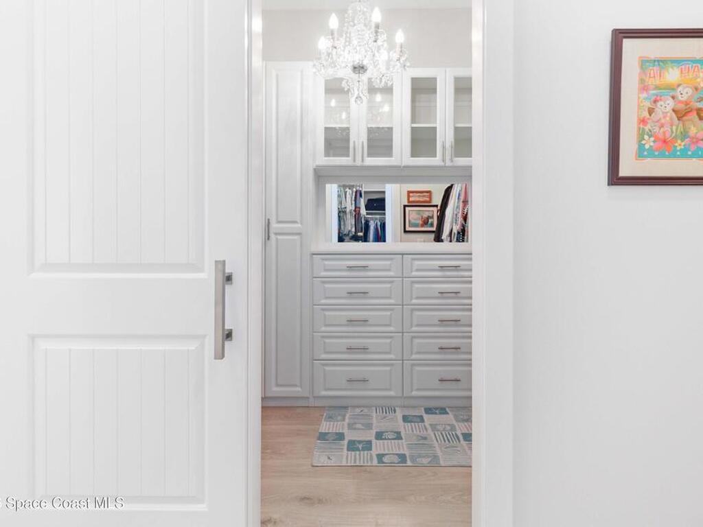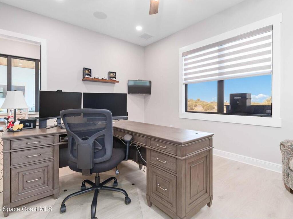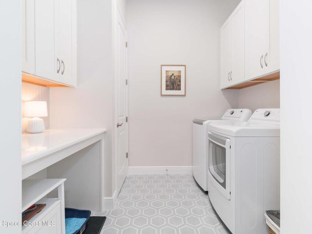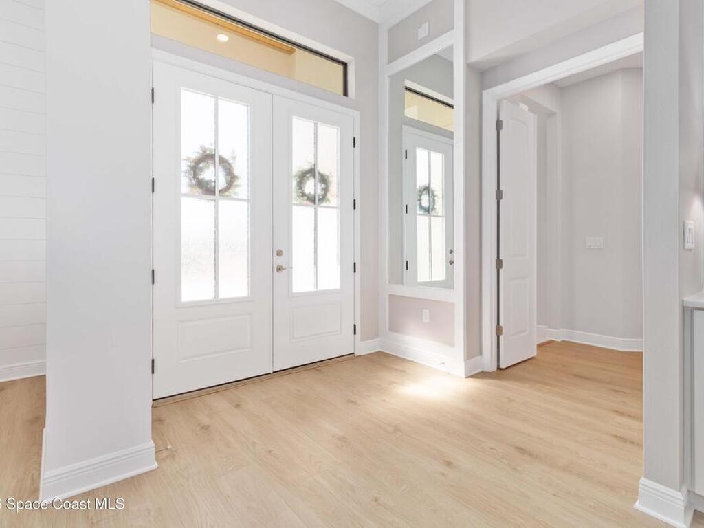 No expense was spared in this custom 2024 Lifestyle Home, with over $350, 000 in upgrades. Designed with Coastal elegance, high-end features, and long-term efficiency. This gem offers upgrades throughout. With panoramic lake views, rocket launches, a huge heated pool & spa, and outdoor kitchen you will enjoy real Florida living. Included are solar panels, whole house Generac generator supported by a 1000-gallon propane tank. Impact windows. Dual A/Cs, Rainbird irrigation, surround sound, and so much more. The luxury main bath with huge shower is wheelchair accessible and offers his/her custom closets. The Chef's Kitchen features a gas range, cabinet pull-outs, pantry with built in shelving, and overlooks the light and bright living/dining area. The fireplace shows off a recycled bar beam mantle, The laundry rm, separate mudroom leads off of the pristine oversized 3 car gagrage with built in storage and work bench. perfect for the car collector! Skip the time and expense of building!
