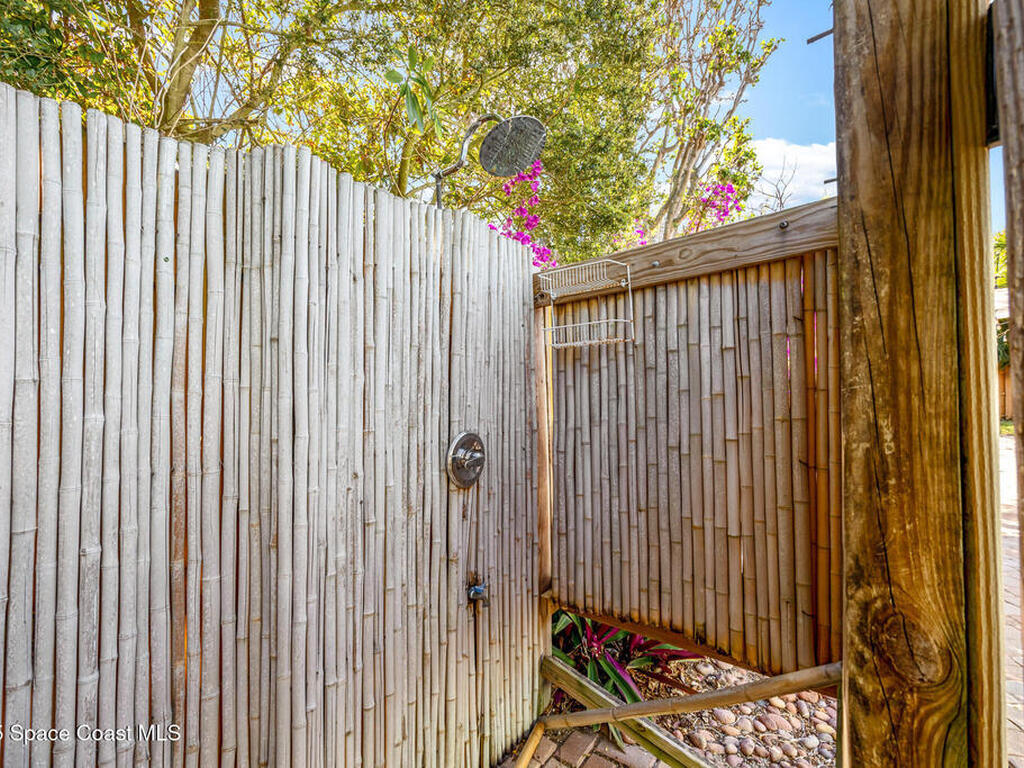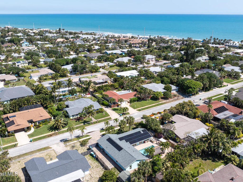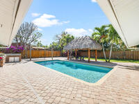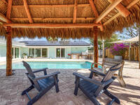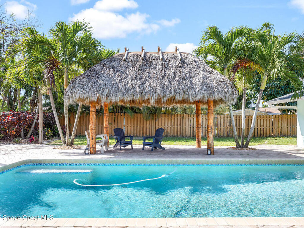 This beautifully upgraded Melbourne Beach retreat offers resort-style living just a short walk to the ocean. Featuring a 2024 roof, sleek porcelain tile throughout, and a new refrigerator, this home blends style and function. Impact-rated windows and sliders, plus a smart security system with cameras, add peace of mind. The open layout includes a well-appointed kitchen with granite counters, breakfast bar, and double ovens. Outside, a tropical paradise awaits: oversized pool, massive tiki hut, covered lounge areas, and a fully equipped outdoor kitchen--perfect for entertaining. Additional highlights include a solar panel system with EV charging, RV/boat parking pad, outdoor shower, storage shed, and lush landscaping. No HOA and close to restaurants, parks, and shopping. Ideal for full-time living, second home, or vacation rental. Live the Florida lifestyle with space, privacy, and high-end upgrades in a prime beachside location.