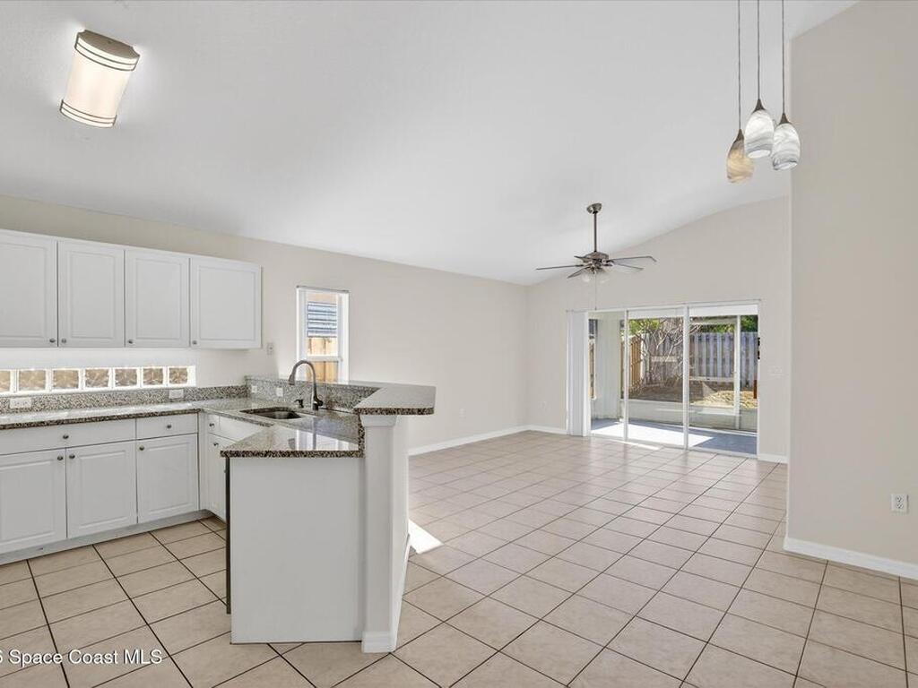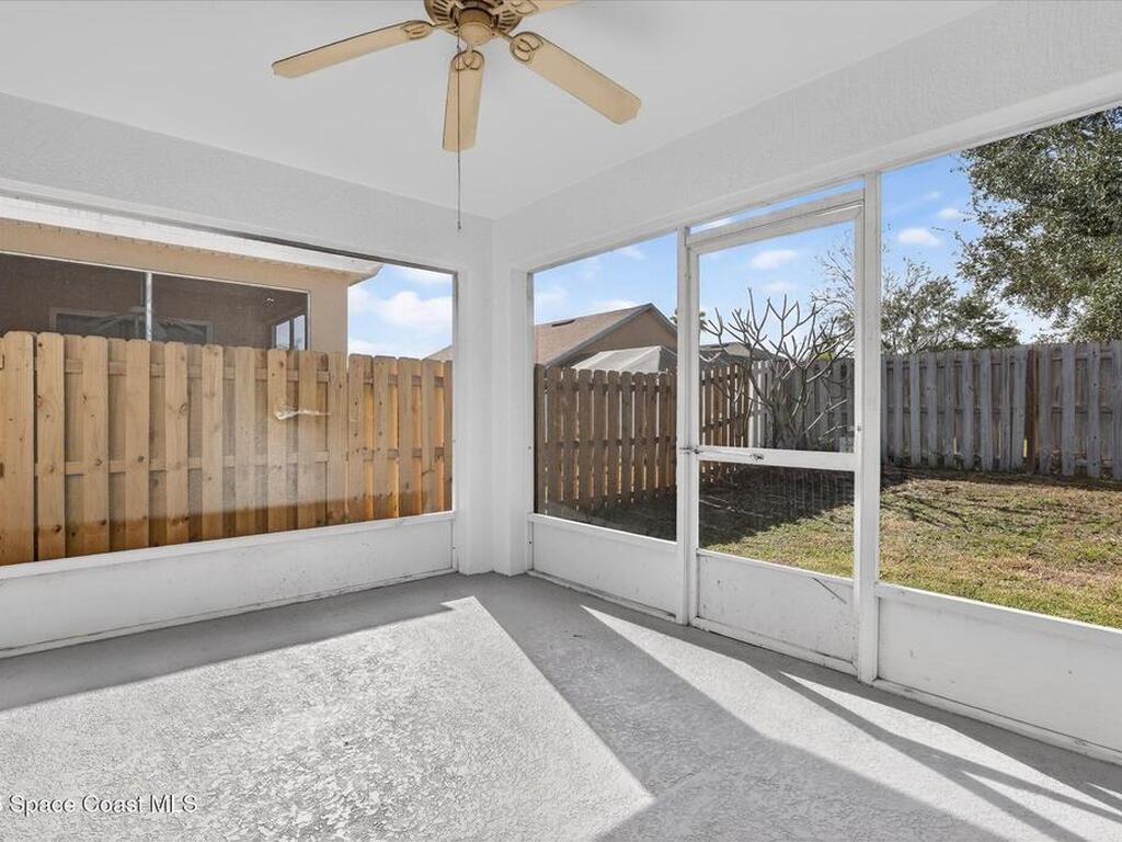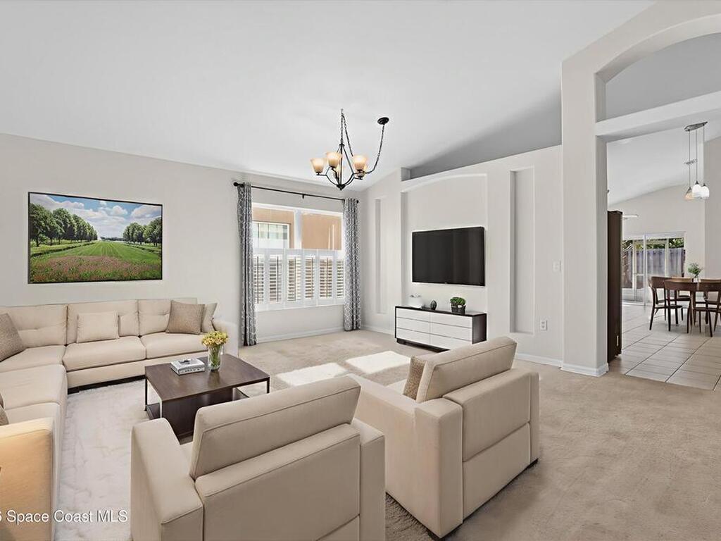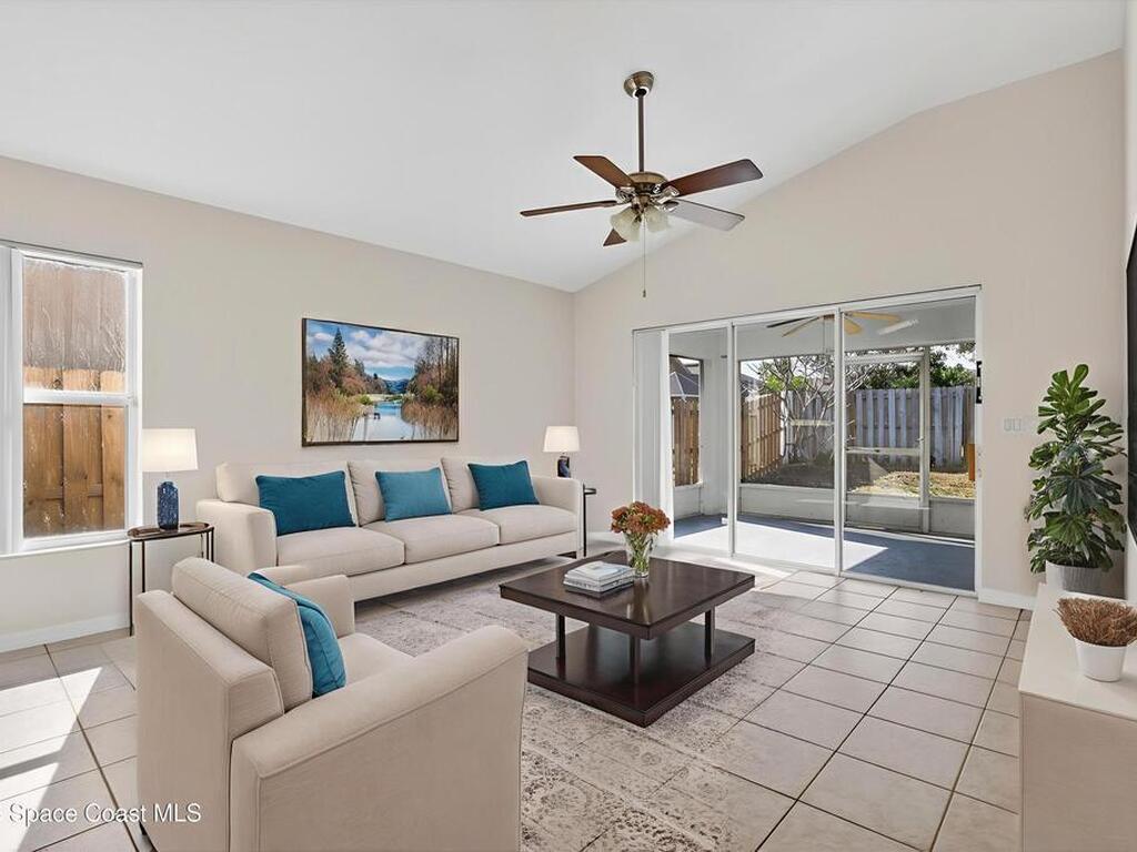 Bright, inviting, and move-in ready, this 4-bedroom, 2-bath home is ideally located in sought-after East Viera. The open floor plan blends formal living and dining spaces with comfortable everyday areas that flow naturally for relaxing or entertaining. Vaulted ceilings and abundant natural light create an airy, welcoming atmosphere throughout. The primary suite offers a peaceful retreat with a spacious walk-in closet, soaking tub, and separate walk-in shower. Fresh interior and exterior paint, brand-new bedroom carpet, and a fully fenced backyard make it easy to settle right in and enjoy a space perfect for play, pets, or relaxed entertaining. Enjoy quiet mornings, lively gatherings, and easy evenings in a home that adapts to your lifestyle. Set within a well-established community with nearby parks, walking trails, playgrounds, and a sparkling neighborhood pool, and zoned for A-rated schools, this home offers effortless living where comfort, convenience, and community come together.