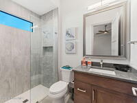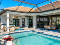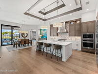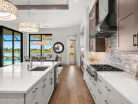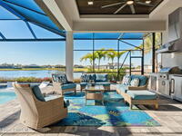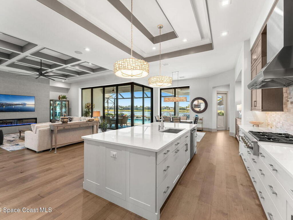 Custom-built in 2023 within Adelaide's exclusive guard-gated enclave, this modern lakefront stunner delivers elevated design, privacy, & sunset views that feel intentional from the start. Set farther back on the lot yet closer to the water's edge, the home frames the lake through 10' doors that open to a soaring, open-concept interior finished with vaulted ceilings, statement lighting, smart-home features, & showpiece fixtures throughout. Quartz surfaces anchor a sleek, high-end kitchen built for entertaining, matched by a full summer kitchen outside beside a resort-caliber saltwater pool with a jet-equipped sun deck & spa overlooking the lake. The living room makes a bold impression with coffered ceilings & a tiled gas fireplace, while the oversized primary suite features tray ceilings, dual custom closets with built-ins, & a marble-finished bath with double vanities, freestanding glass shower w/ Rainhead fixtures, & a separate soaking tub.