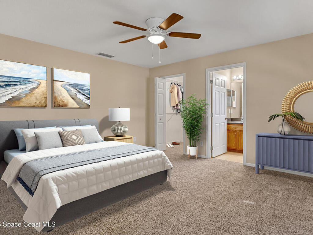New roof. Large, screened porch. Fenced yard. This vacant, move-in ready home puts the must-haves front and center, plus brand-new carpet throughout, & if carpet isn't your thing, the motivated seller is offering $5, 000 with a full-price offer so you can swap it out. Owner financing available! Inside, you'll find a comfortable, functional split layout that's easy to love, ideal for first-time buyers, those looking to downsize, or investors. Out back, the ginormous screened porch spans the entire home, perfect for morning coffee, evening cocktails, and weekend gatherings. The fully fenced backyard with a fire pit offers room for pets, play, gardening, or fireside nights. Bonus perks include a wind mitigation report, storm panels, & a security system. Conveniently located close to shopping, schools, local attractions, and with quick access to I-95.