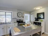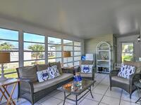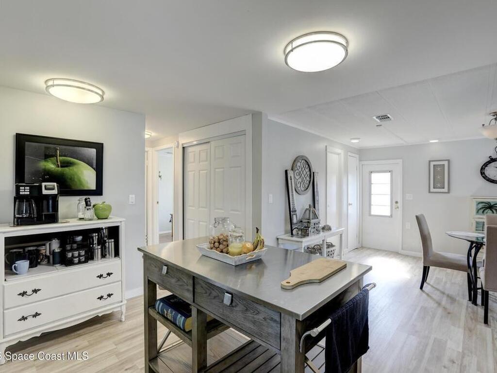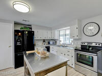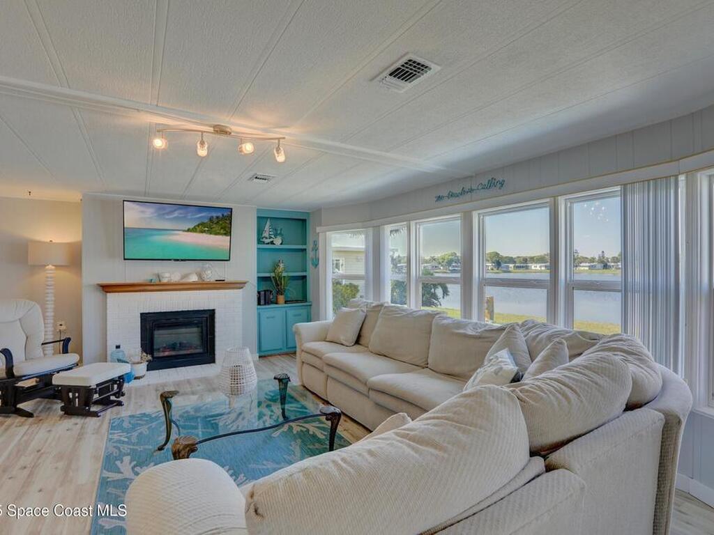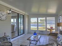 Coastal Sophistication with Stunning Lake Views! This beautifully updated home offers a perfect blend of elegance and comfort, highlighted by serene lake views from the living room and a seamless open floor plan. Expansive bay windows flood the space with natural light, while plank flooring throughout the main living areas adds a modern, cohesive touch. The inviting electric fireplace serves as a stylish focal point, creating a warm ambiance year-round. A sliding glass door leads to a fully enclosed, tiled porch--ideal for enjoying morning coffee or evening sunsets overlooking the lake. The kitchen and bathrooms feature updated cabinetry, offering both style and functionality. Additional highlights include a double carport, a newer roof, and A/C system for peace of mind.