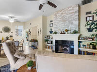 This well-maintained Timber Ridge villa offers a thoughtful layout 2/ 2 generously sized bedrooms, 2 full baths, and a separate family room adding flexibility w/out sacrificing living space. Vaulted ceilings & built-in features enhance the main living area, anchored by a wood-burning fireplace adding warmth & character. The updated kitchen features quartz countertops, white shaker cabinetry, modern appliances, & a newer high-end refrigerator, creating a bright and functional space for everyday living.The bathrooms have been tastefully updated with accent wall details, while tile and carpet flooring, an indoor laundry room, and ample storage contribute to the home's comfort and practicality. Outdoor living is equally inviting with a large covered screened front porch, front and backyard irrigation, and a 1-car garage with additional assigned & guest parking.Major updates include a 2022 shingle roof, w/ exterior maintenance, home re-piped (2025) & roof replacement handled (2022