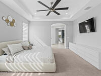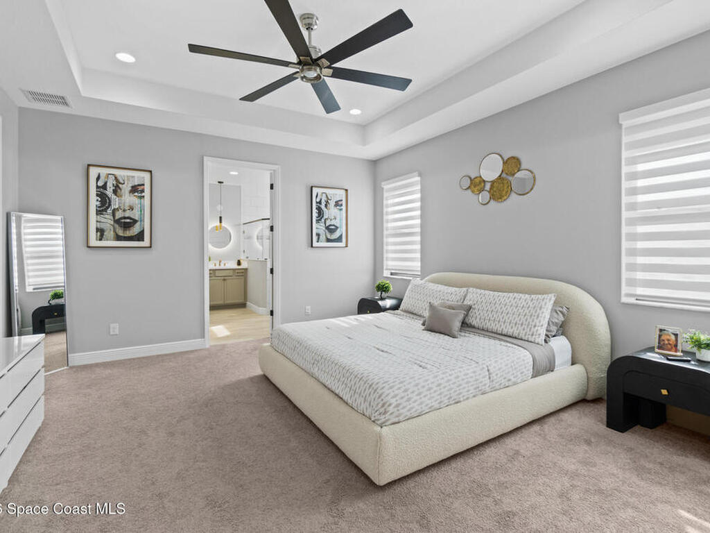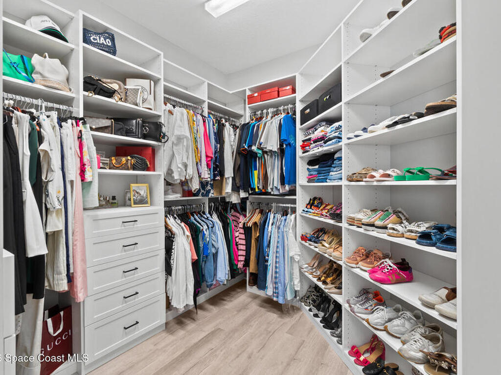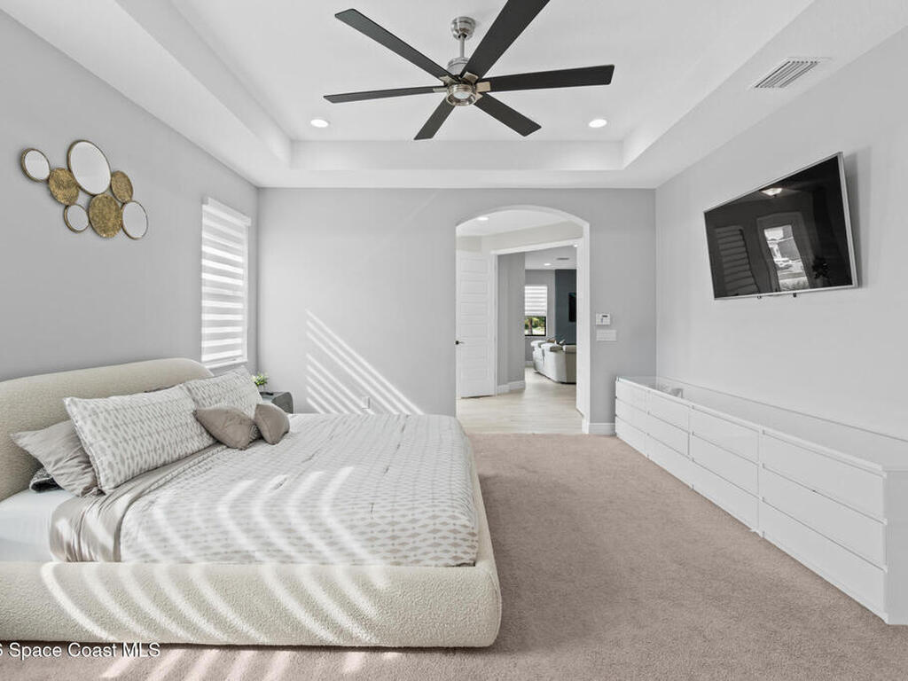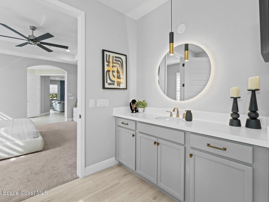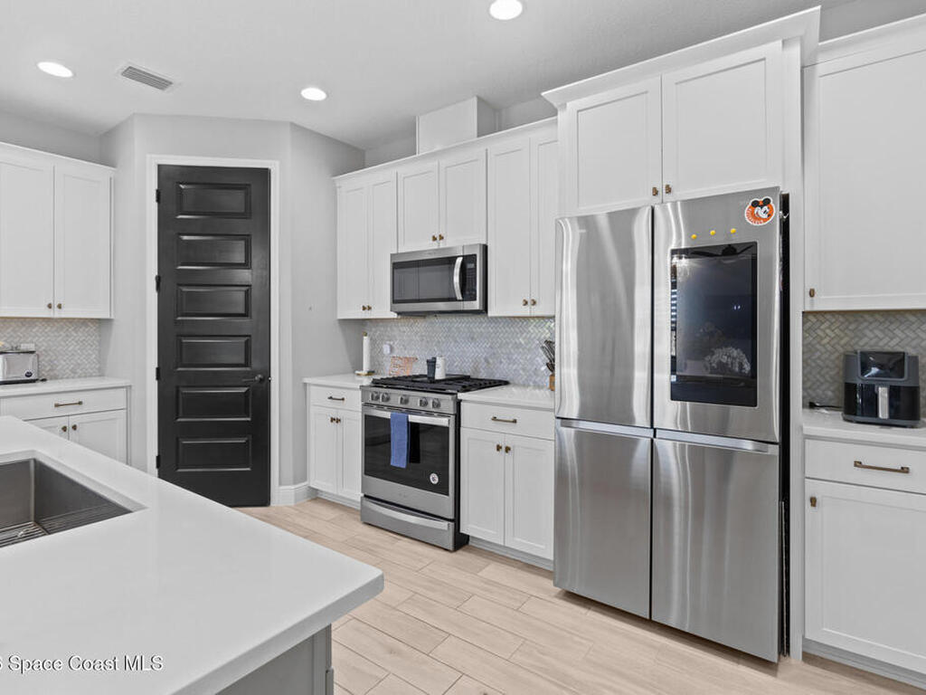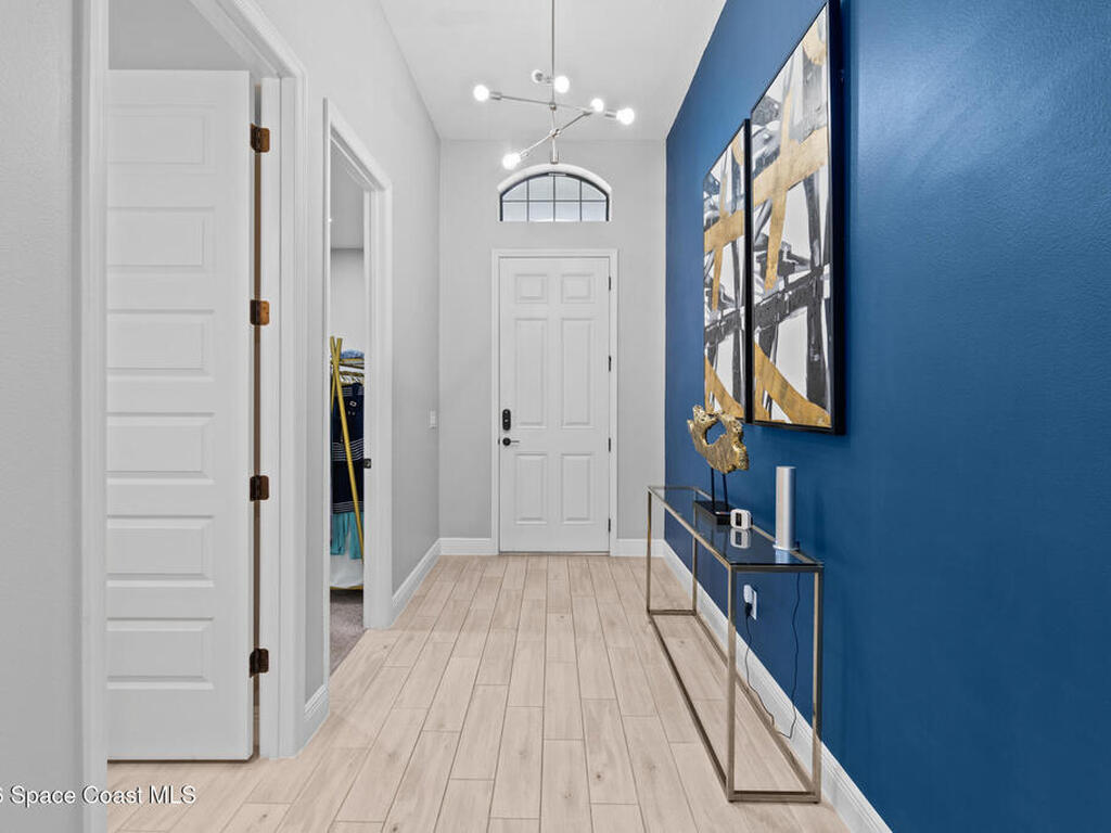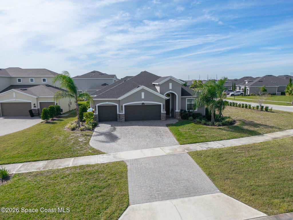 Welcome to 7776 Millbrook, a stunning home located in the heart of the planned community of Viera, Florida, where thoughtful design meets everyday comfort. This spacious property features 4 bedrooms plus a private office within the primary suite, 3.5 bathrooms, and a 3-car garage, all designed to offer luxury, flexibility, and functionality.Upon entry, you're greeted by an elegant, oversized foyer highlighted by wide tile planks with a natural wood finish. Throughout the home, enjoy custom high-end lighting, designer accent walls, and zebra shutters with 100% blackout capability. Storage is exceptional, with closets throughout and a dedicated glass wine wall adding both practicality and charm.The kitchen serves as the heart of the home, offering a large island, high-end Samsung appliances, stylish backsplash details, and sleek finishes, making it perfect for entertaining or everyday living. The adjacent living area is anchored by a fireplace, adding warmth, character, and a