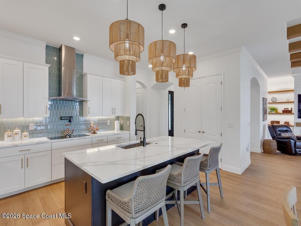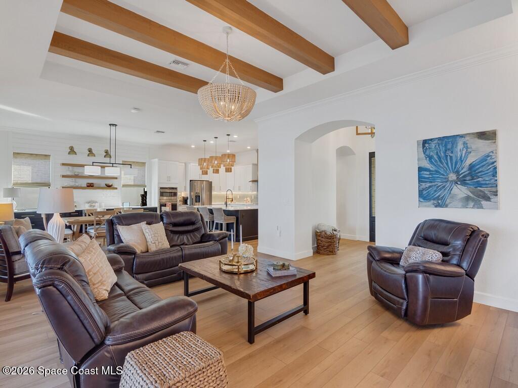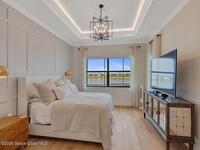 Resort-styled Luxury Living in Bridgewater at Viera's premier 55+ community. Experience unparalleled luxury in this stunning, fully customized estate. Professionally designed with custom interiors. Upgrades throughout - gourmet kitchen w/ expanded island and top of the line finishes, luxury plank vinyl flooring, luxury light fixtures, power hurricane shutters on lanai and front vestibule. The large screened back patio with stunning lake views adds to this homes undeniable allure. Not to mention the incredible amenities at Bridgewater at Viera. Sizes are approx/subj to error.