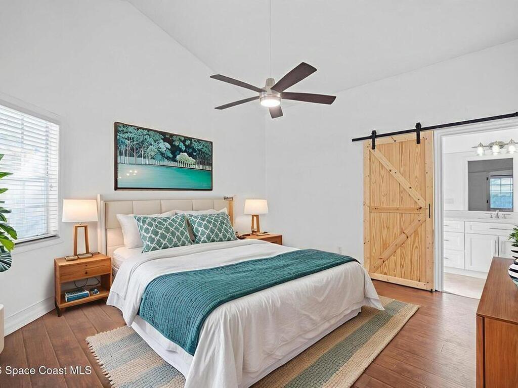 Greenbriar Village.. Melbournes best kept secret! This Saltwater Pool home has been beautifully updated throughout. Owners invested to make this their forever home, then a work relocation had a change in plans. All major items already taken care of Hot Water Heater (2025), Pool Pump (2025), HVAC with warranty (2024), Roof (2023). Enjoy 20ft ceilings in the foyer leading into the dining and family room. Primary suite is located on the first floor - entailing a custom barn door, updated double vanity, wood look tile floors & spacious walk-in closet. Upstairs you will find a massive loft with 2 beds & a full bath. Glass french doors lead outside to the covered/screened back porch. Backyard includes gas hookups to install outdoor grill or kitchen. Bring pets! Large fenced in backyard with saltwater pool. HOA maintains sprinklers, front yard landscaping, and backyard privacy fence.