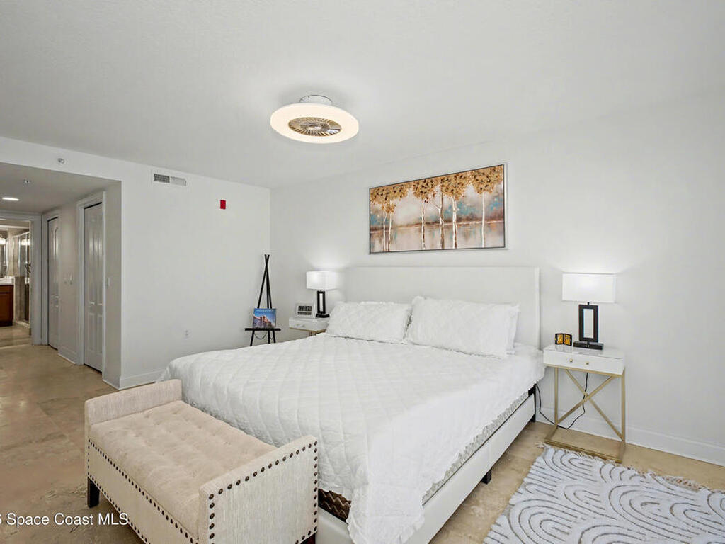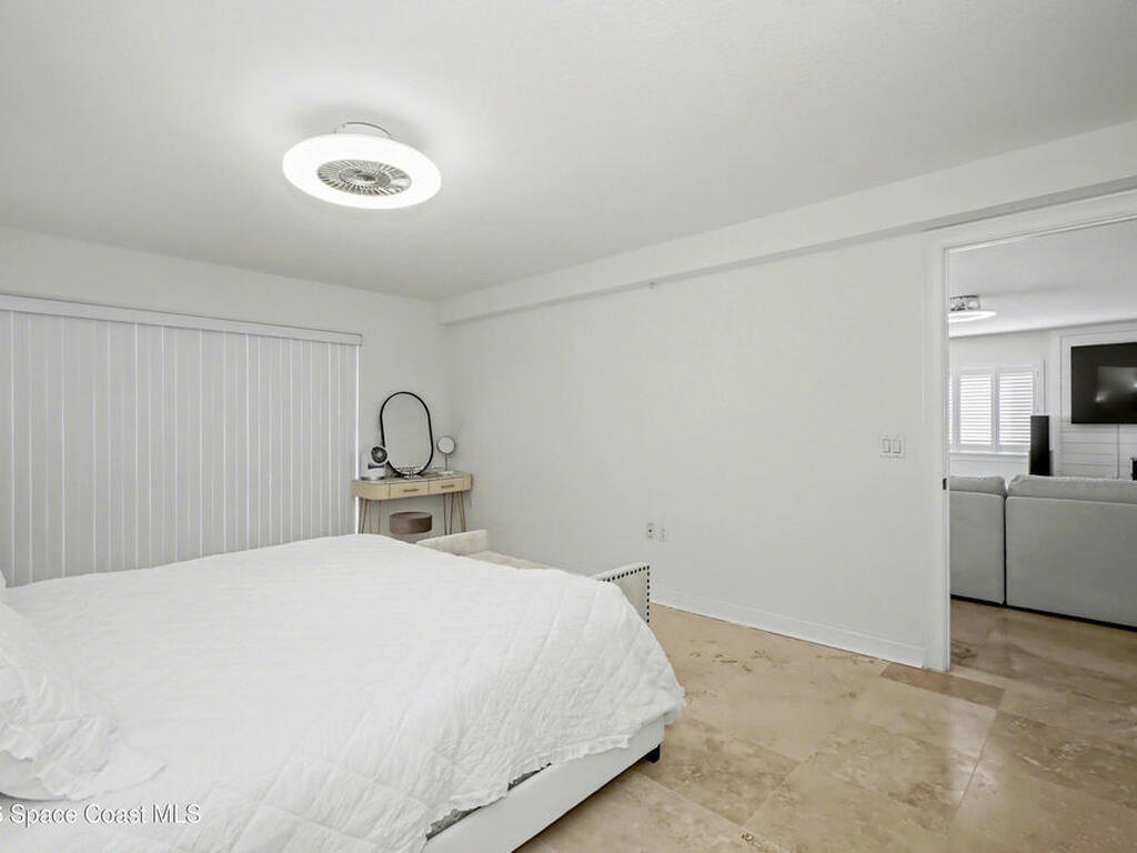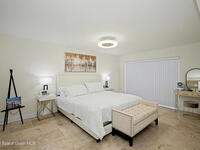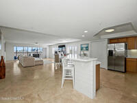 Coastal Living at its finest, Steps to the BEACH, PRIME LOCATION! Beautifully designed 3-bedroom 2-bath Desirable SE End unit condo lends over 2, 000 sq ft of light-filled living space with travertine tile throughout. Partially Furnished The open-concept layout features modern fixtures , and a gourmet kitchen with white quartz waterfall island, custom wood cabinetry, and SS appliances. Enjoy morning sunrises and ocean glimpses from the screened balcony, plus coastal breezes year-round. The split floor plan provides privacy, with a spacious primary suite featuring a spa-inspired bath and dual-head shower. Additional highlights include generous closet space, bike storage, and two assigned indoor garage spaces--rare for condo living. Palm Springs Condos offer resort-style amenities including pool, fitness center, clubhouse, tennis and pickleball courts. Steps to the beach and close to dining, shopping, and everyday conveniences--perfect as a primary residence or vacation retreat!