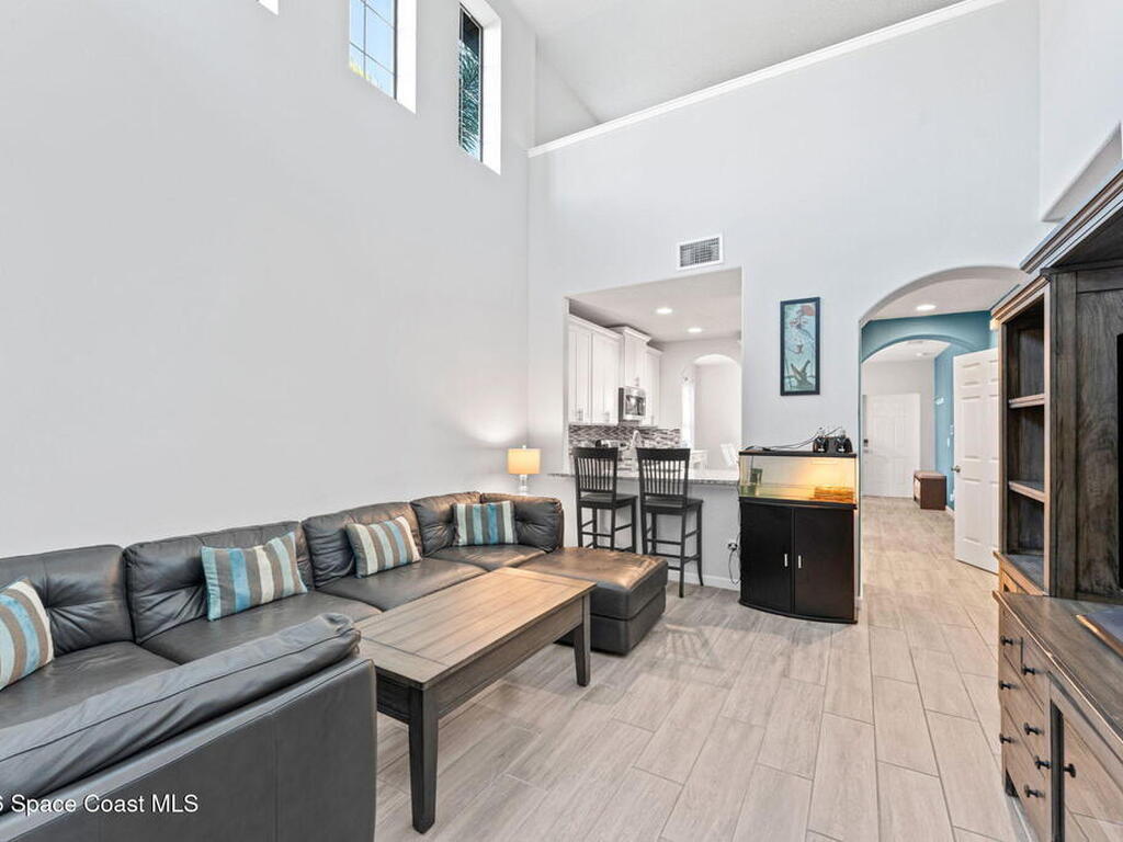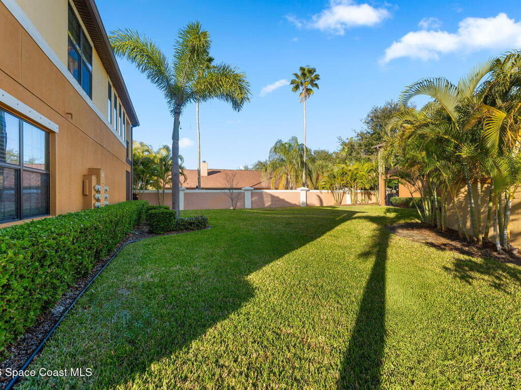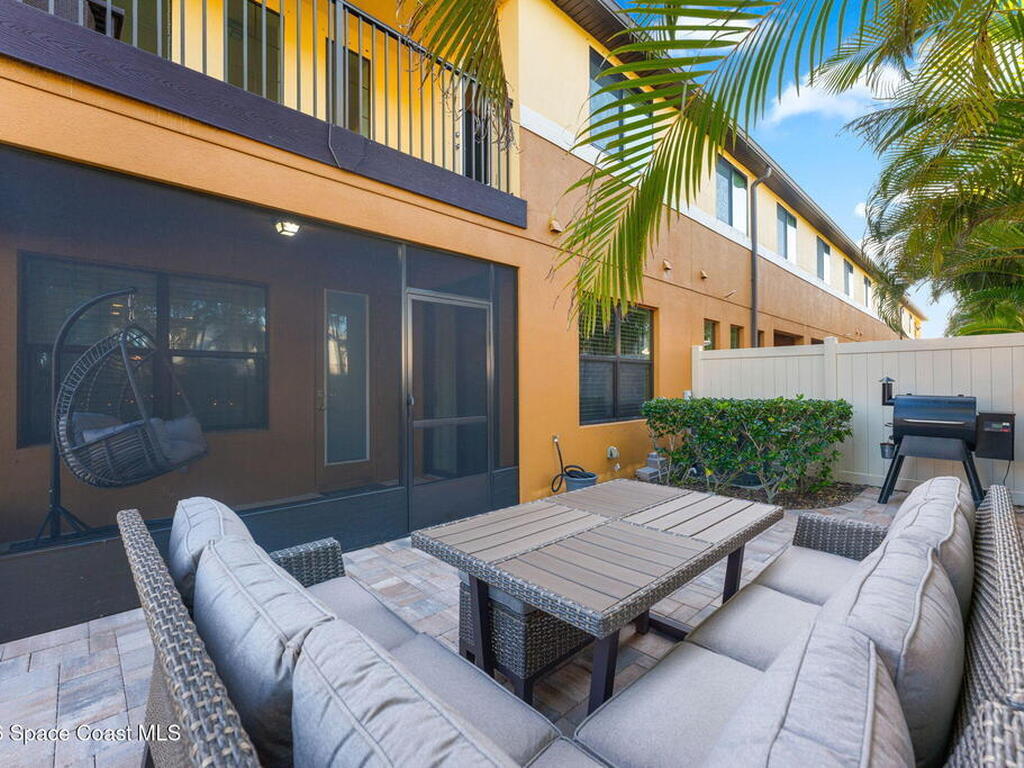 This townhome (End Unit!) hits different - bold, smart, and built for living! 3 beds, 3.5 baths, and a 1-car garage bring the space, while granite countertops and a breakfast bar give the kitchen serious style points. The primary suite lives downstairs with sliders spilling out to a covered, screened patio...your everyday escape for fresh air, slow mornings, and late-night unwinding. Upstairs, two guest rooms offer privacy and smart layout flow, with one opening to a breezy balcony perfect for sunset resets. Tile & carpet throughout, central vacuum, storm shutters, a security system, and a smart doorbell mean effortless, secure living. Plus, a smart thermostat keeps comfort dialed in year-round. Out back, a paved patio with metal fencing sets the stage for chilling, grilling, and good-vibe nights. Minutes from Viera's top shopping and dining - because convenience should feel this cool!