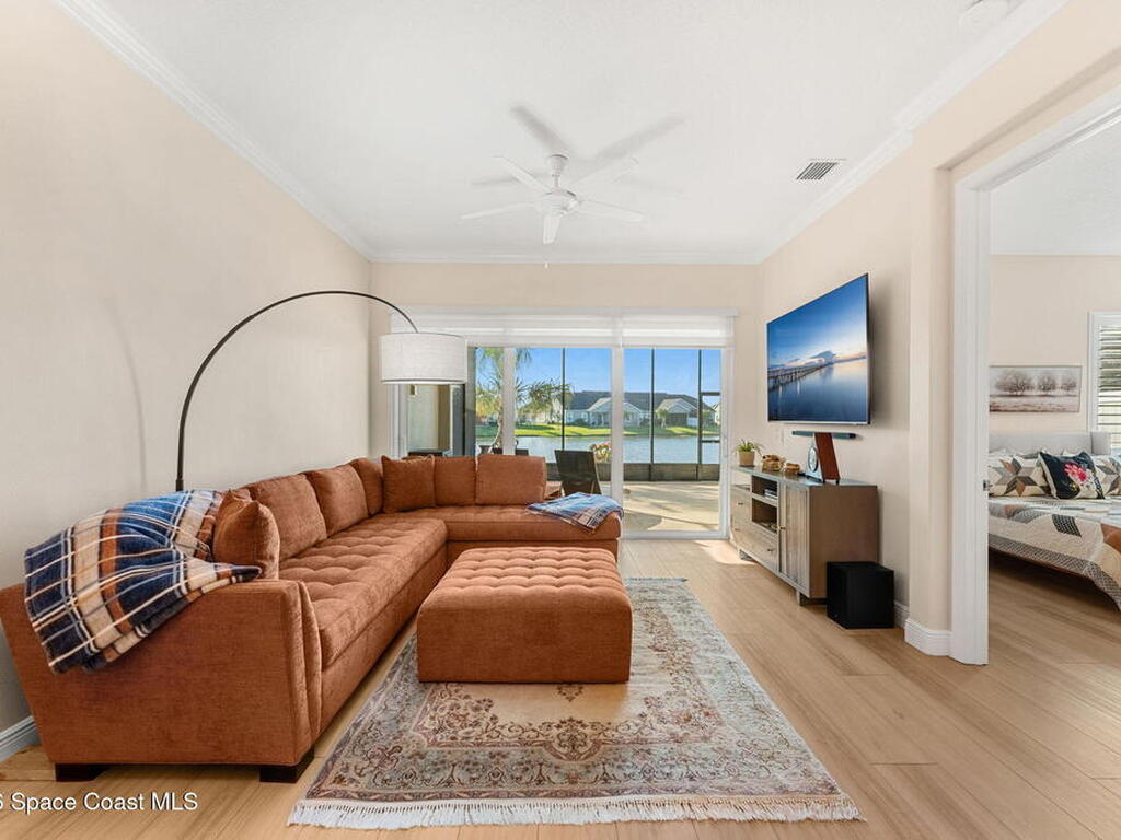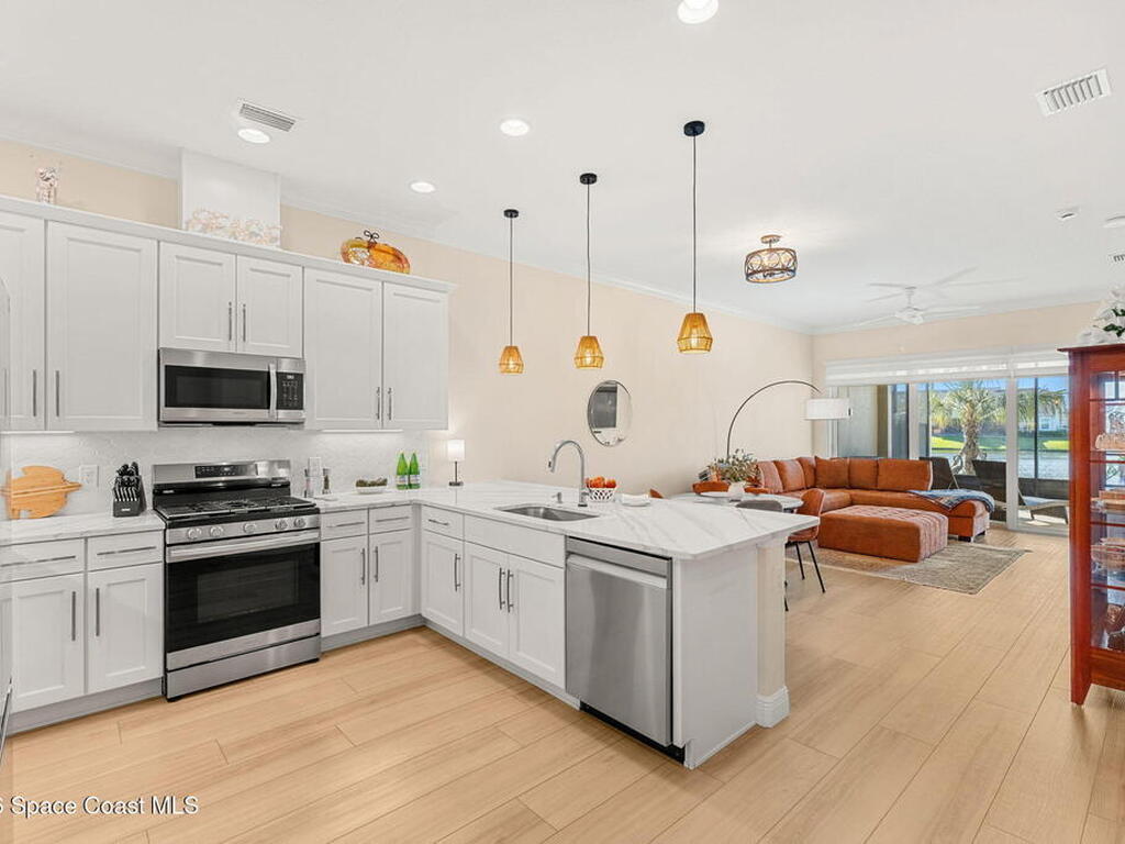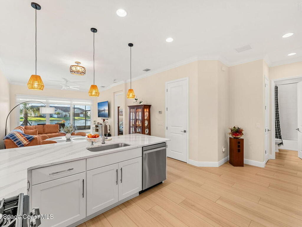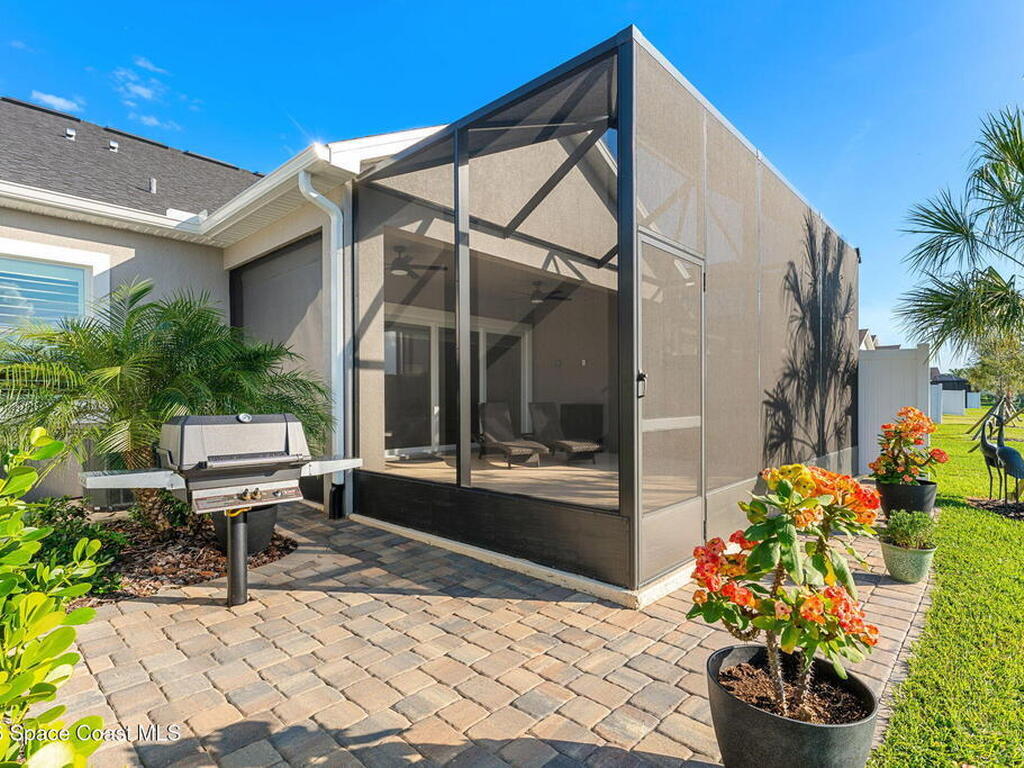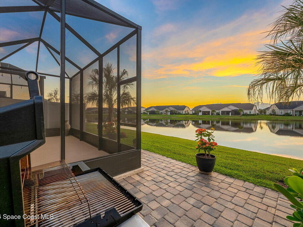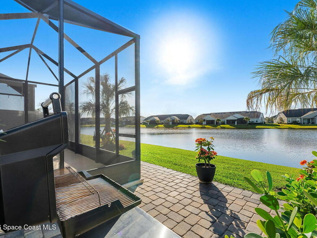 If you've been dreaming of the Viera lifestyle without the typical Viera price tag, this is the one. Built in 2024 and thoughtfully upgraded from top to bottom, this 3 bedroom, 2 bath home offers the ease of townhouse living with the feel of a custom residence. From the moment you step inside, you'll notice the difference. Luxury vinyl plank flooring, upgraded cabinetry, premium countertops, designer tile details and custom touches throughout create a space that feels polished, comfortable and completely move in ready. The owners have gone beyond the builder basics with a whole home water softener, custom closets, window treatments, upgraded fixtures and a beautifully finished primary bath with a frameless glass shower. (See upgrade list attached) Step outside and enjoy peaceful pond views from the screened lanai, unwind on the extended paver patio, and take advantage of the built in natural gas grill connection with additional paver space designed for easy outdoor entertaining.