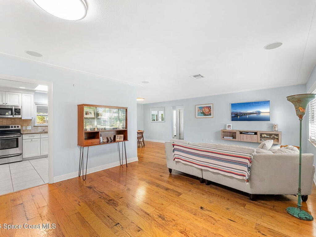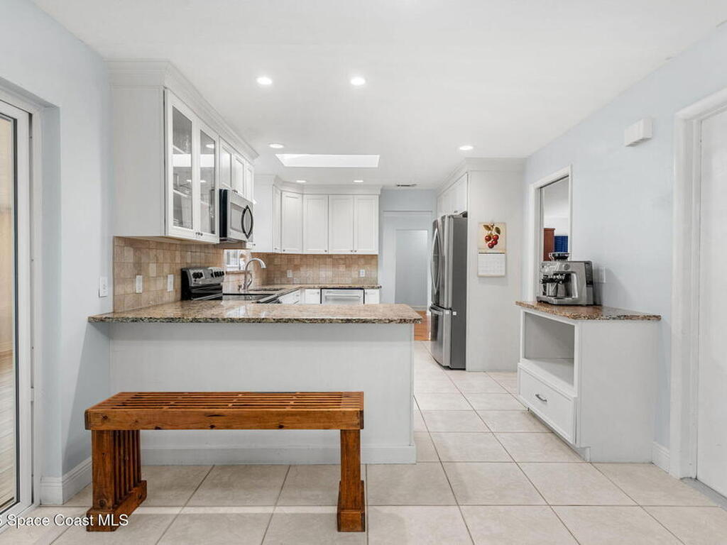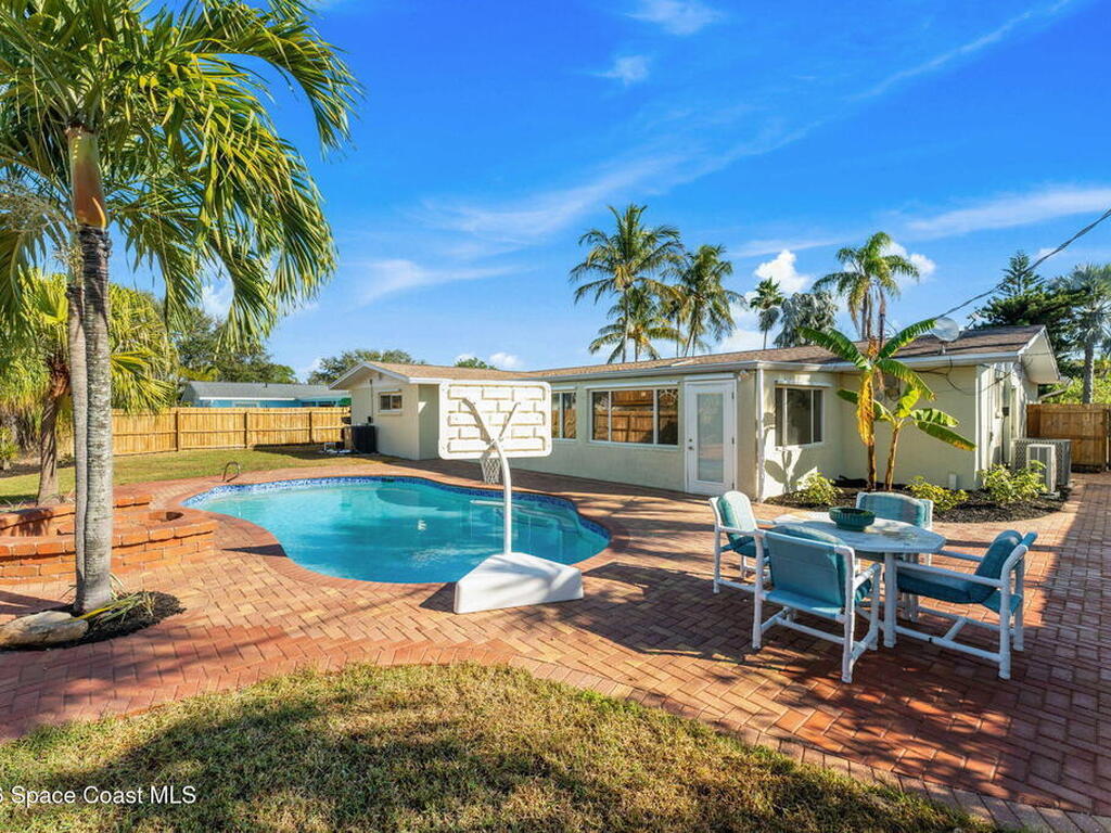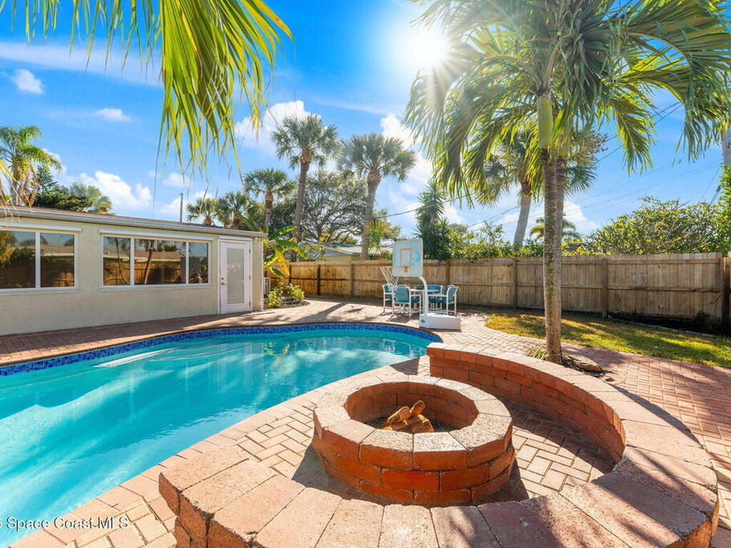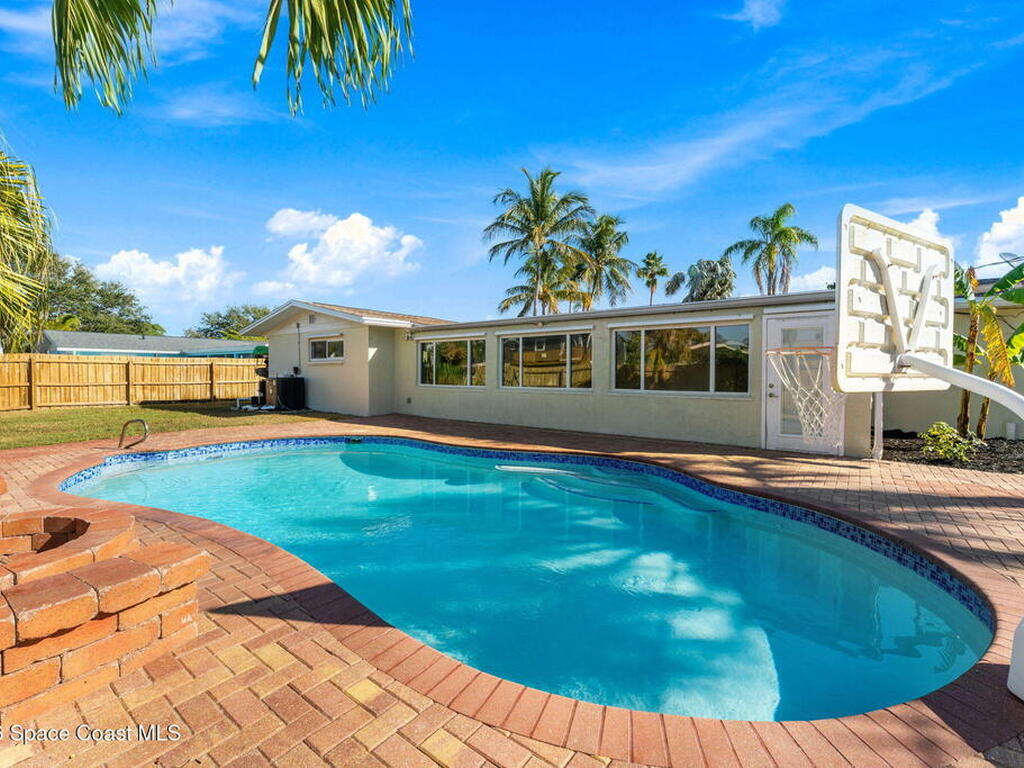 Just minutes from the beach & bursting w/Florida energy, this radiant, refreshed pool home hits differently from the second you step inside, with wood & tile floors running throughout, smart upgrades in every space & natural light spilling in like it was invited. The kitchen brings both polish & practicality w/ granite counters, a tile backsplash, SS appliances, white soft-close cabinetry, plus a sunny skylight that keeps everything glowing all day long. A cozy breakfast nook features built-in shelving for extra charm & function, while the Florida room adds that bonus hangout space everyone wants. The owner's suite feels private & pulled-together, offering direct access to the Florida room, a statement dimensional wood accent wall, a walk-in closet & an ensuite w/a tiled shower. One of the guest bdrms includes built-in shelving too, adding even more personality. Plus a full guest bath w/ tub/shower combo. Sellers currently paying a low $3, 100 for homeowner's insurance!